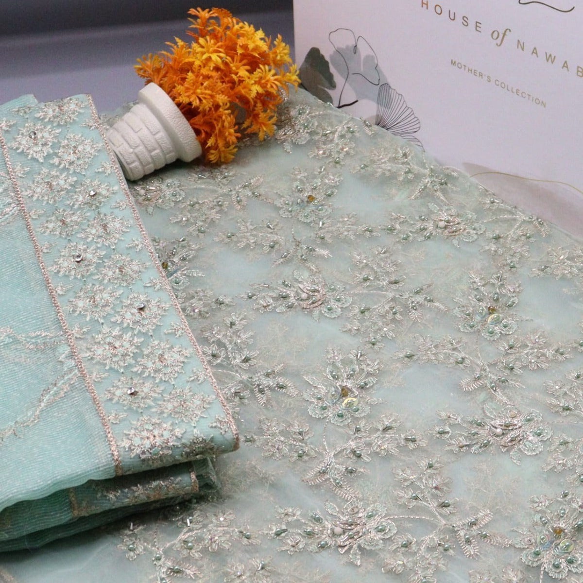 House Of Nawab Vol-2 Hand Work Organza Collection 2023 has been styled in the image for photography and illustrative purposes.
