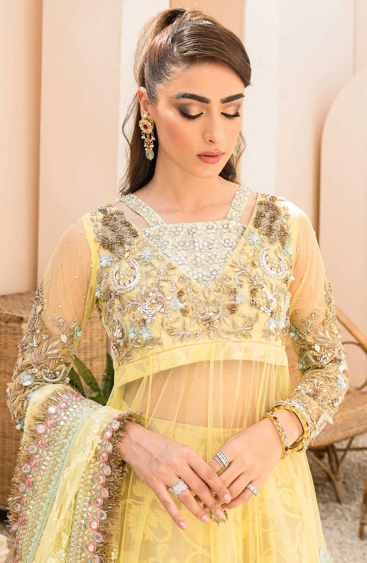 Hues Atelier Embroidered Net 3 Piece - Hennah - HA25LF - Yellow - Festive Collection