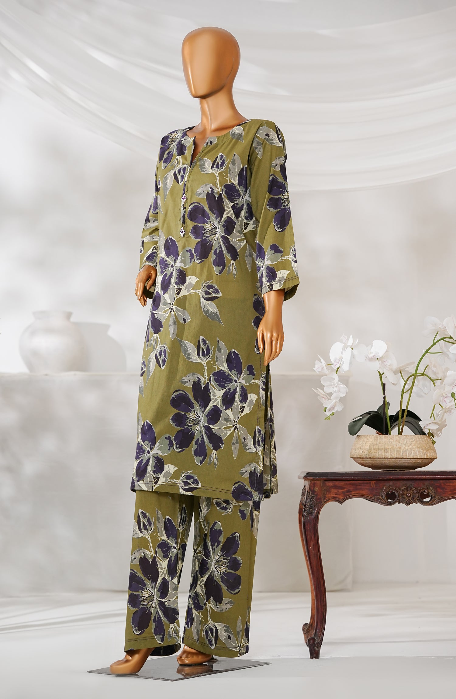 Digital Print Stitched 2 Piece Dobby Cambric Co-ord Set with Embellishment