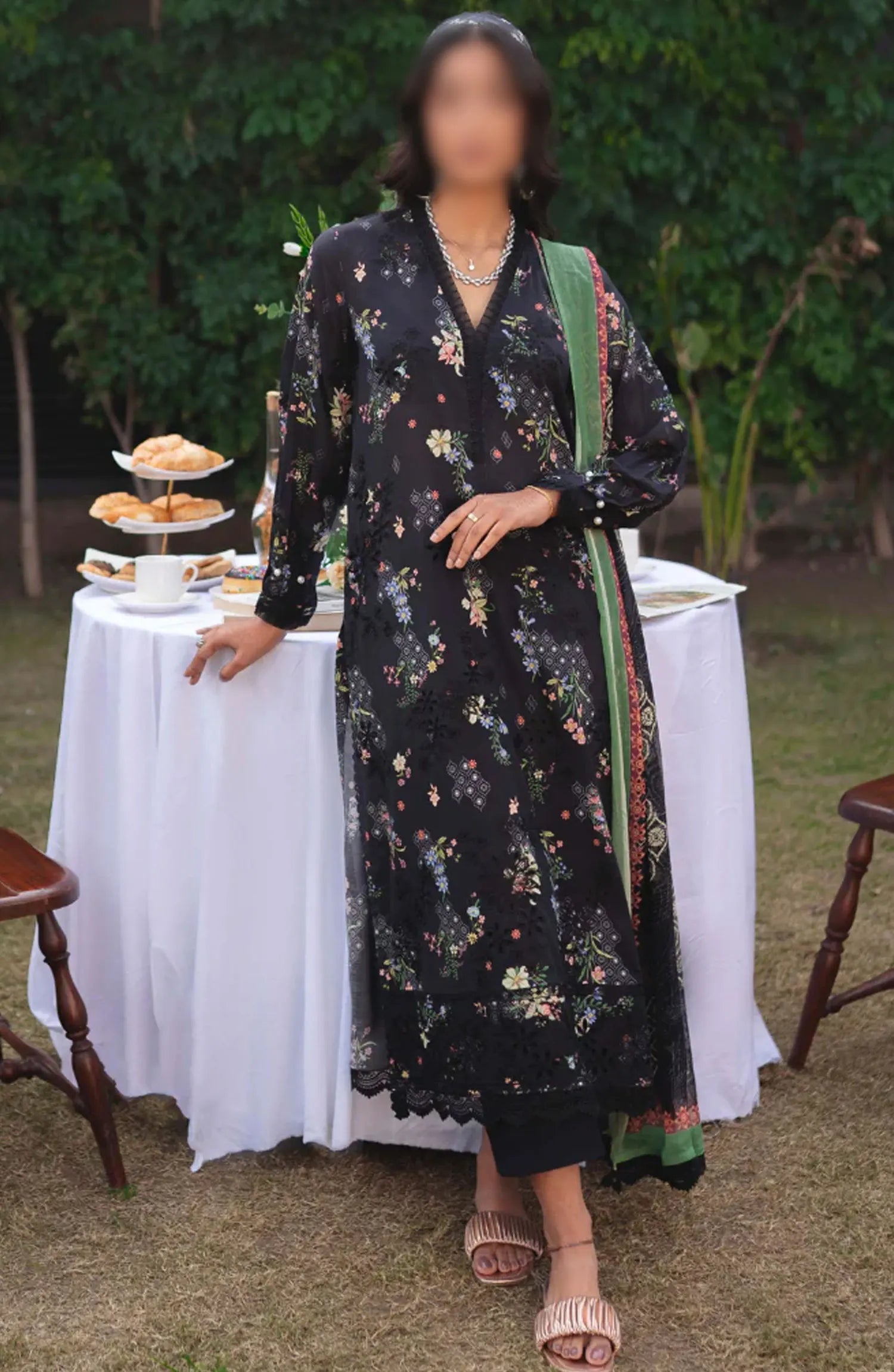 Rua by Casual Lite Embroidered Premium Linen Stitched 3 Piece Suit - D-03 Shadow Bloom - CL25RU - Black - Winter Collection