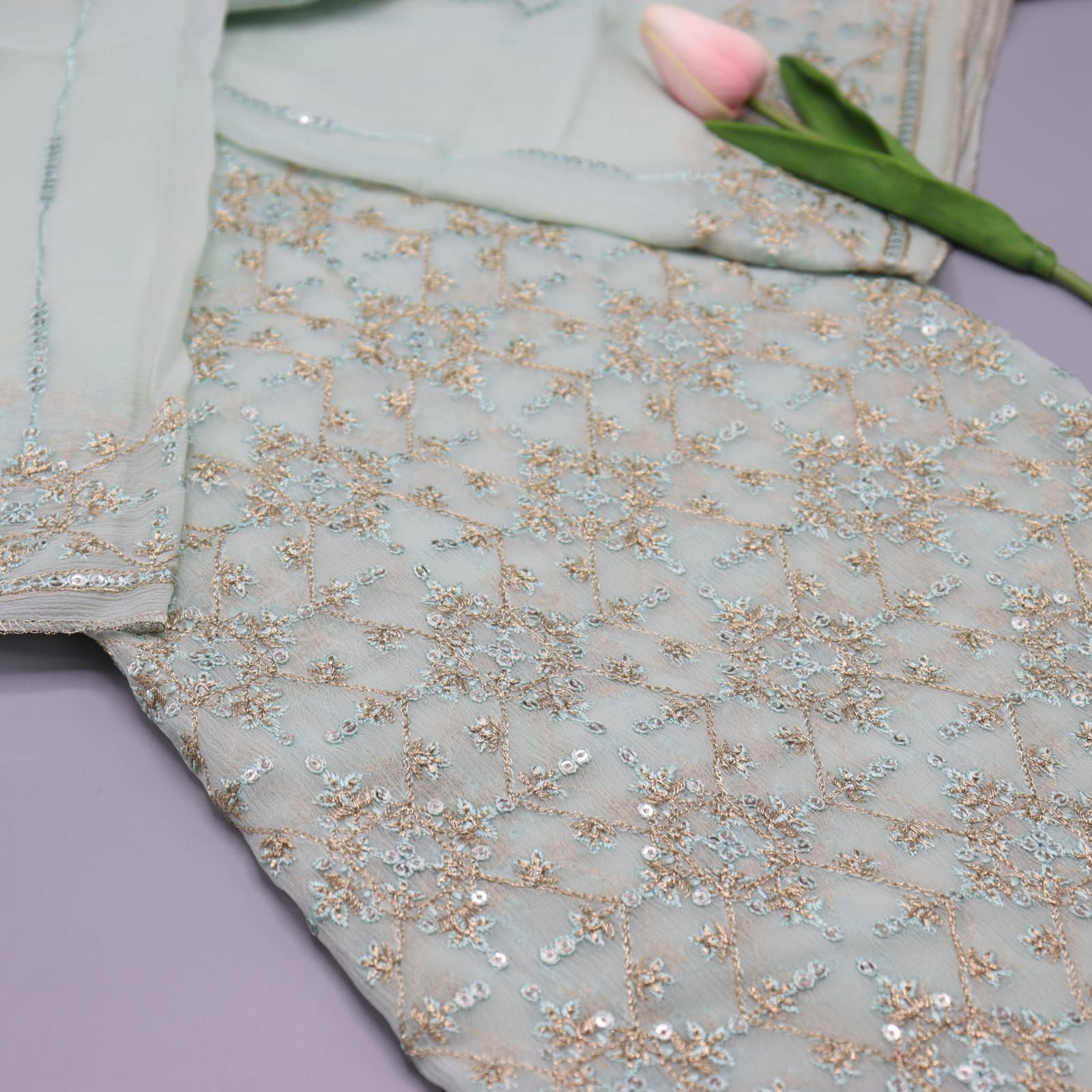 Emaan Adeel Clay and Couture Embroidered Organza Unstitched 3 Piece Suit - NUVRA - ED25CC - Blue - Wedding Collection