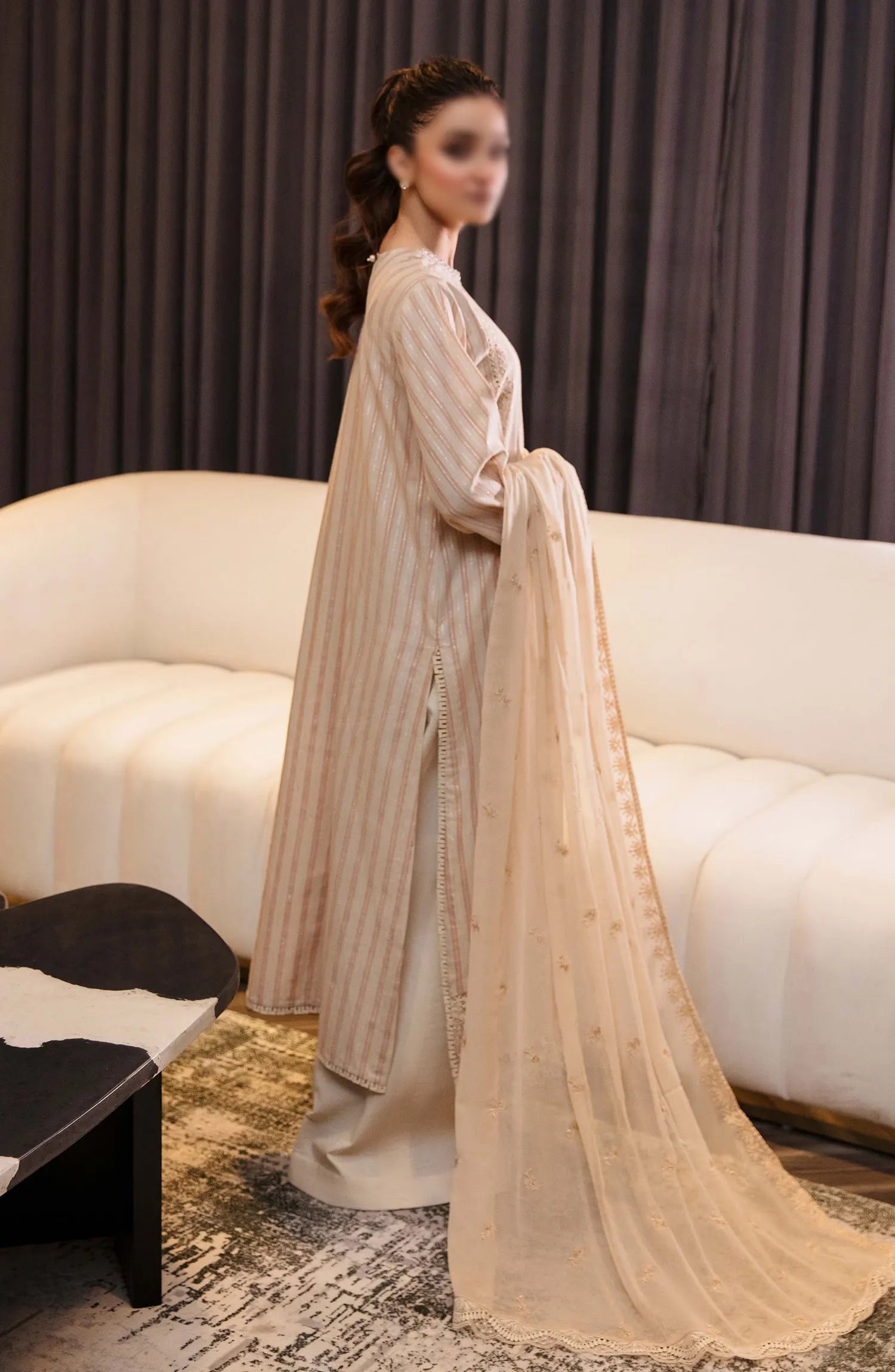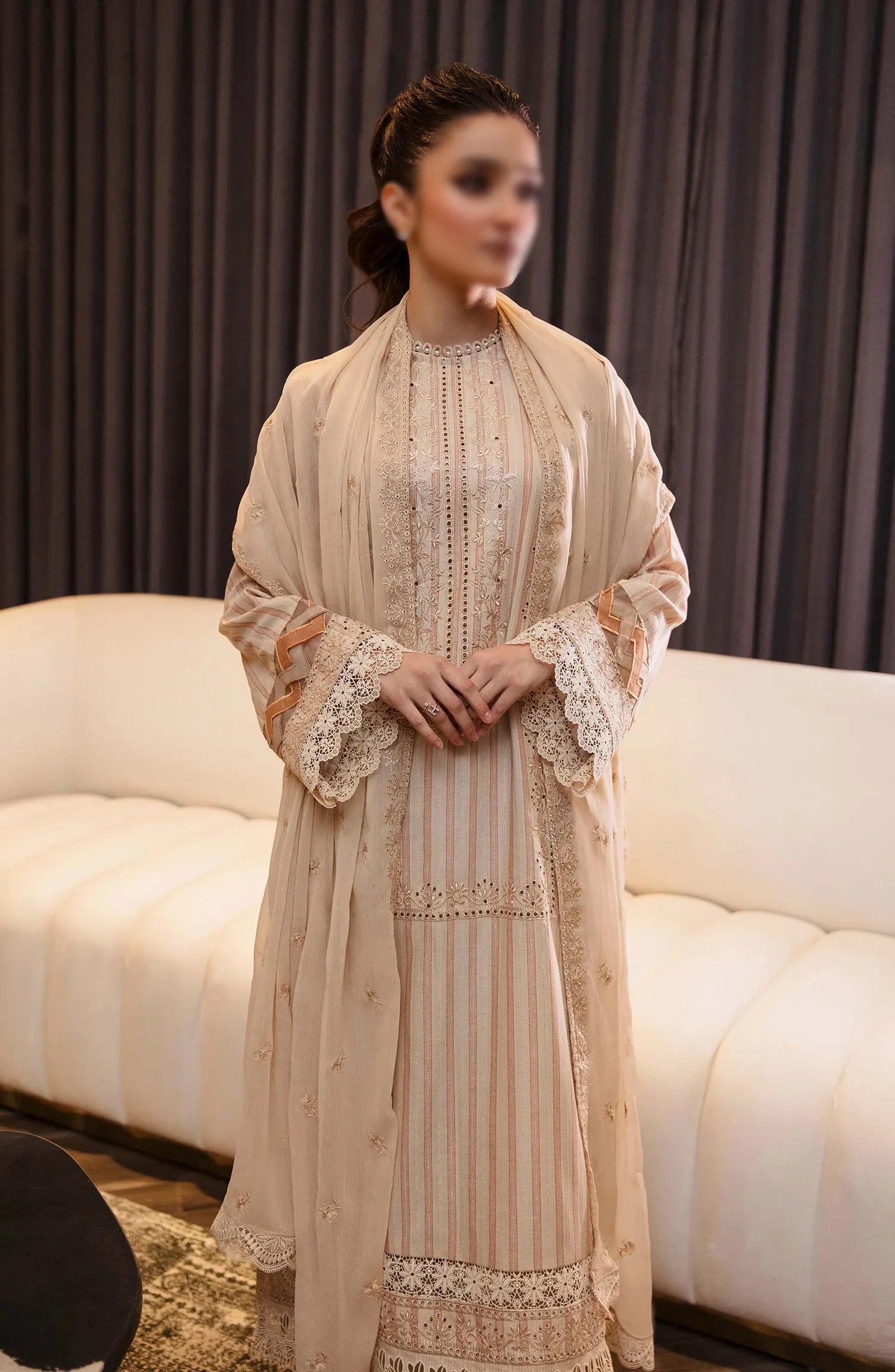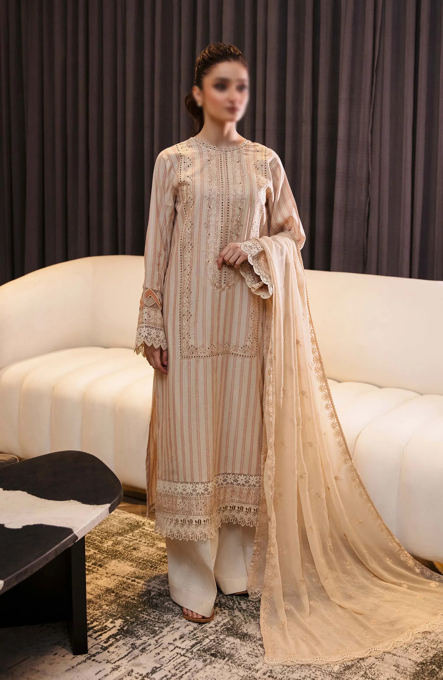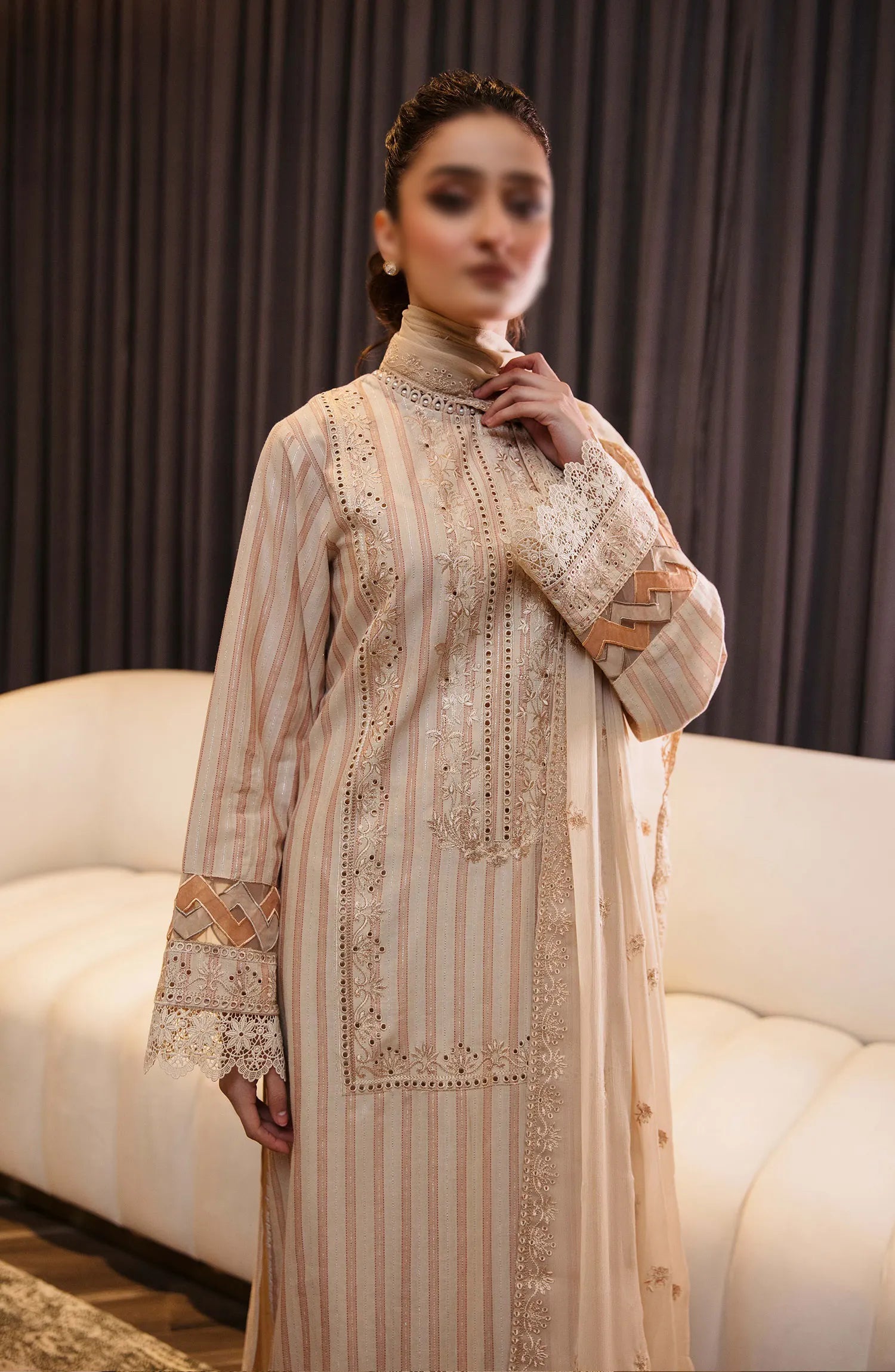 Emaan Adeel Clay and Couture Embroidered Organza Unstitched 3 Piece Suit - MALENA - ED25CC - Fawn - Wedding Collection