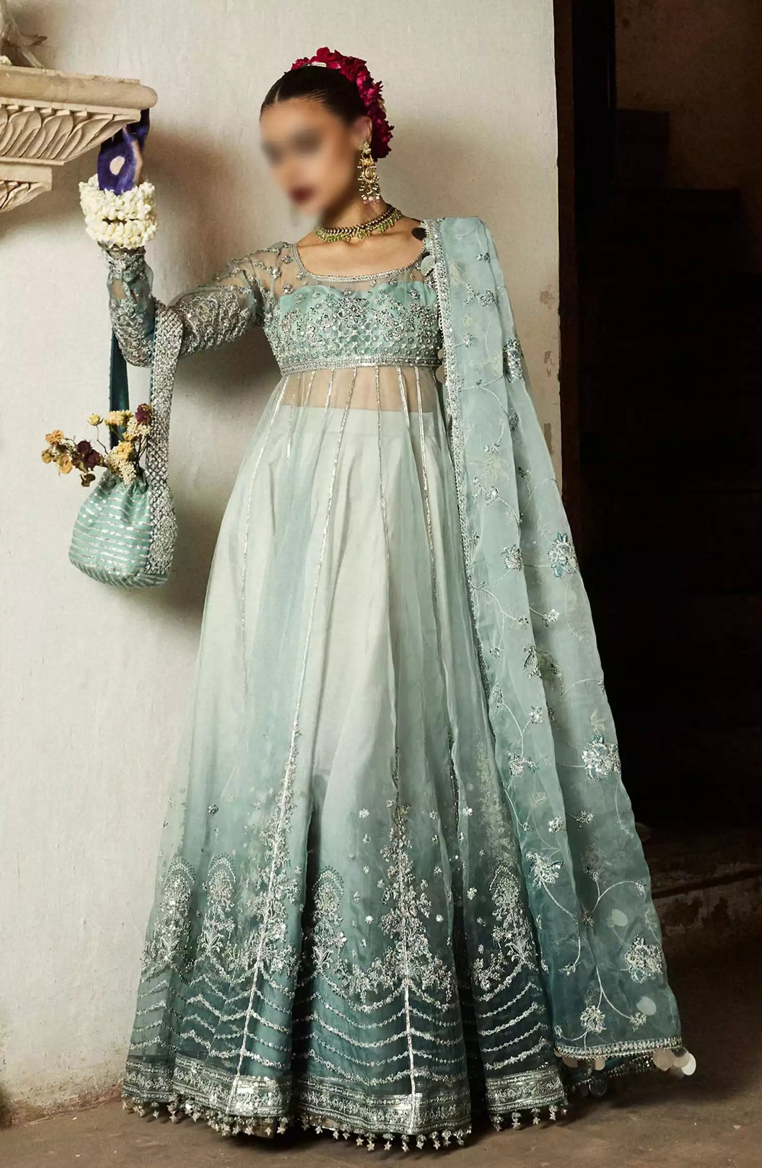 Embroidered Front Back Waist Border Embellished (Printed Organza) 1.55 Meters