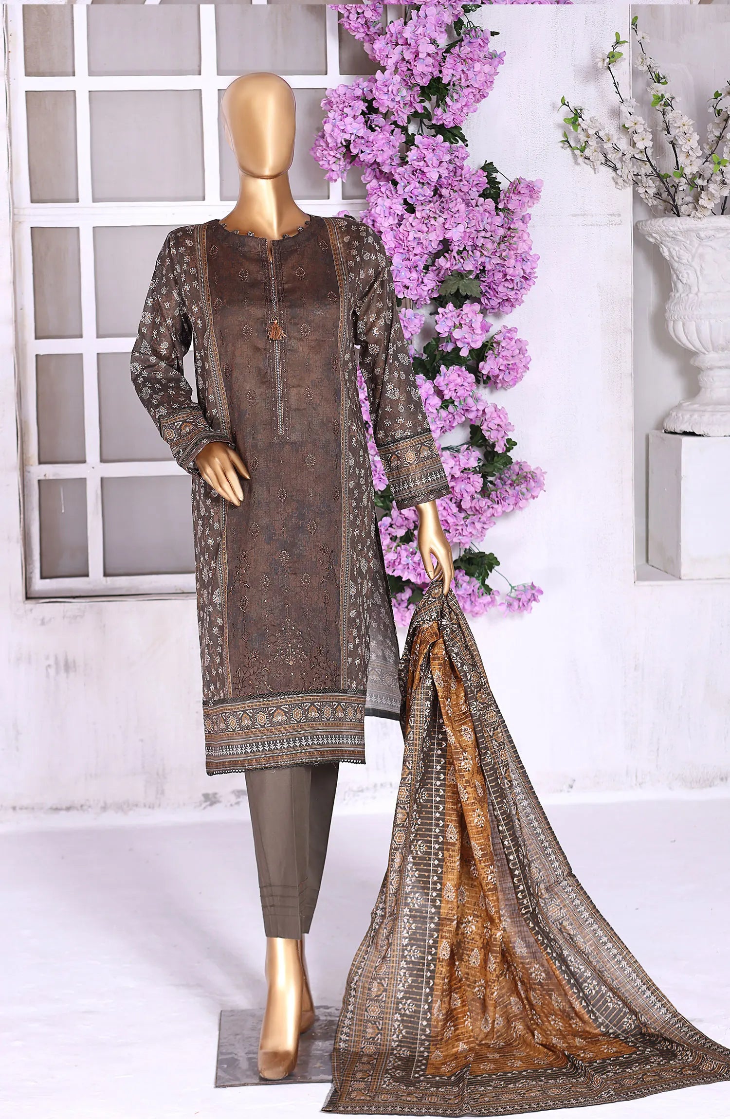 HZ Aashkaar RTW Printed Embroidered Lawn Collection Vol 01 - PEL-403 A COFFEE BROWN