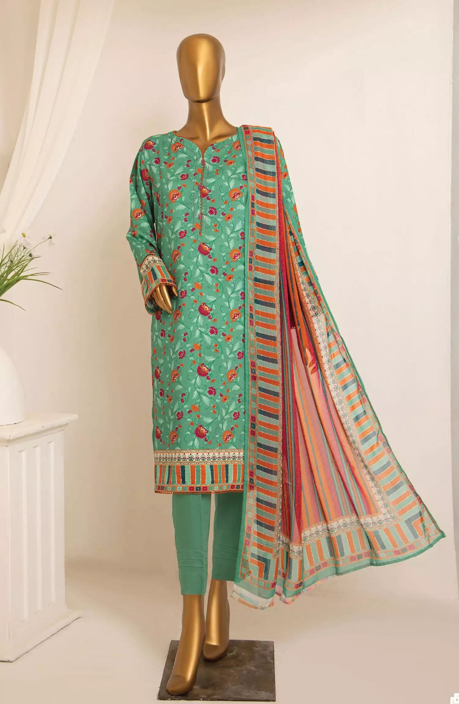 HZ Textile Digital Printed Linen Slub Unstitched 3 Piece Suit - LSD-306 - HZ25LNSL - Green - Winter Collection