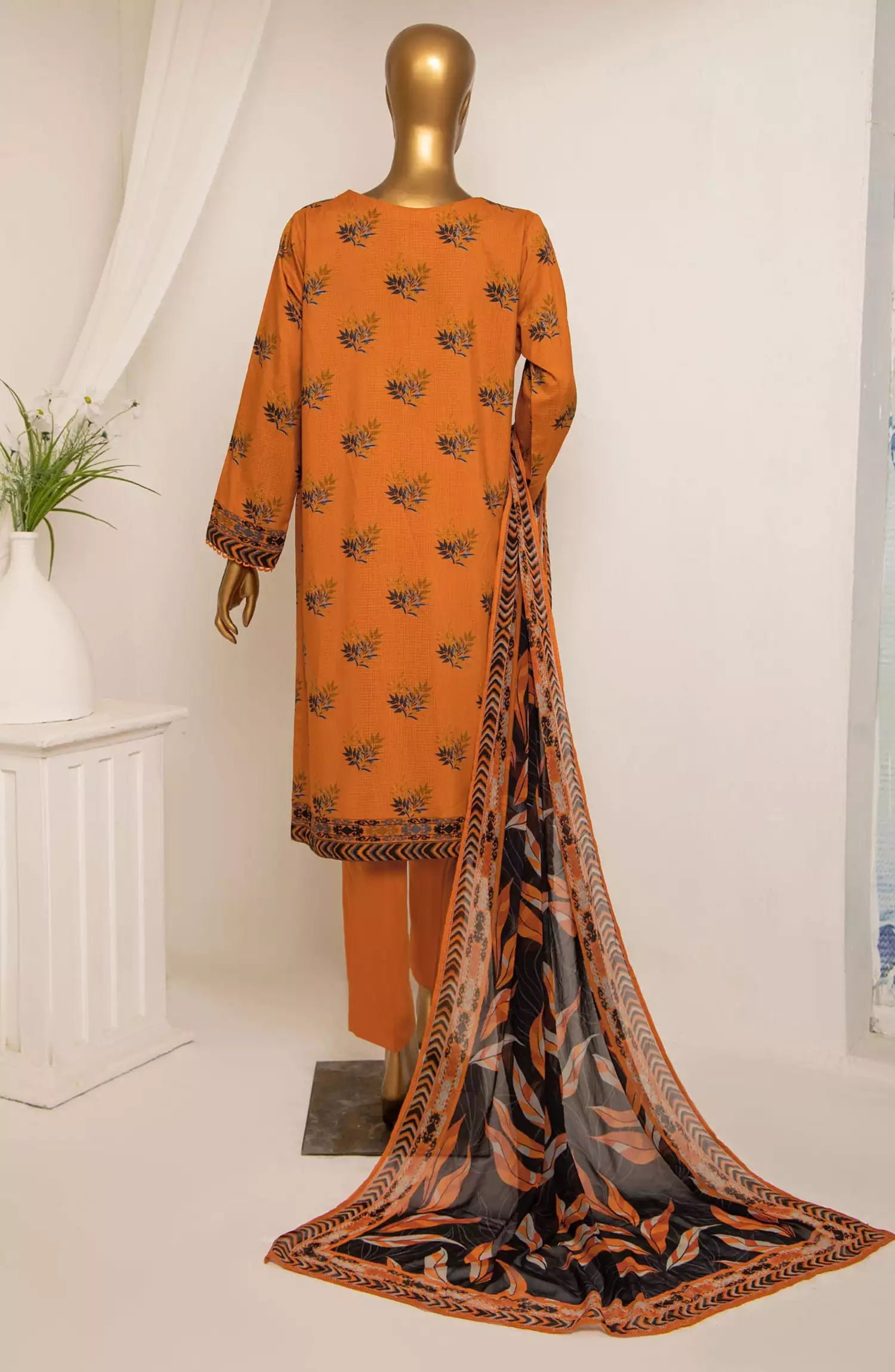 HZ Textile Digital Printed Linen Slub Unstitched 3 Piece Suit - LSD-309 - HZ25LNSL - Mustard - Winter Collection
