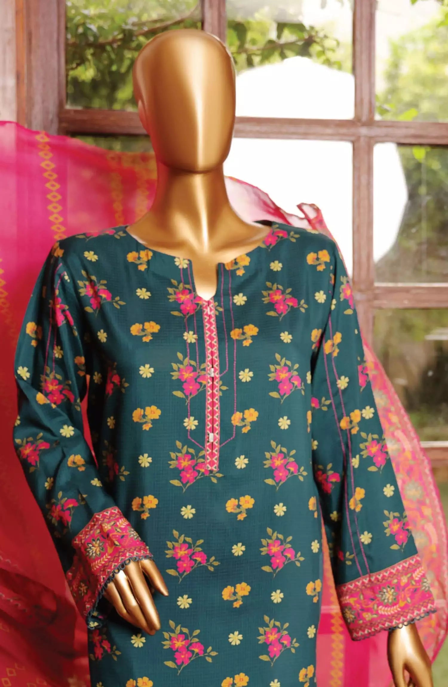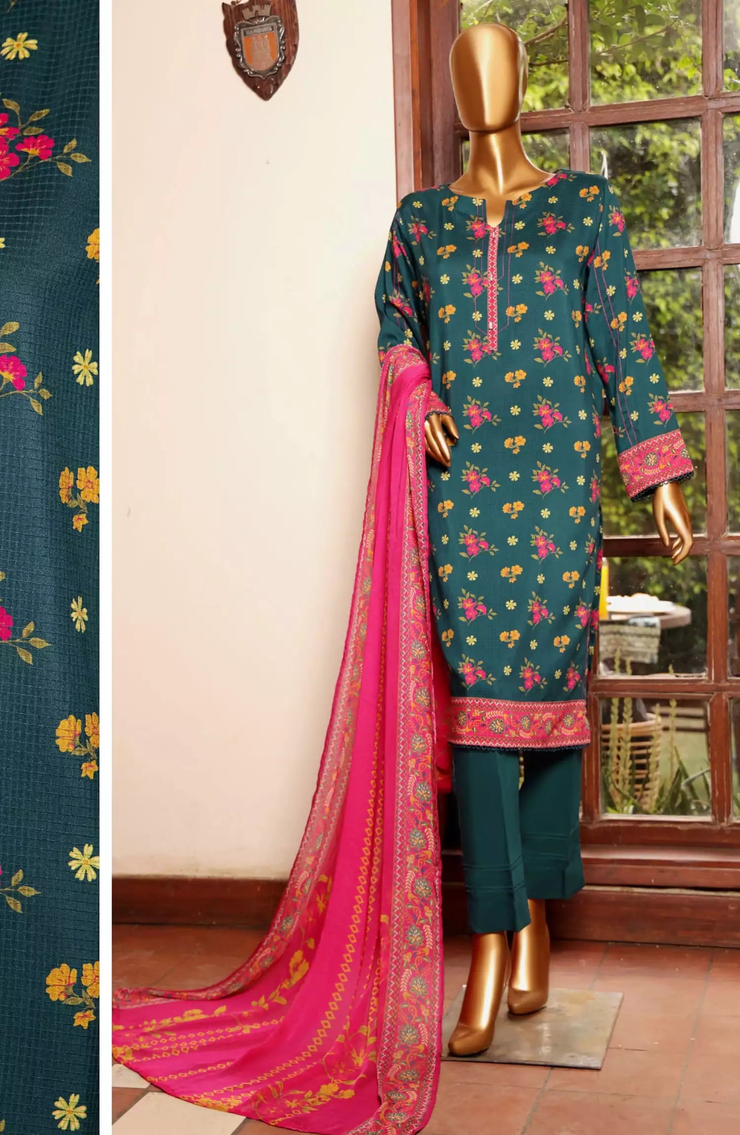 HZ Textile Digital Printed Linen Slub Unstitched 3 Piece Suit - LSD-306 - HZ25LNSL - Green - Winter Collection