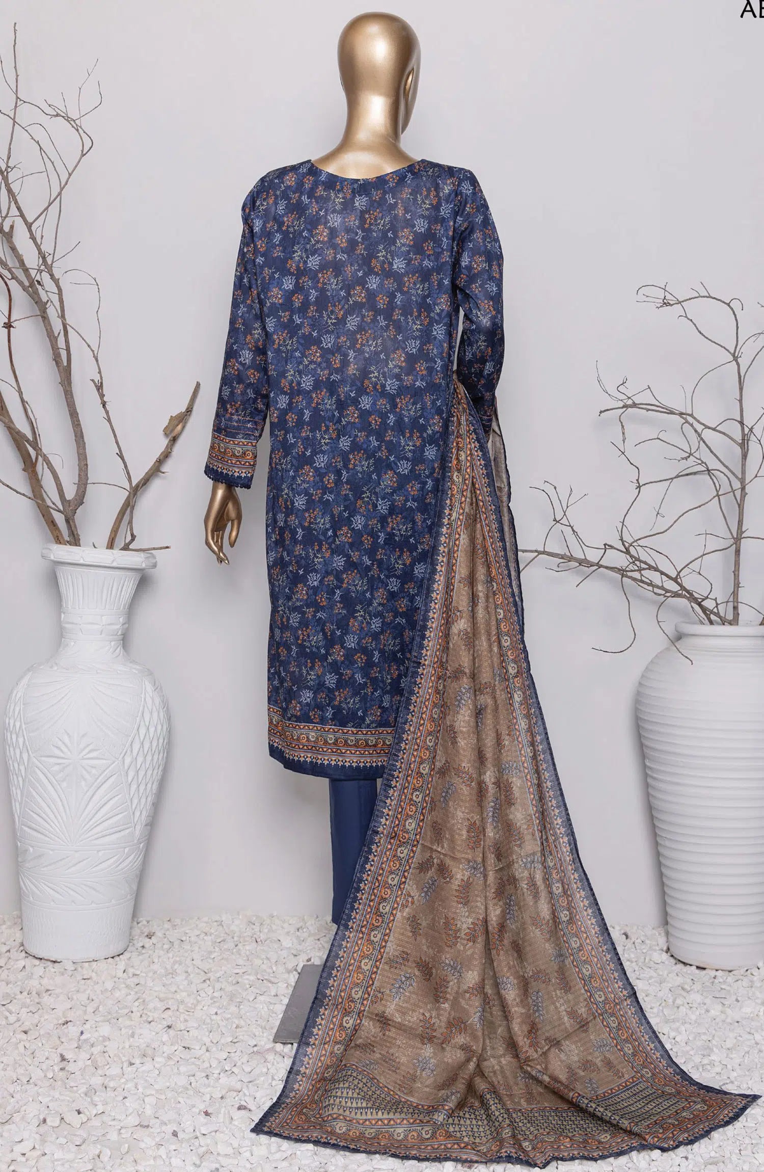 HZ Textile Digital Printed Linen Slub Unstitched 3 Piece Suit - LSD-308 - HZ25LNSL - Blue - Winter Collection