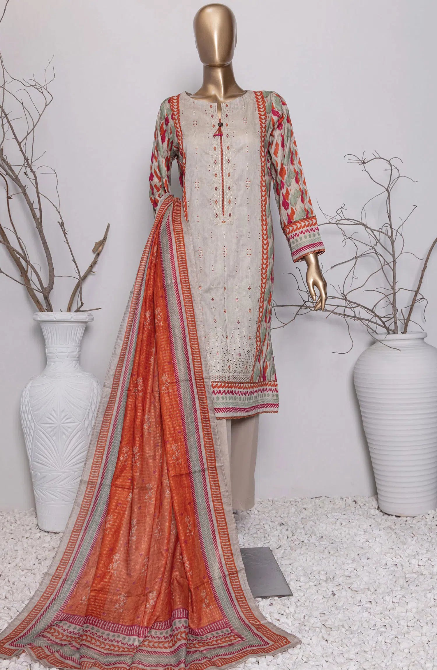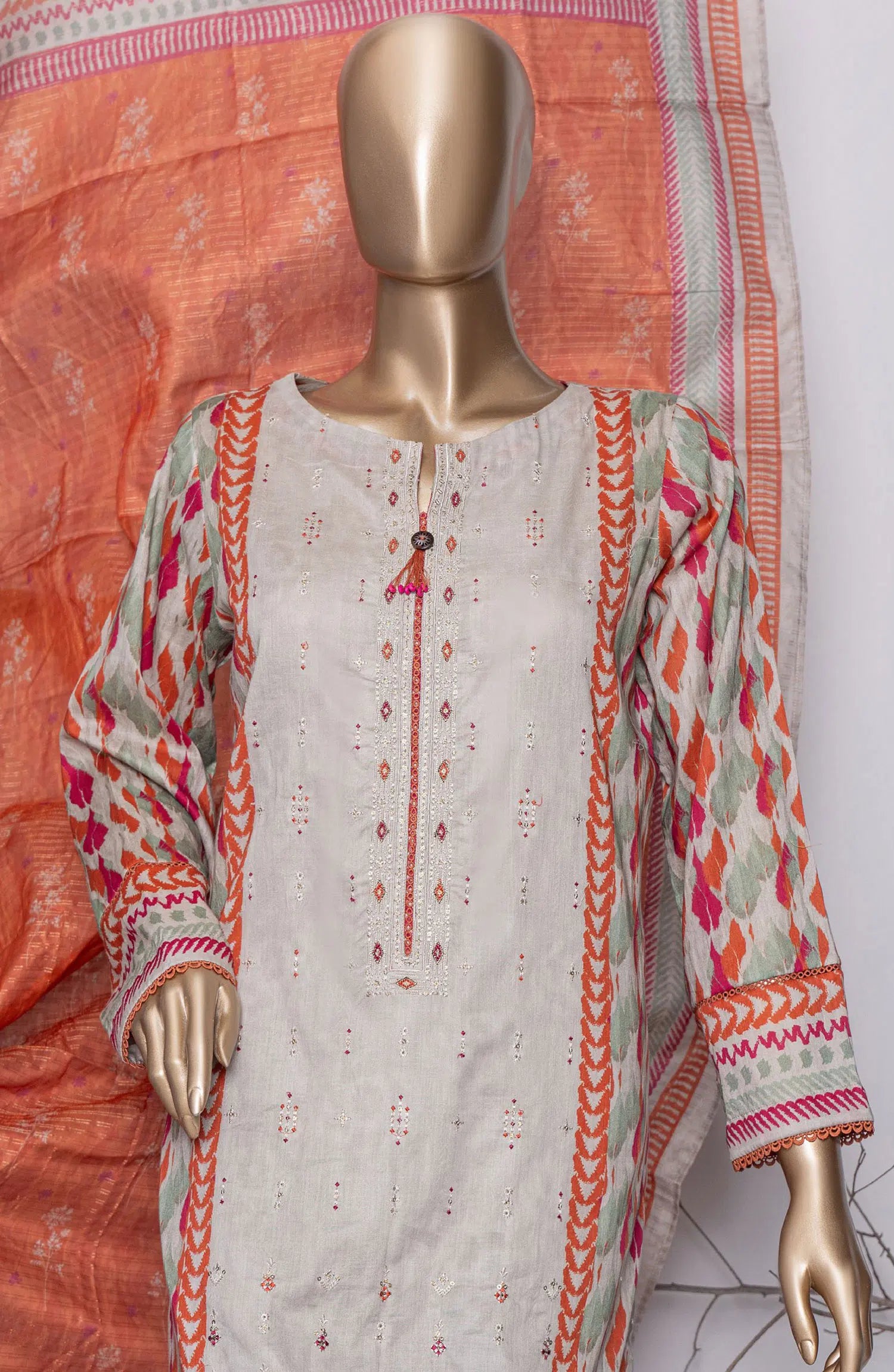 HZ Textile Digital Printed Linen Slub Unstitched 3 Piece Suit - LSD-304 - HZ25LNSL - White - Winter Collection