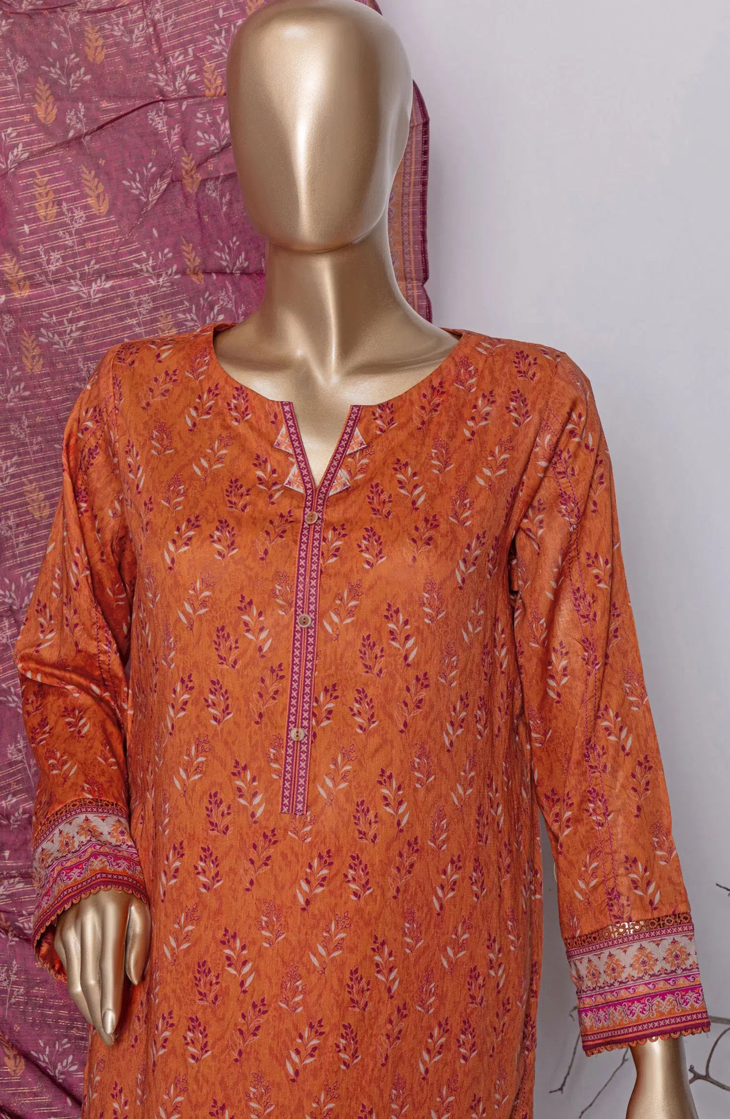 HZ Textile Digital Printed Linen Slub Unstitched 3 Piece Suit - LSD-305 - HZ25LNSL - Pink - Winter Collection