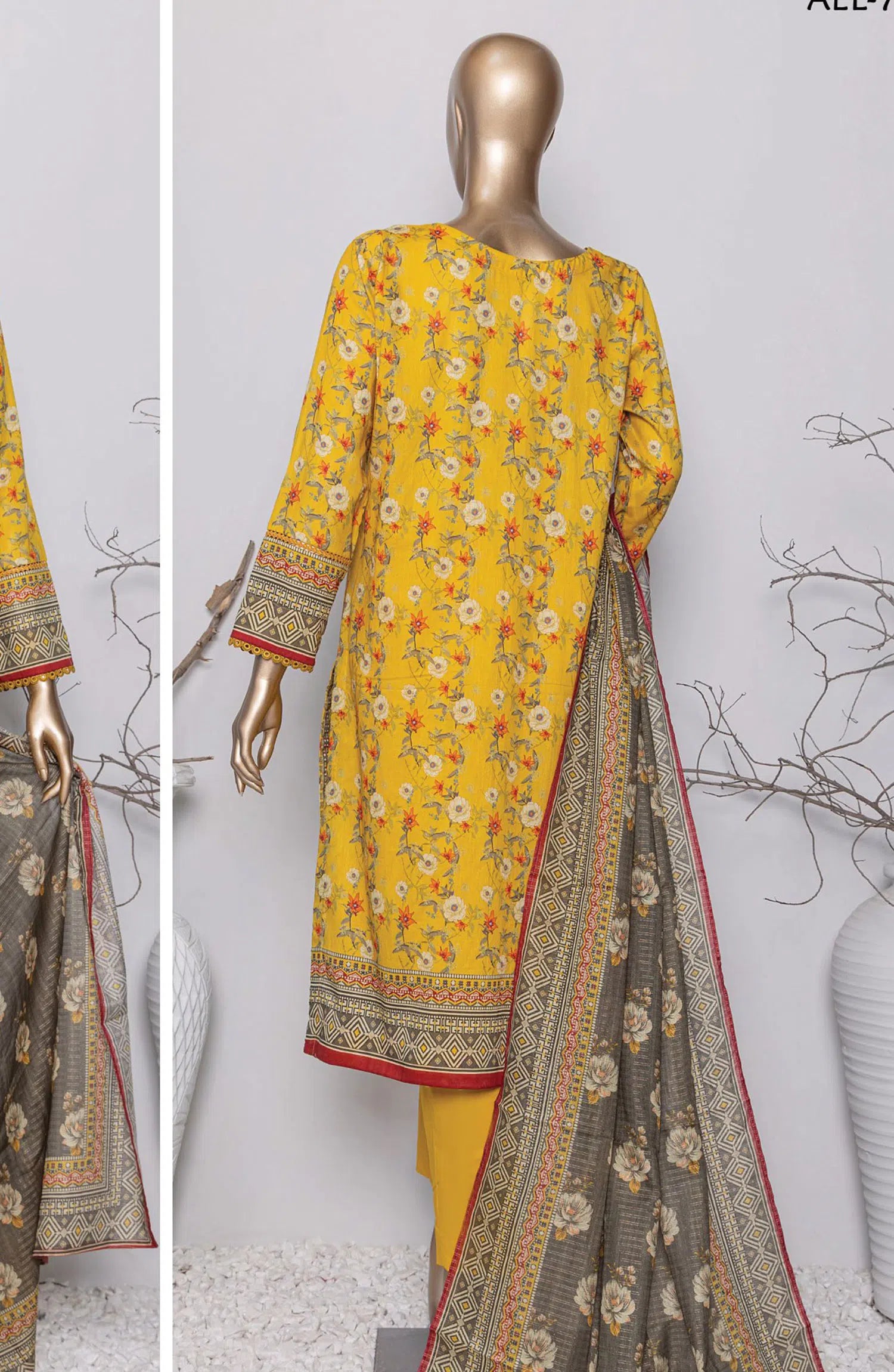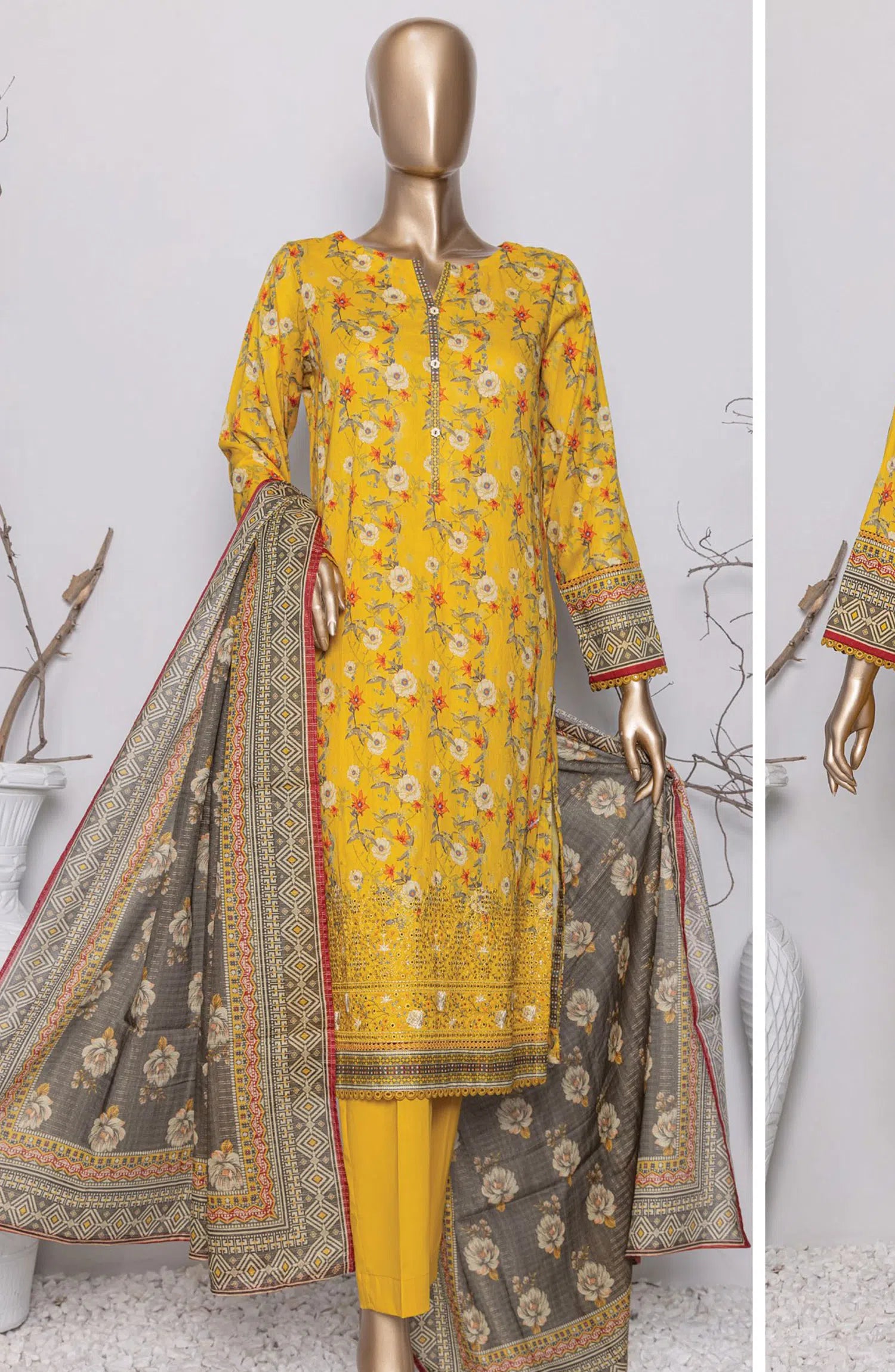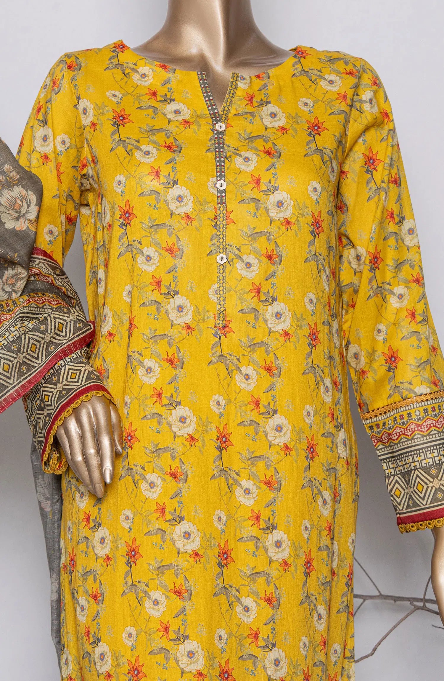 HZ Textile Digital Printed Linen Slub Unstitched 3 Piece Suit - LSD-309 - HZ25LNSL - Mustard - Winter Collection
