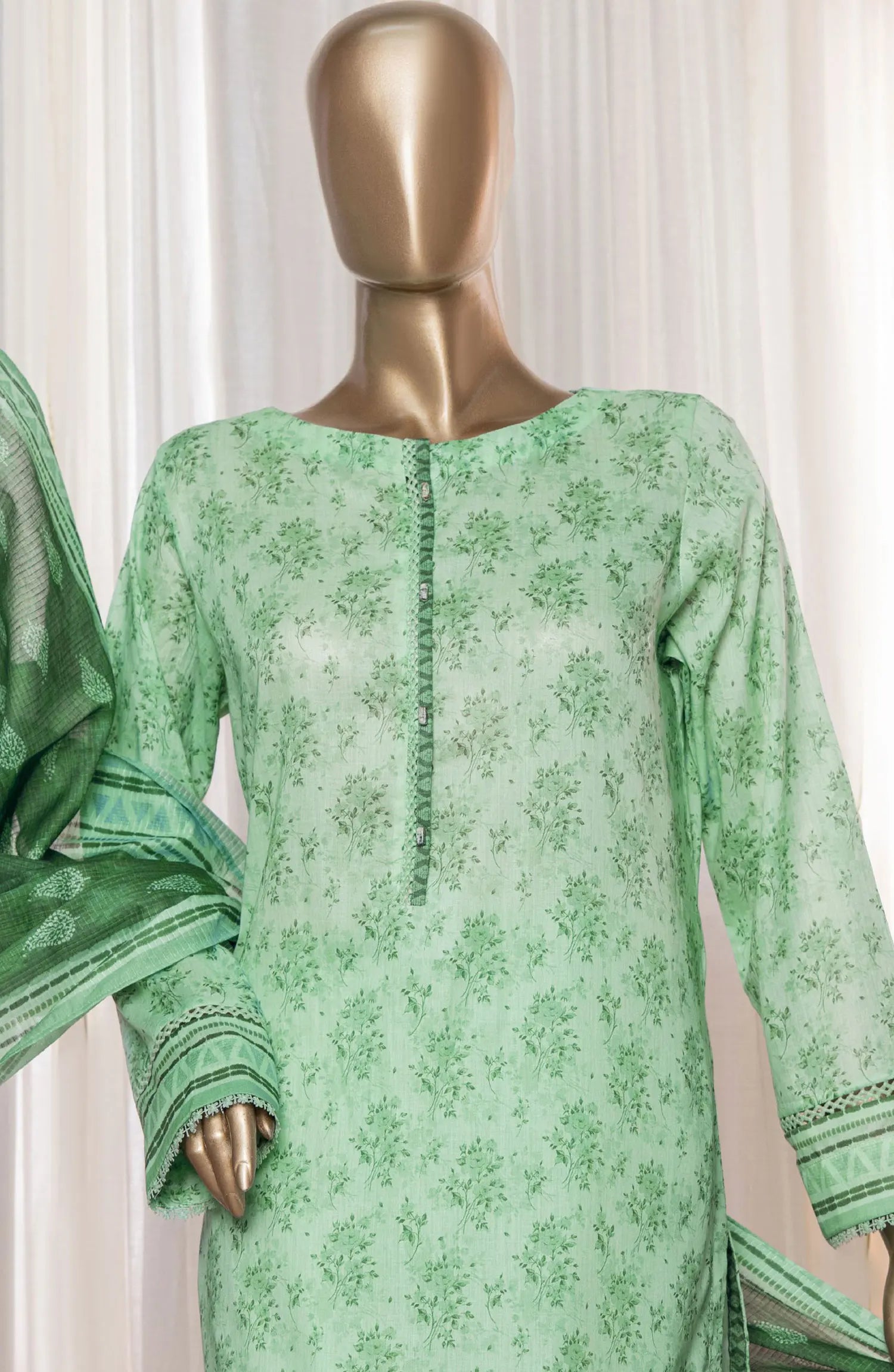 HZ Textile Digital Printed Linen Slub Unstitched 3 Piece Suit - LSD-306 - HZ25LNSL - Green - Winter Collection