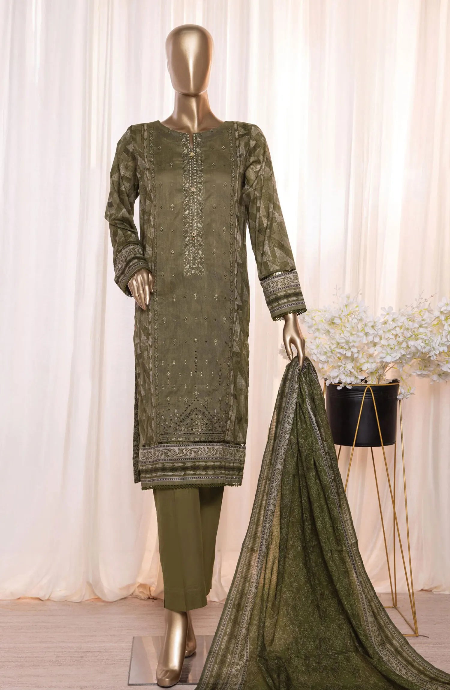 HZ Asasa Digital Embroidered Lawn Collection Vol 05 has been styled in the image for photography and illustrative purposes.