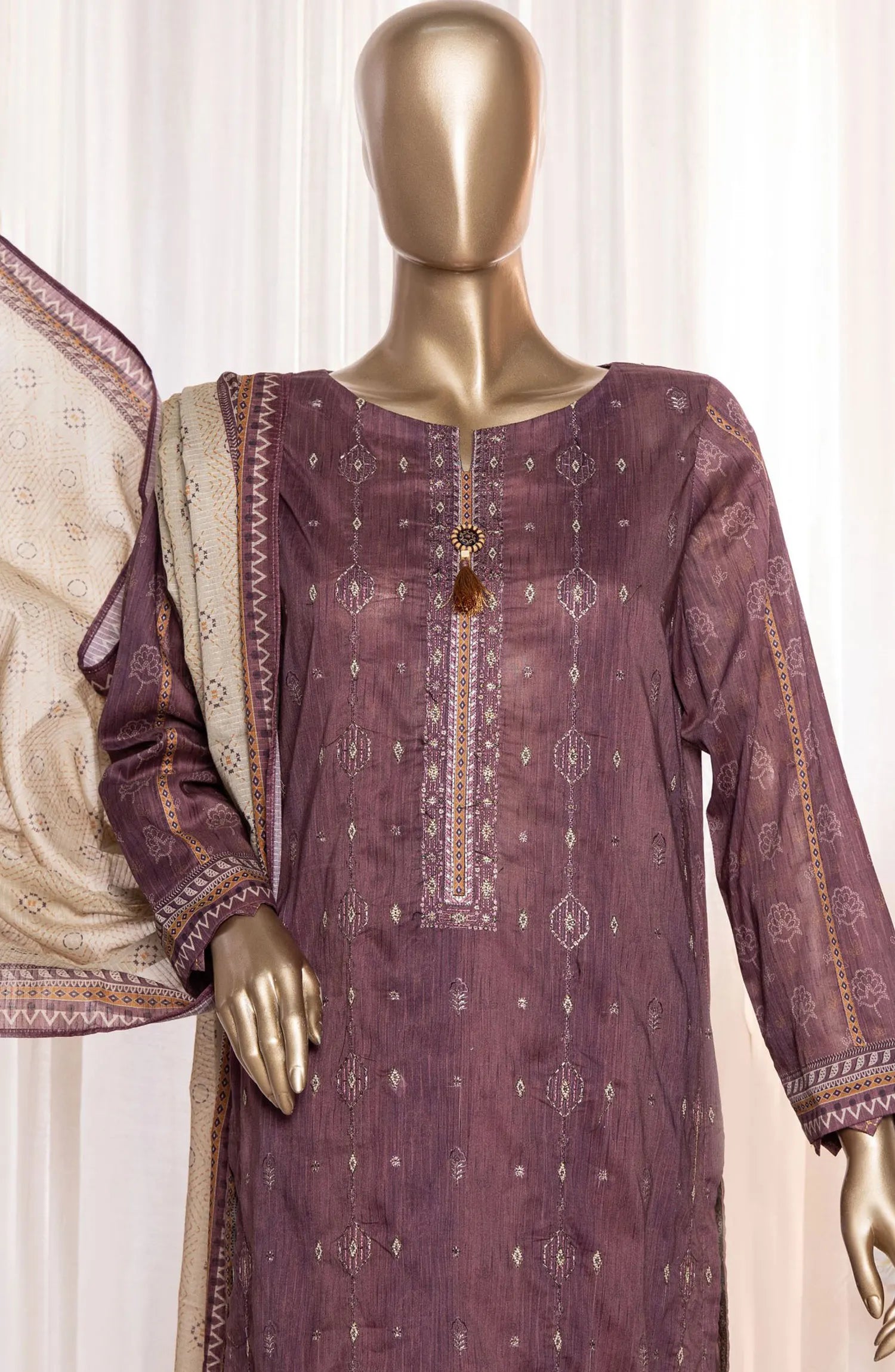 HZ Textile Digital Printed Linen Slub Unstitched 3 Piece Suit - LSD-305 - HZ25LNSL - Pink - Winter Collection