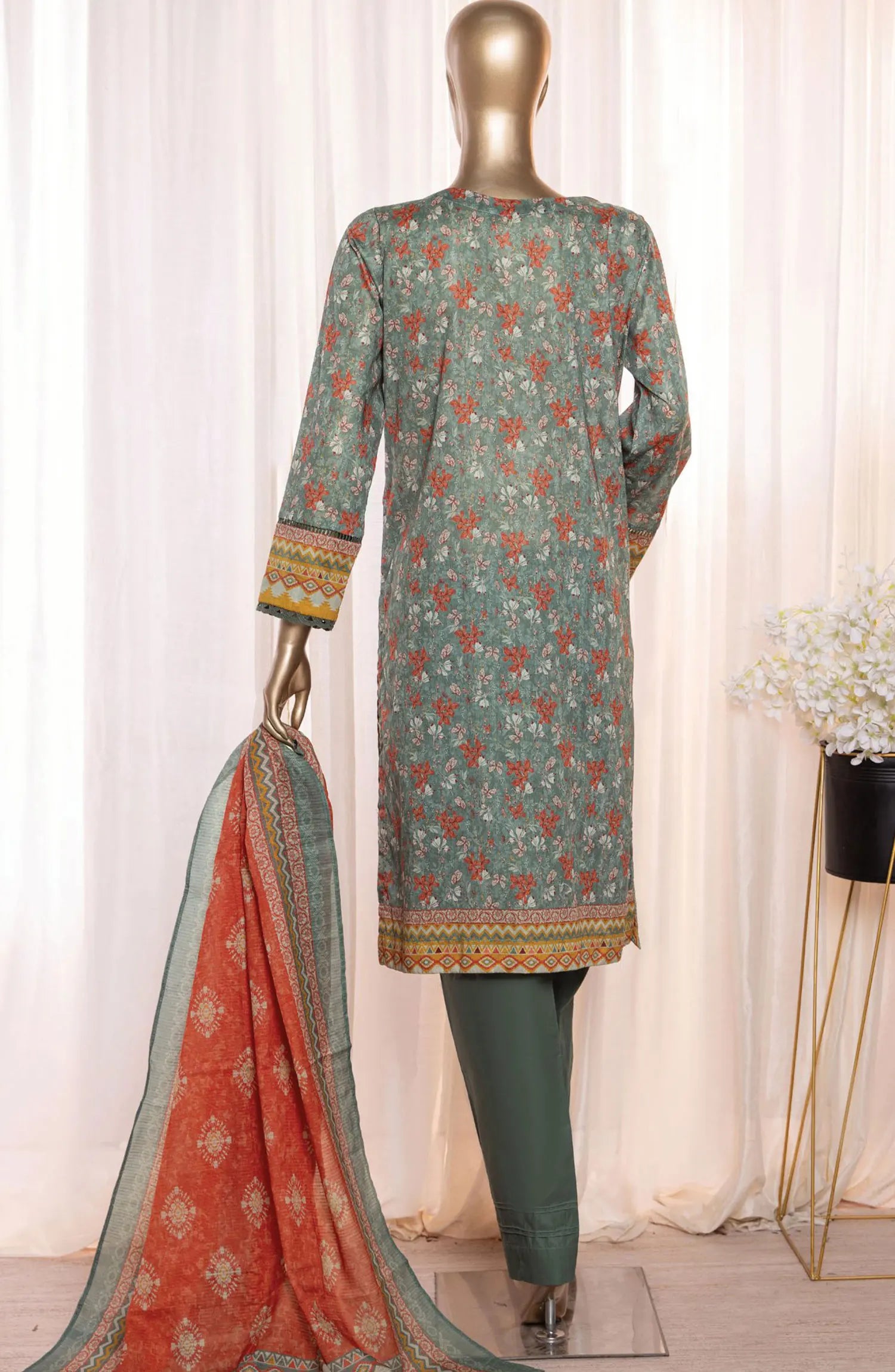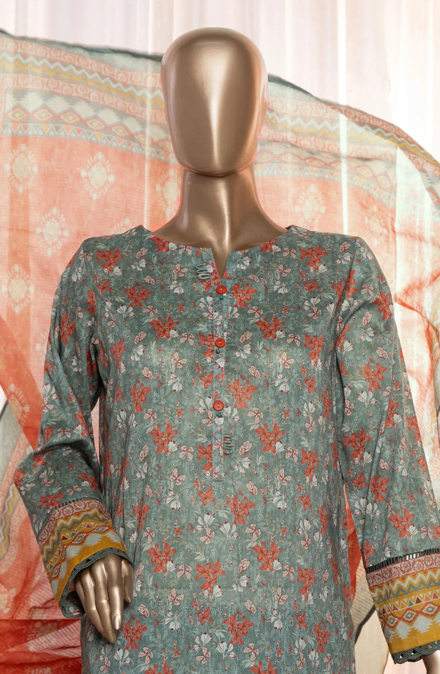 HZ Textile Digital Printed Linen Slub Unstitched 3 Piece Suit - LSD-306 - HZ25LNSL - Green - Winter Collection