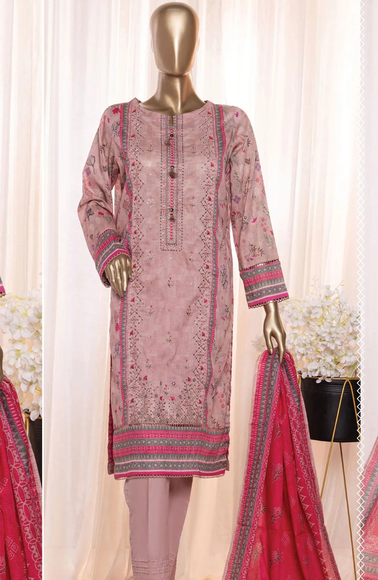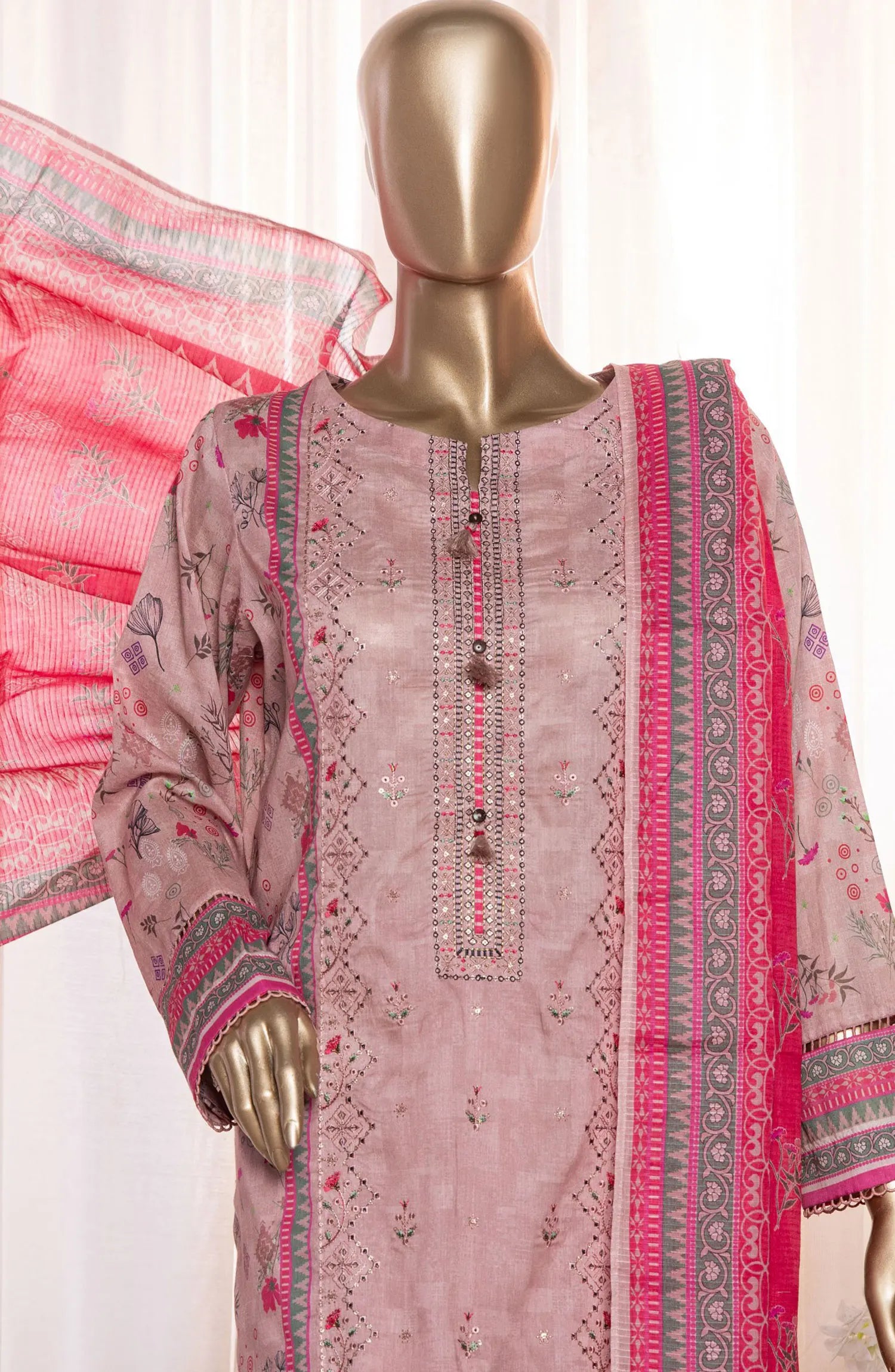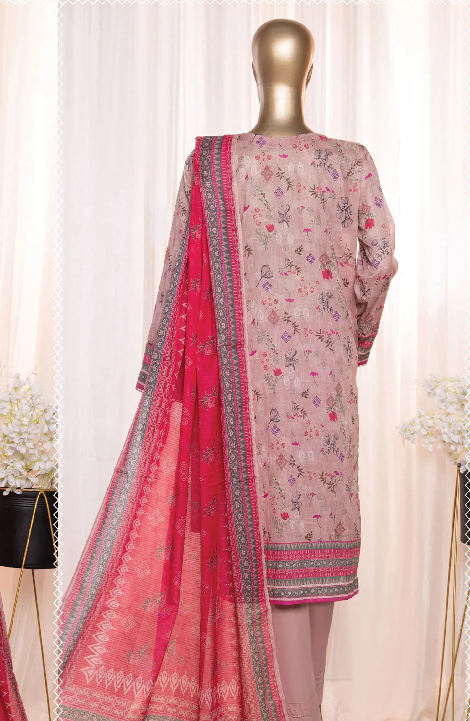 HZ Textile Digital Printed Linen Slub Unstitched 3 Piece Suit - LSD-303 - HZ25LNSL - Pink - Winter Collection