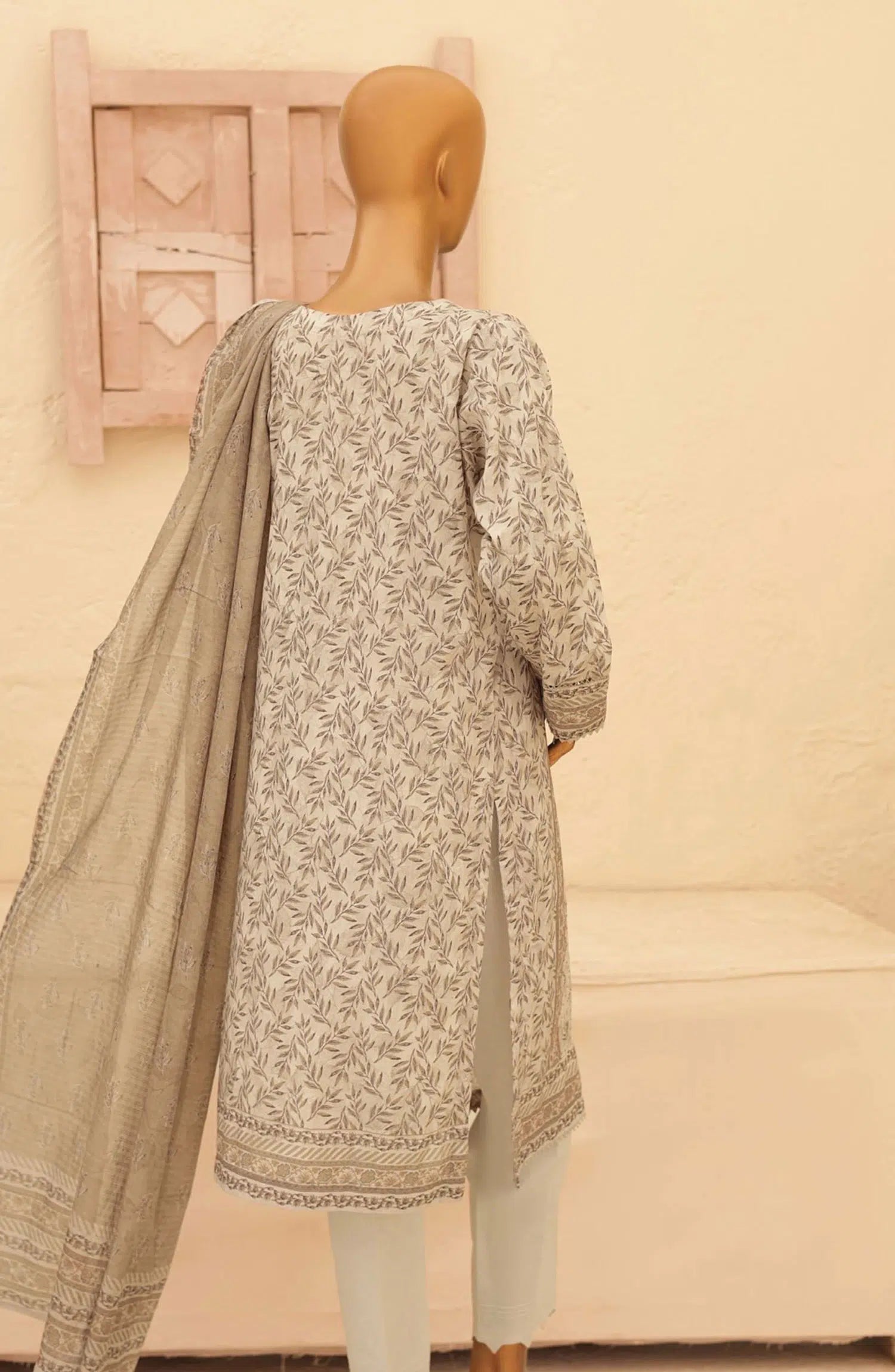 HZ Textile Digital Printed Linen Slub Unstitched 3 Piece Suit - LSD-304 - HZ25LNSL - White - Winter Collection