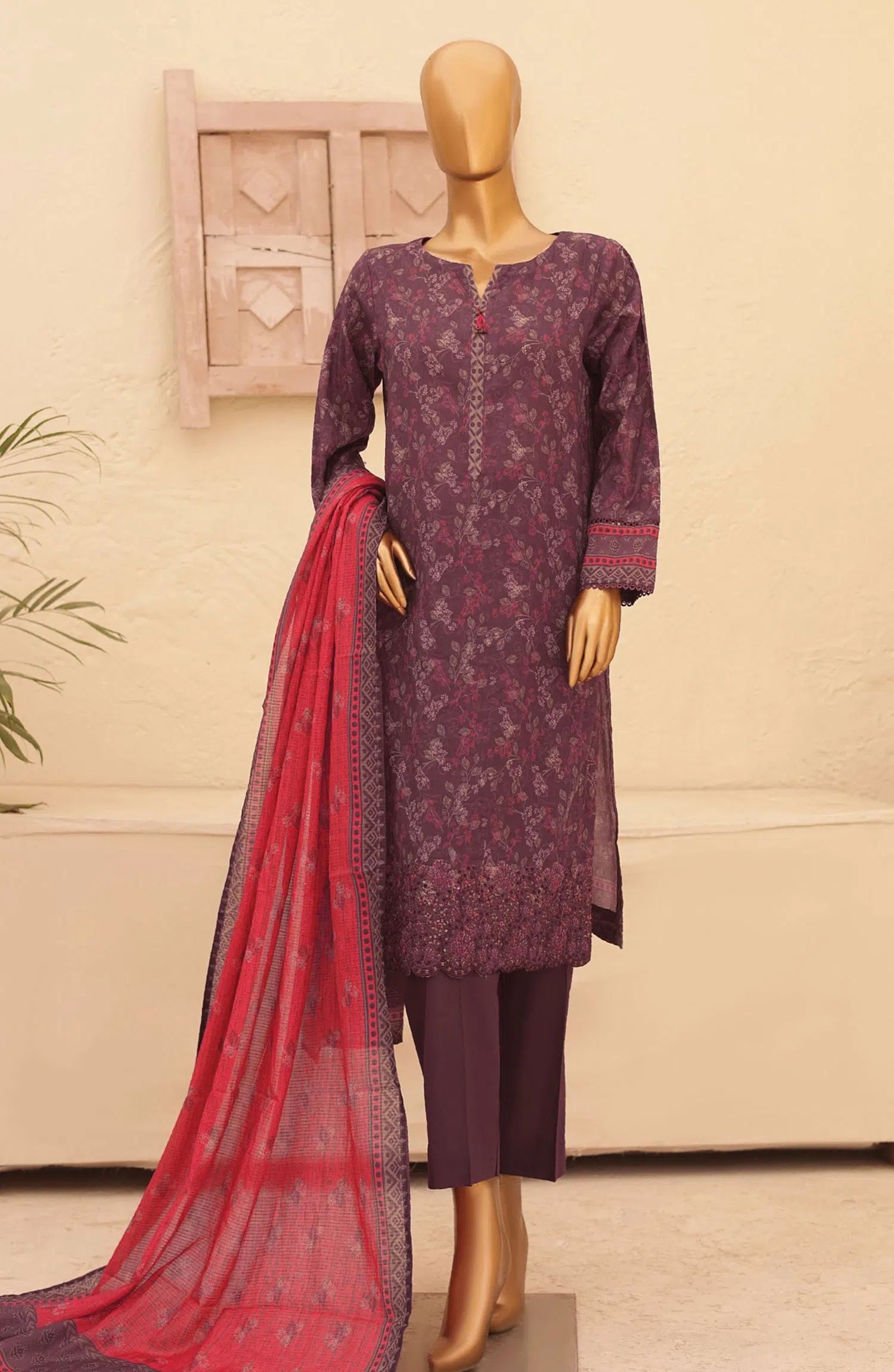 HZ Textile Digital Printed Linen Slub Unstitched 3 Piece Suit - LSD-305 - HZ25LNSL - Pink - Winter Collection