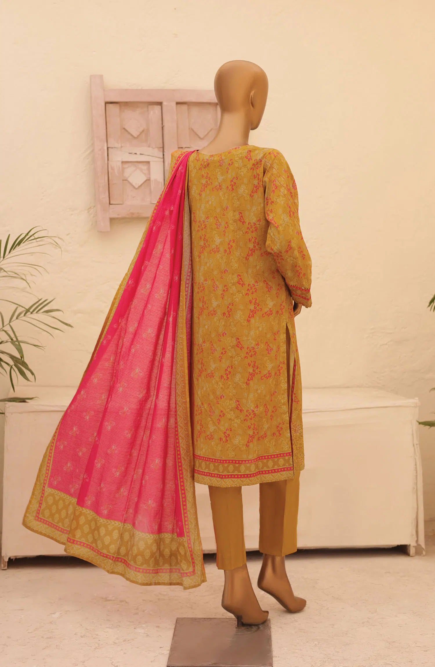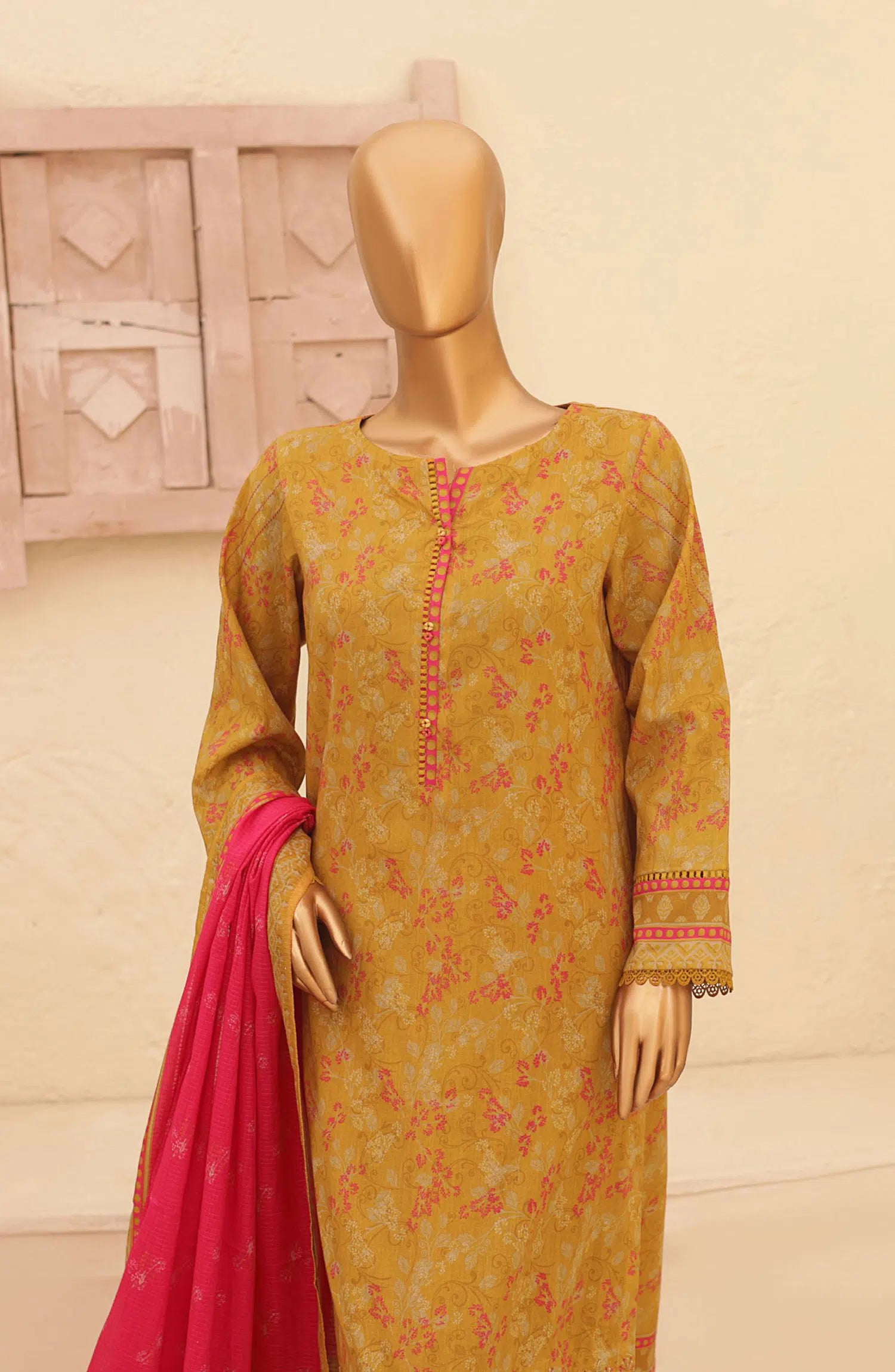 HZ Textile Digital Printed Linen Slub Unstitched 3 Piece Suit - LSD-309 - HZ25LNSL - Mustard - Winter Collection