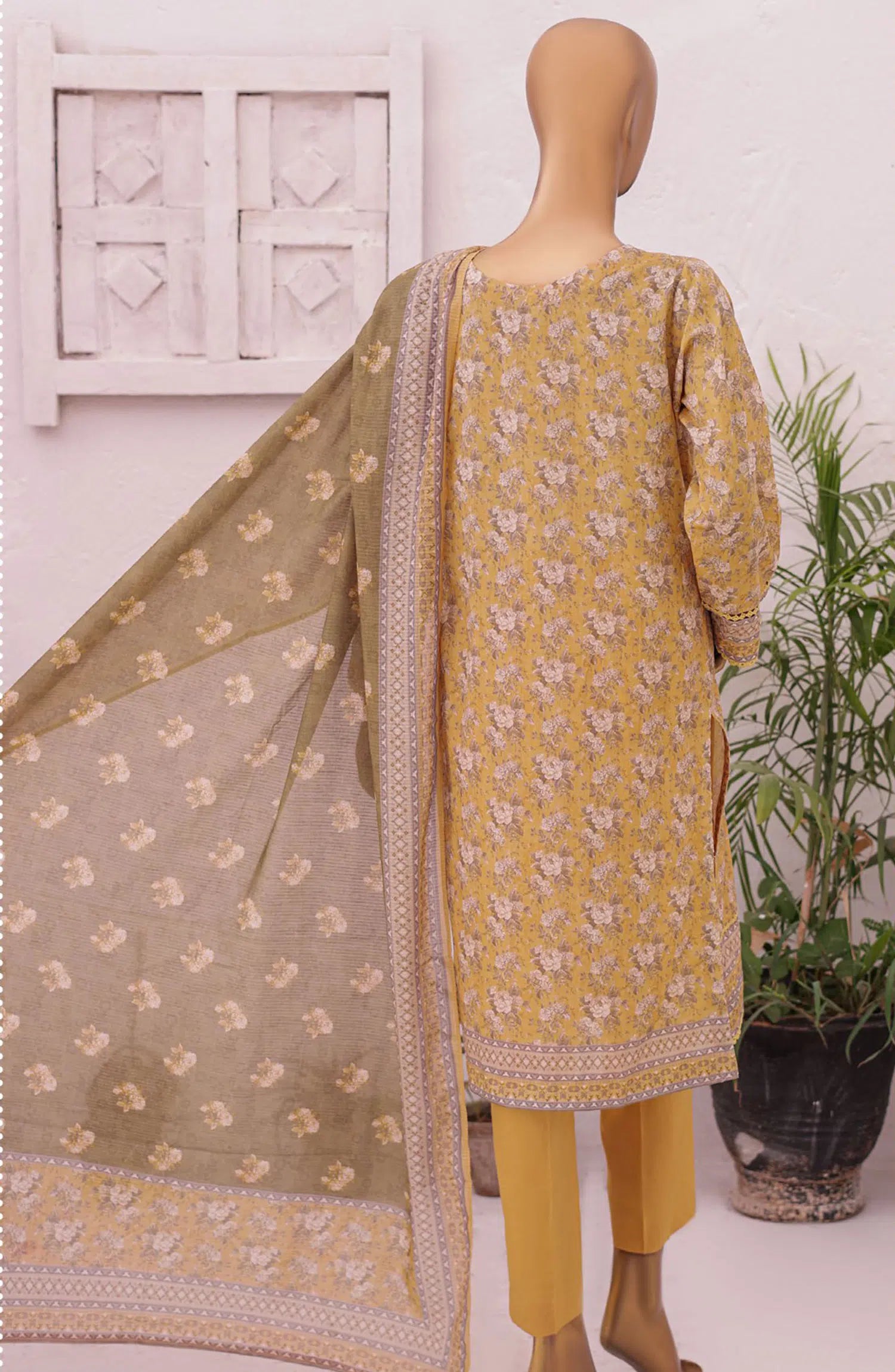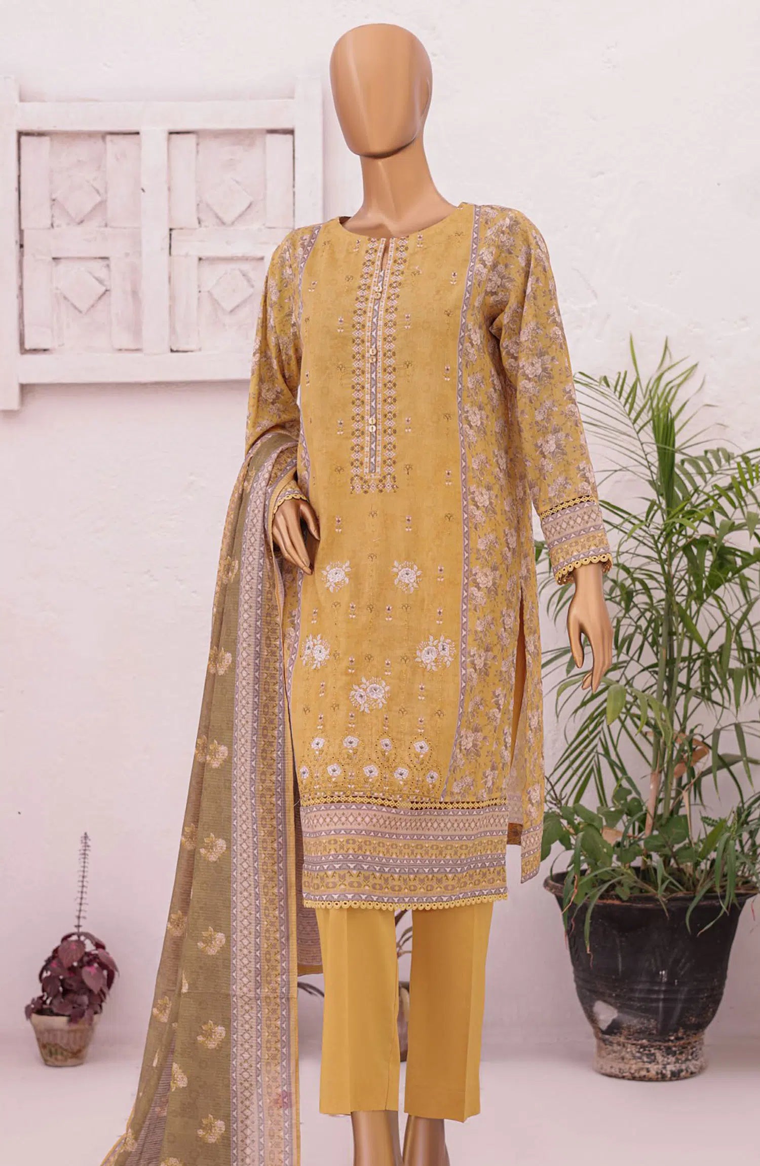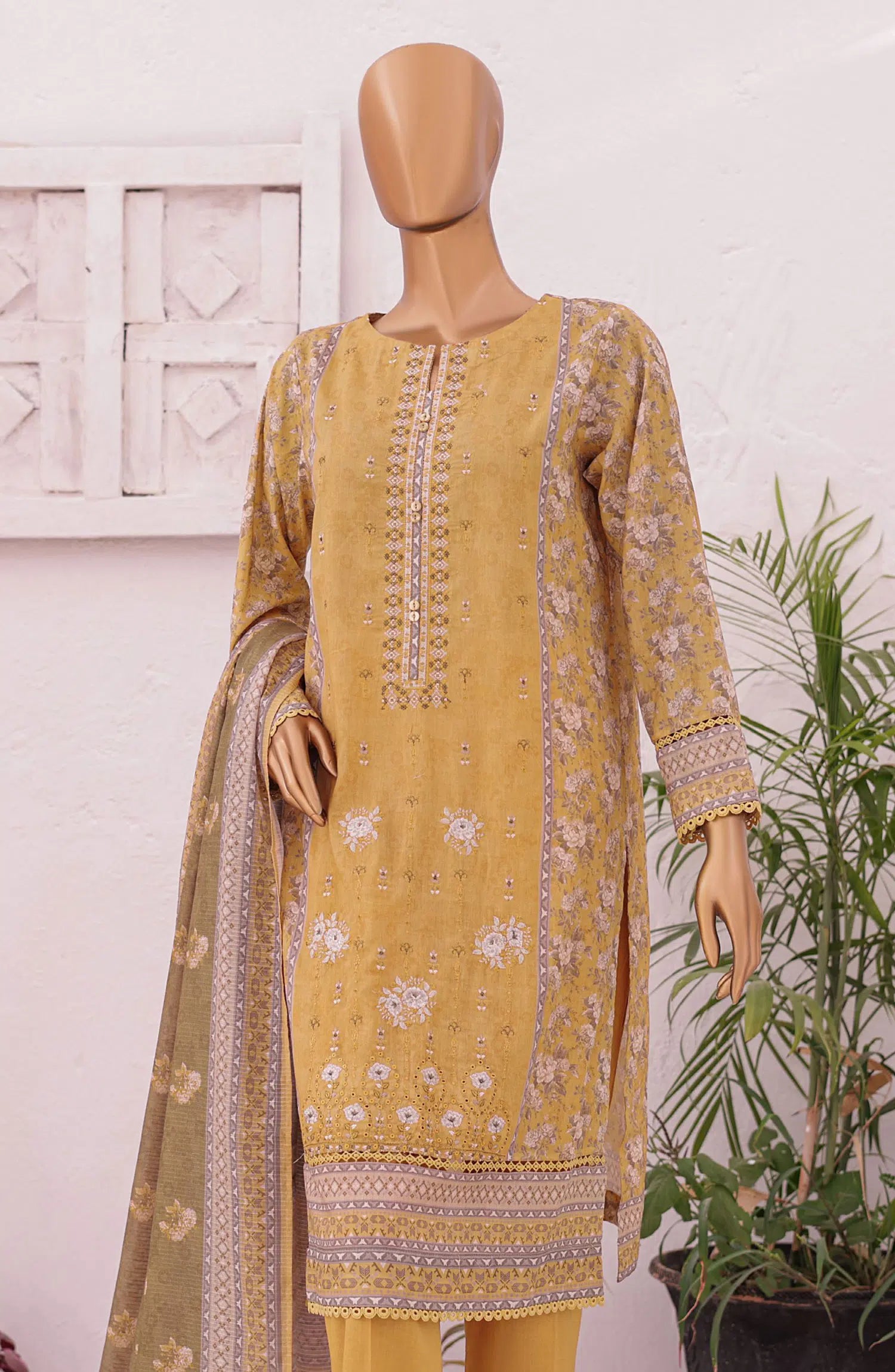 HZ Textile Digital Printed Linen Slub Unstitched 3 Piece Suit - LSD-309 - HZ25LNSL - Mustard - Winter Collection
