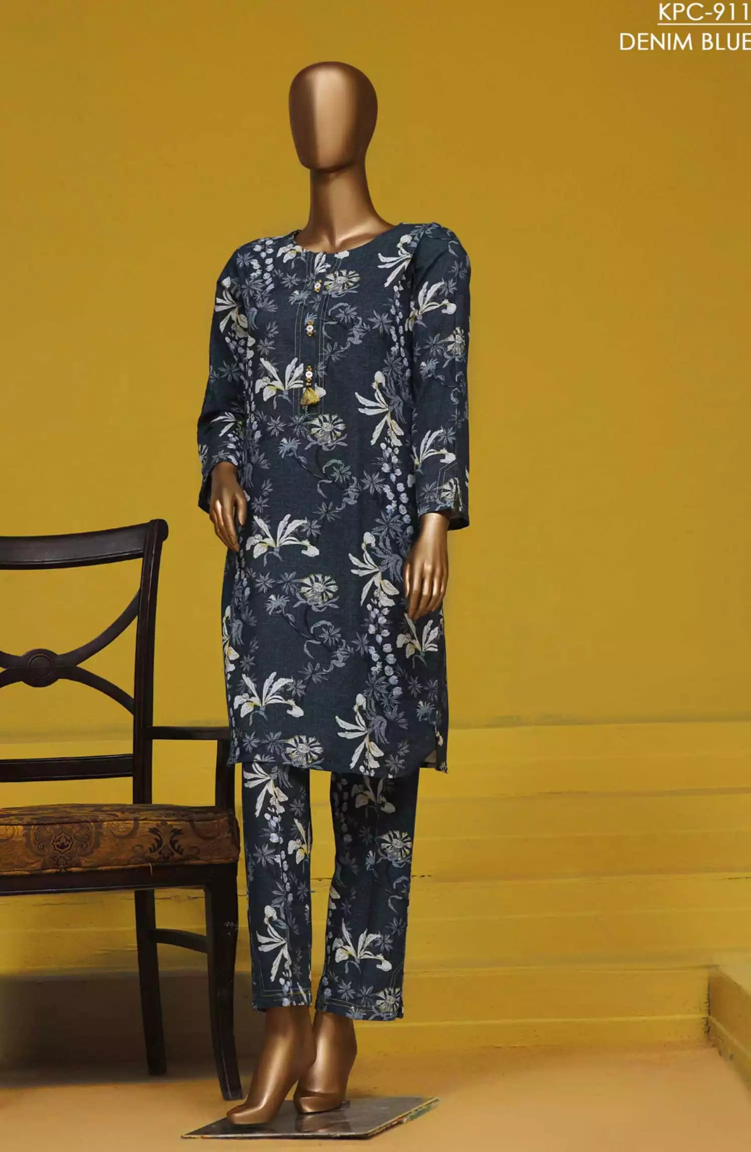 Home HZ Basics Printed Khaddar Co Ords RTW Vol 02 - KPC-911 DENIM BLUE