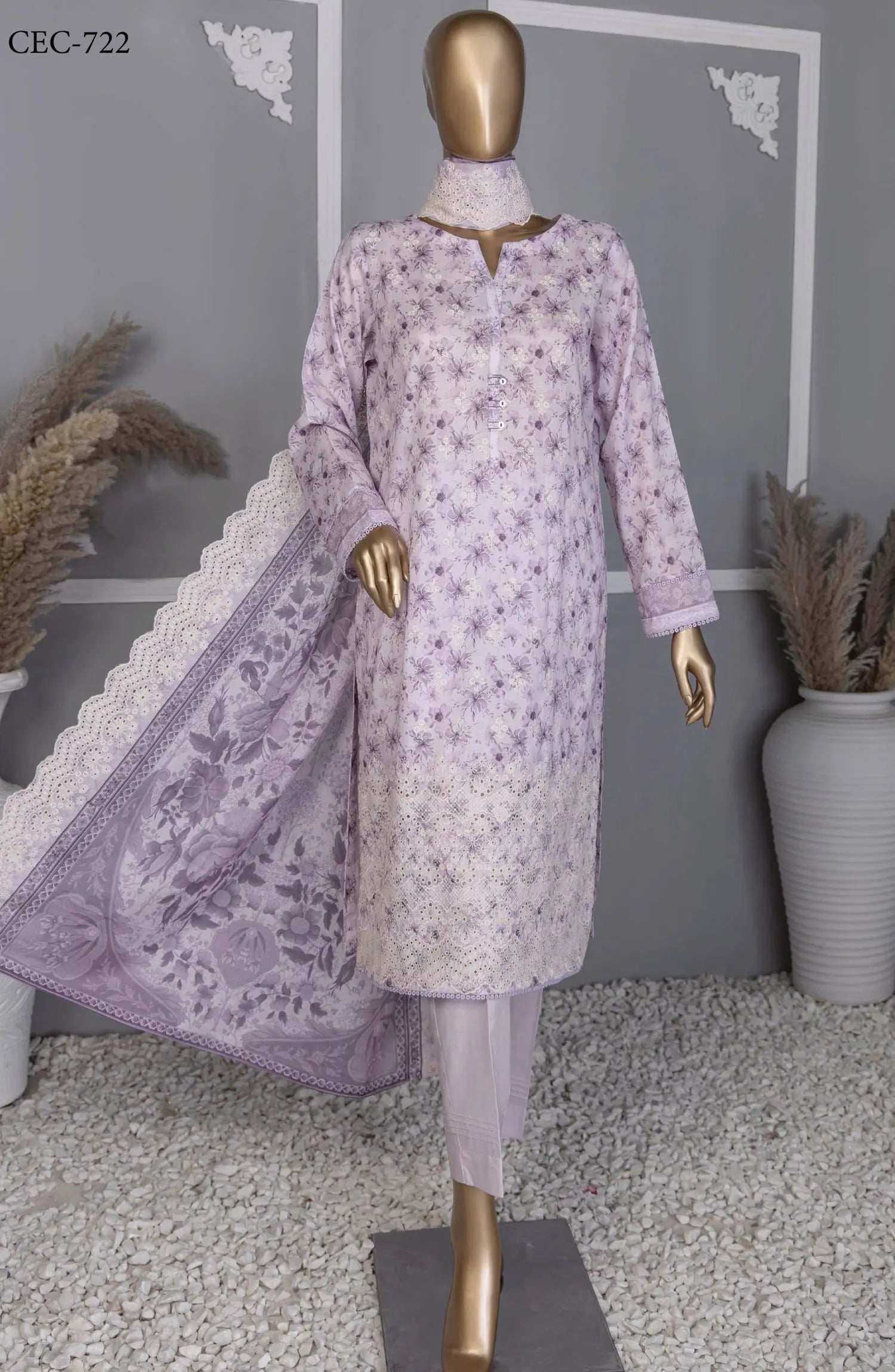 Premium Digital Printed Heavy Chikankari Embroidered Front.