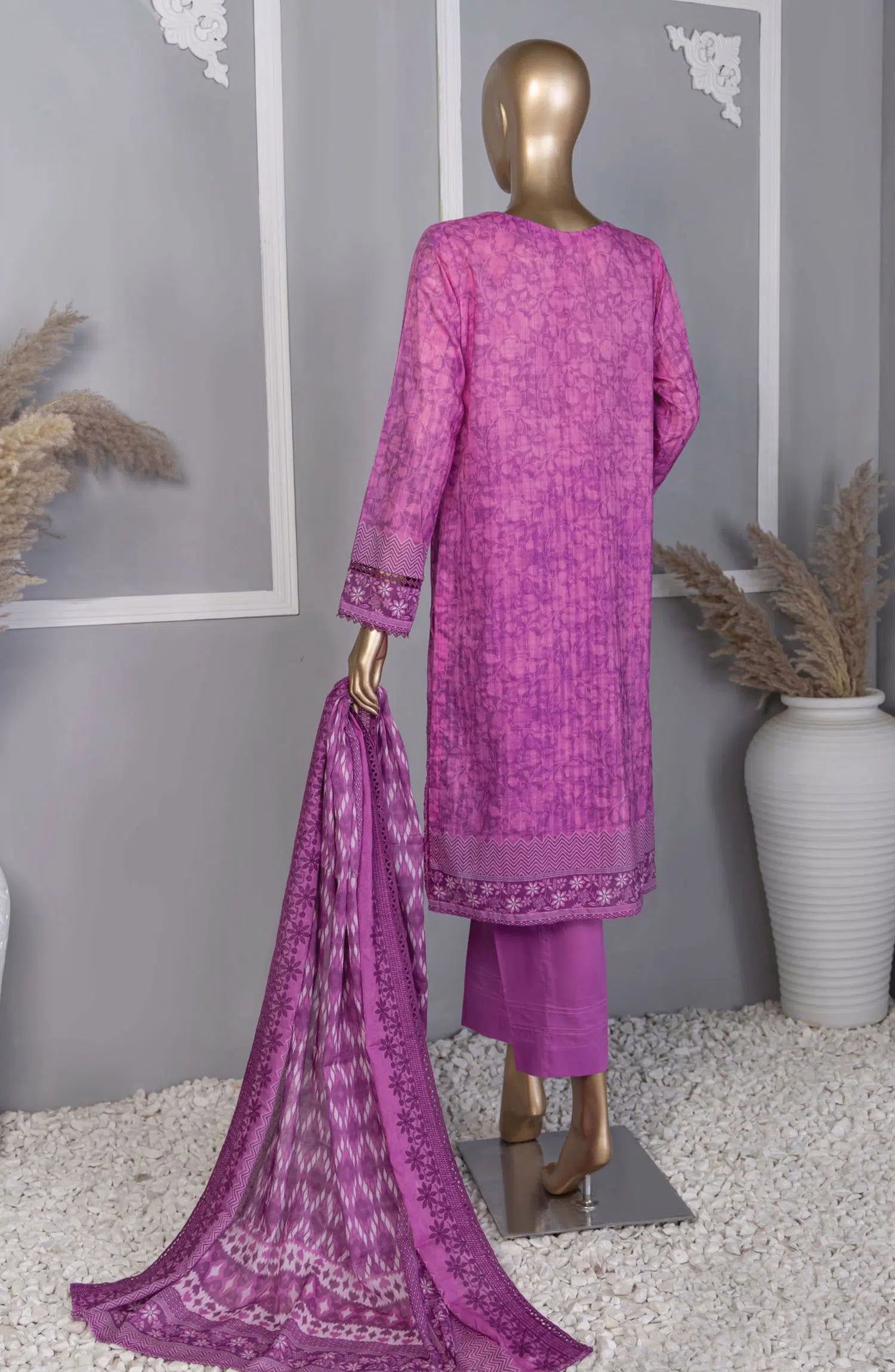 HZ Textile Digital Printed Linen Slub Unstitched 3 Piece Suit - LSD-305 - HZ25LNSL - Pink - Winter Collection