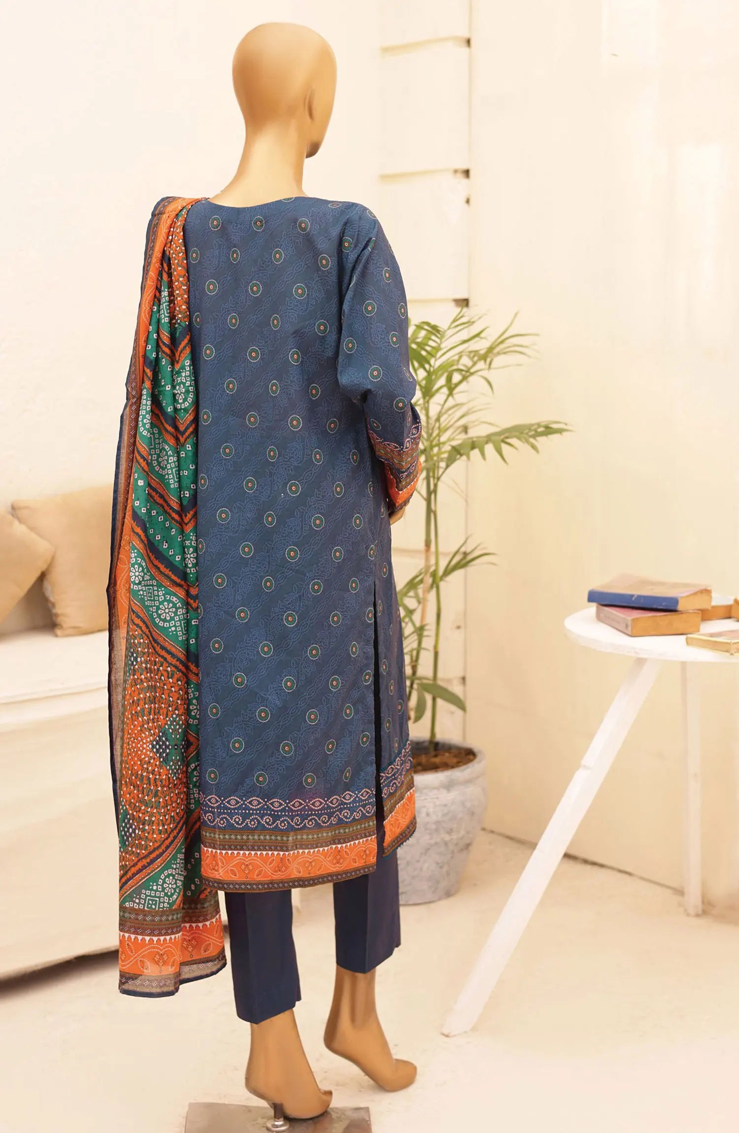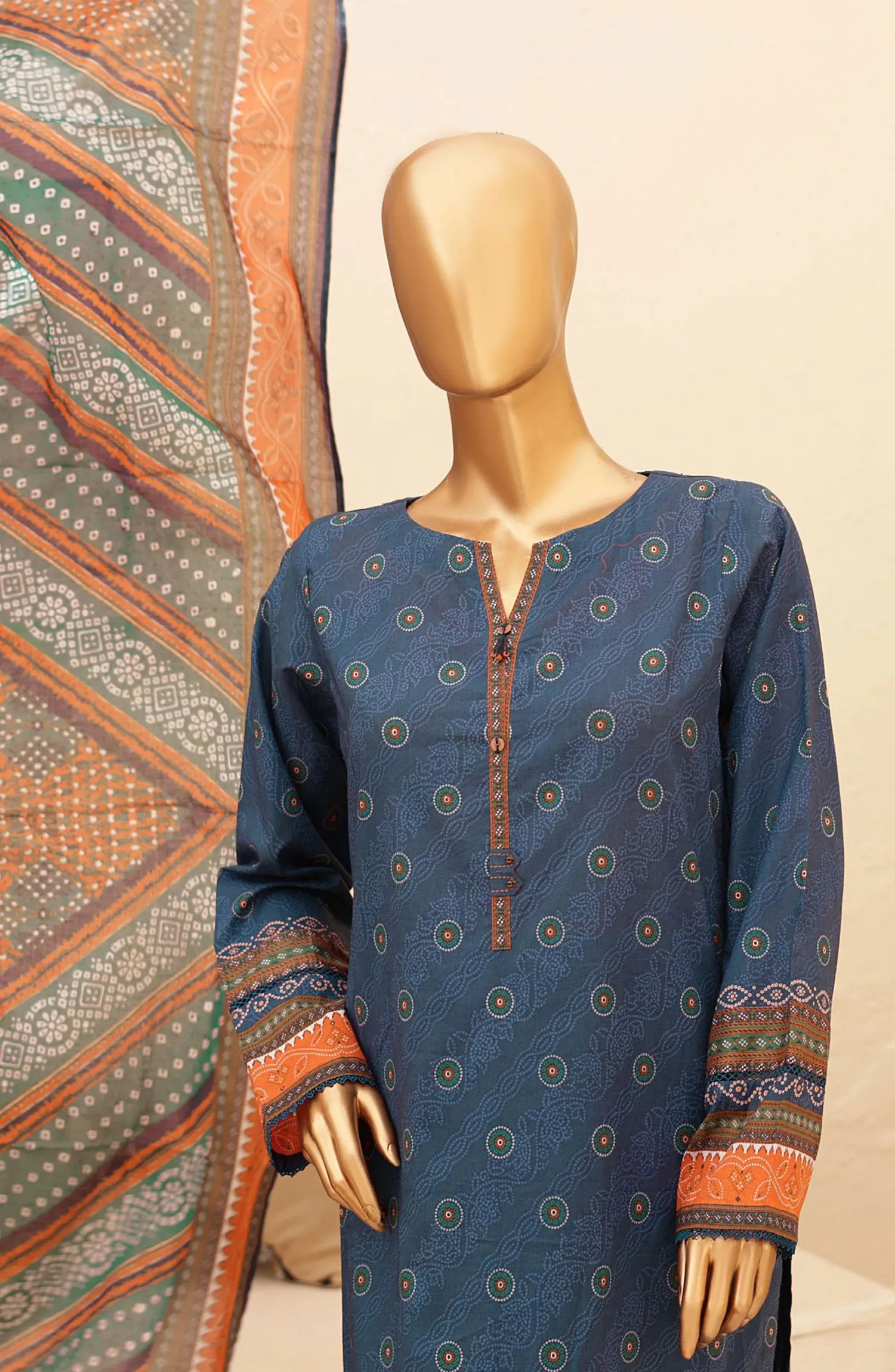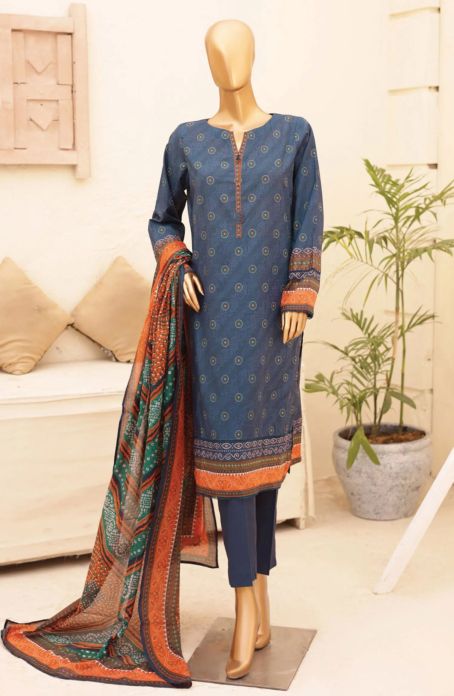 HZ Textile Digital Printed Linen Slub Unstitched 3 Piece Suit - LSD-308 - HZ25LNSL - Blue - Winter Collection