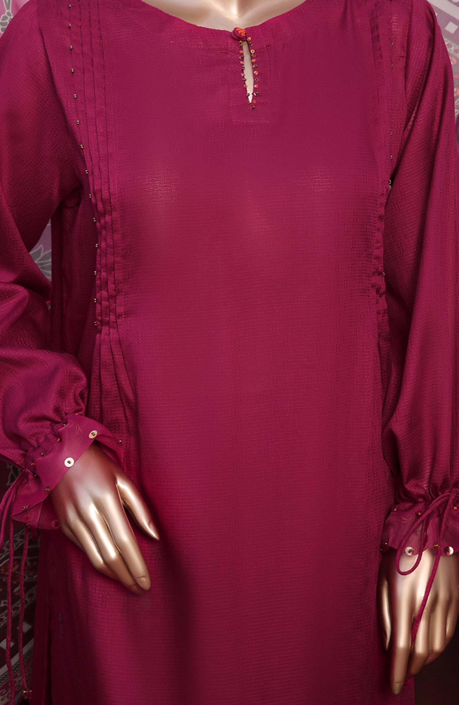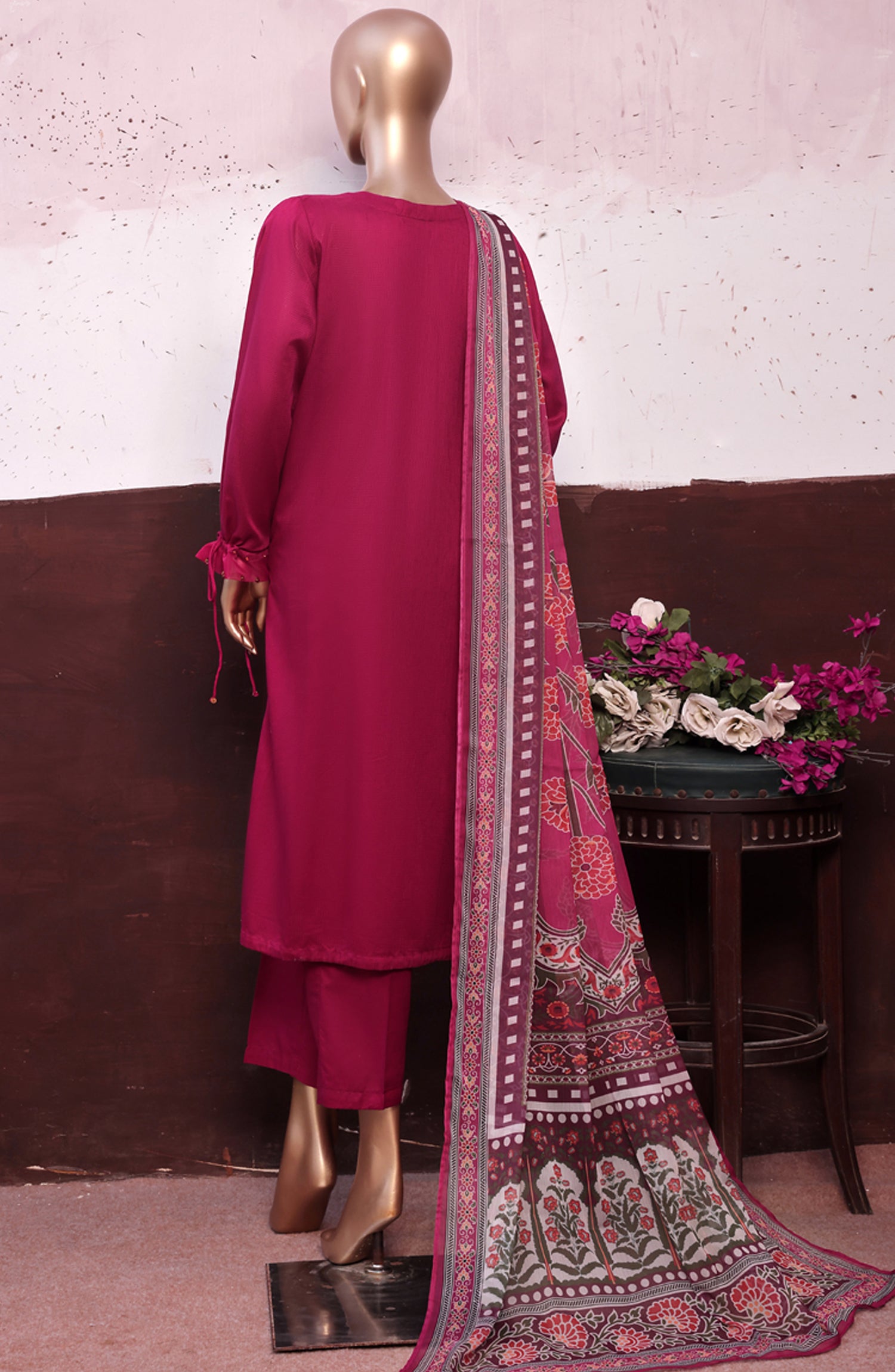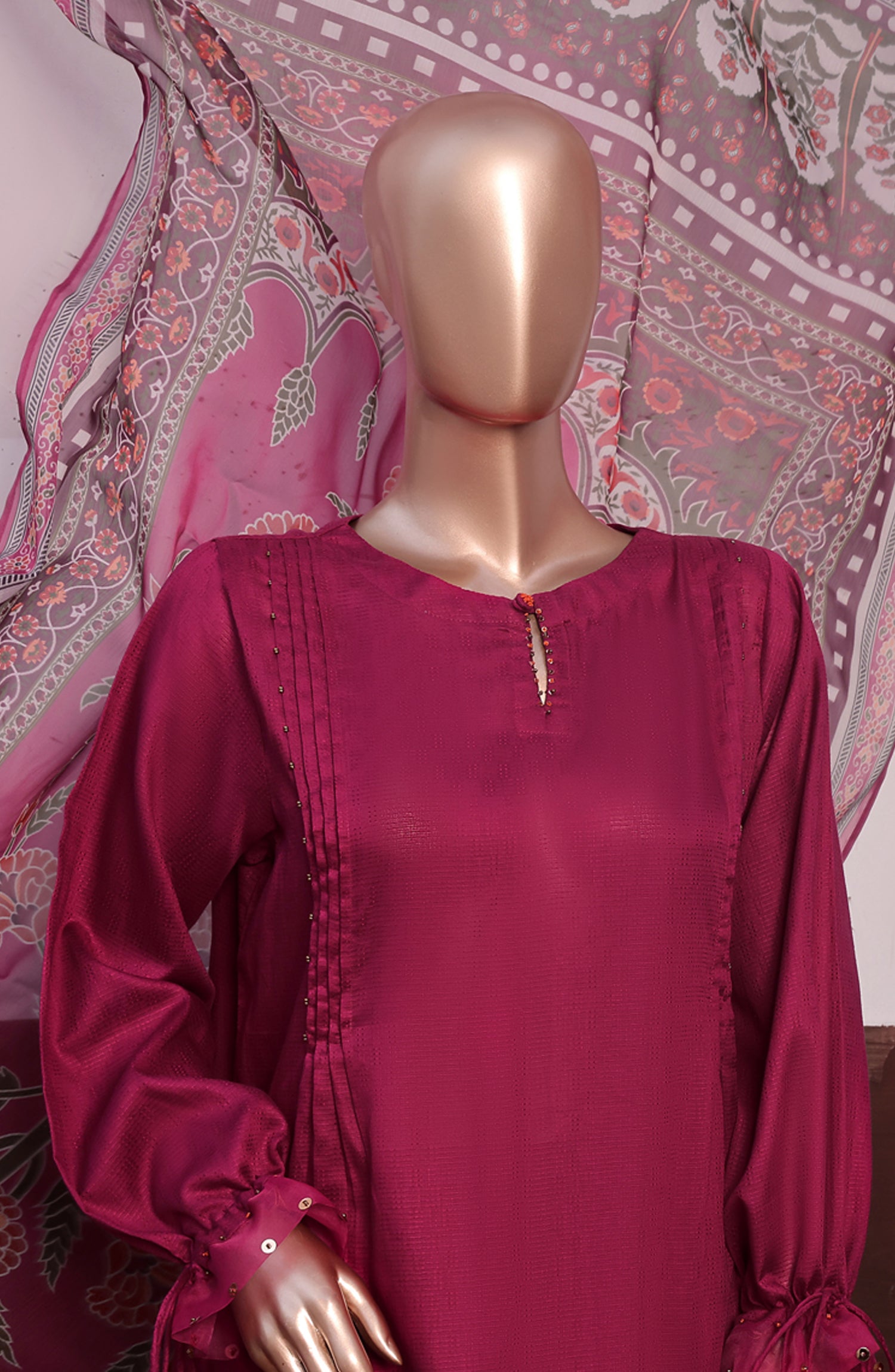 HZ Daily Drop Solids Twinset Printed Dobby Lawn Stitched 3 Piece Suit - SDJ-3P-P01 - HZ25DLD - Pink - Casual Collection