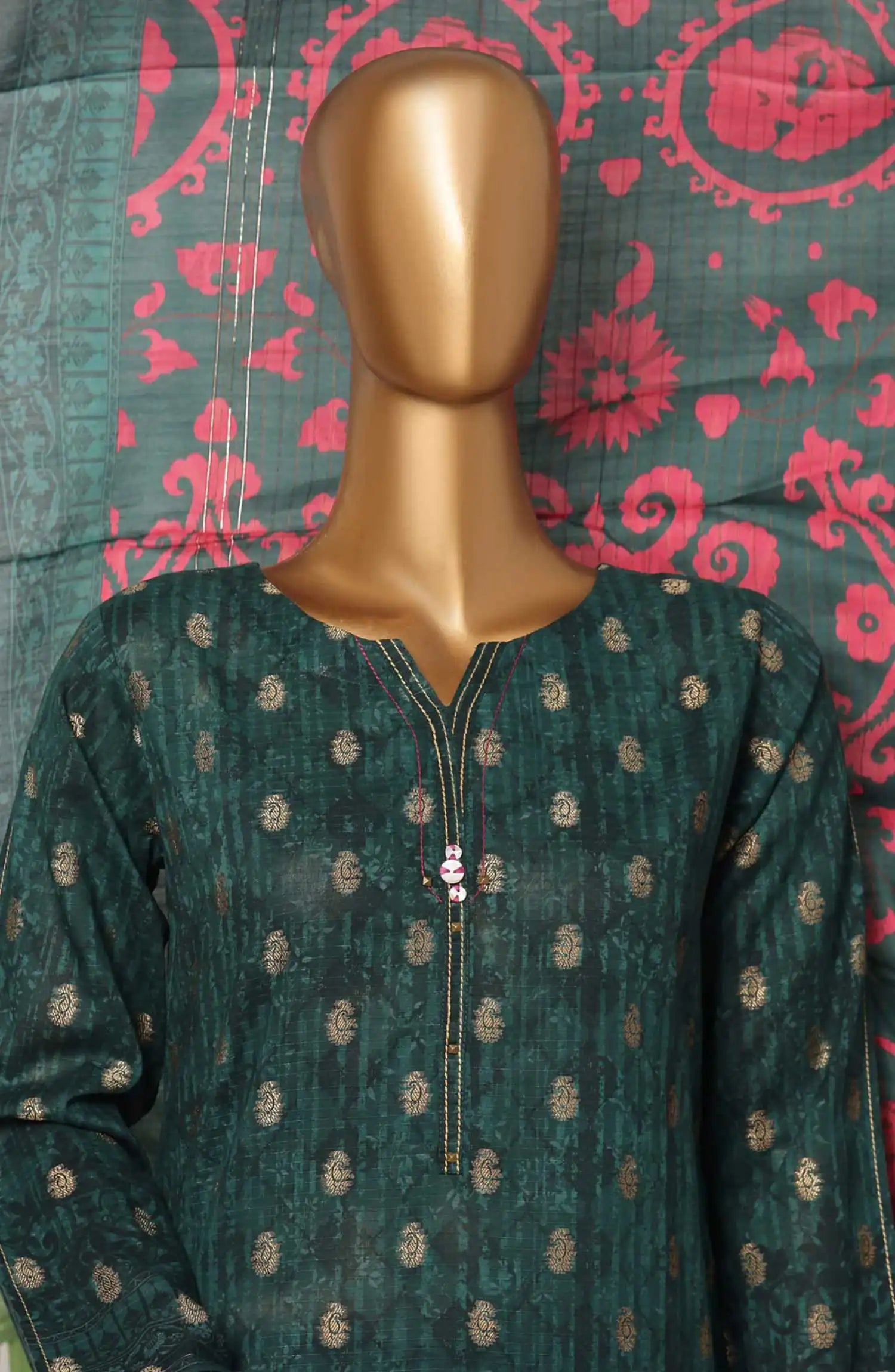 HZ Damask Jacquard Digital Printed RTW Collection - PJL 701 GREEN