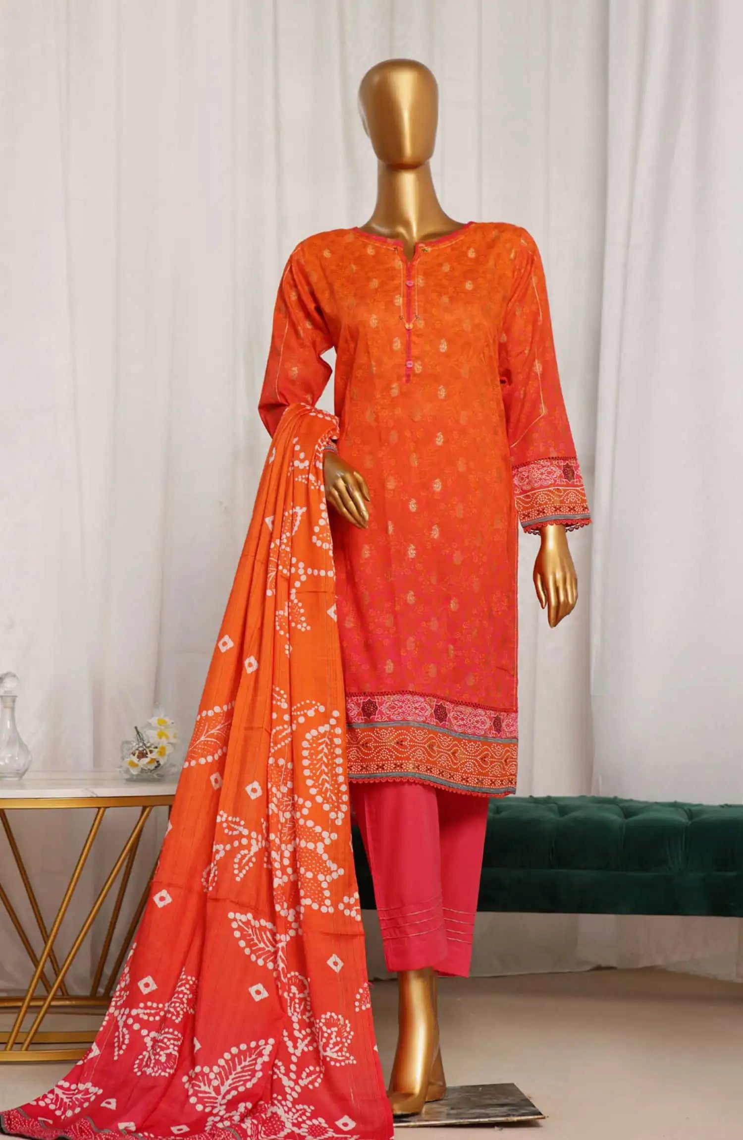 HZ Damask Jacquard Digital Printed RTW Collection - PJL 705 ORANGE