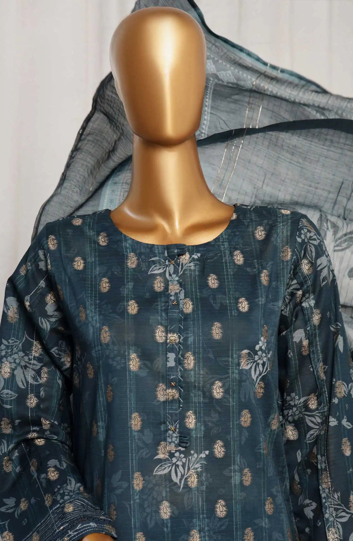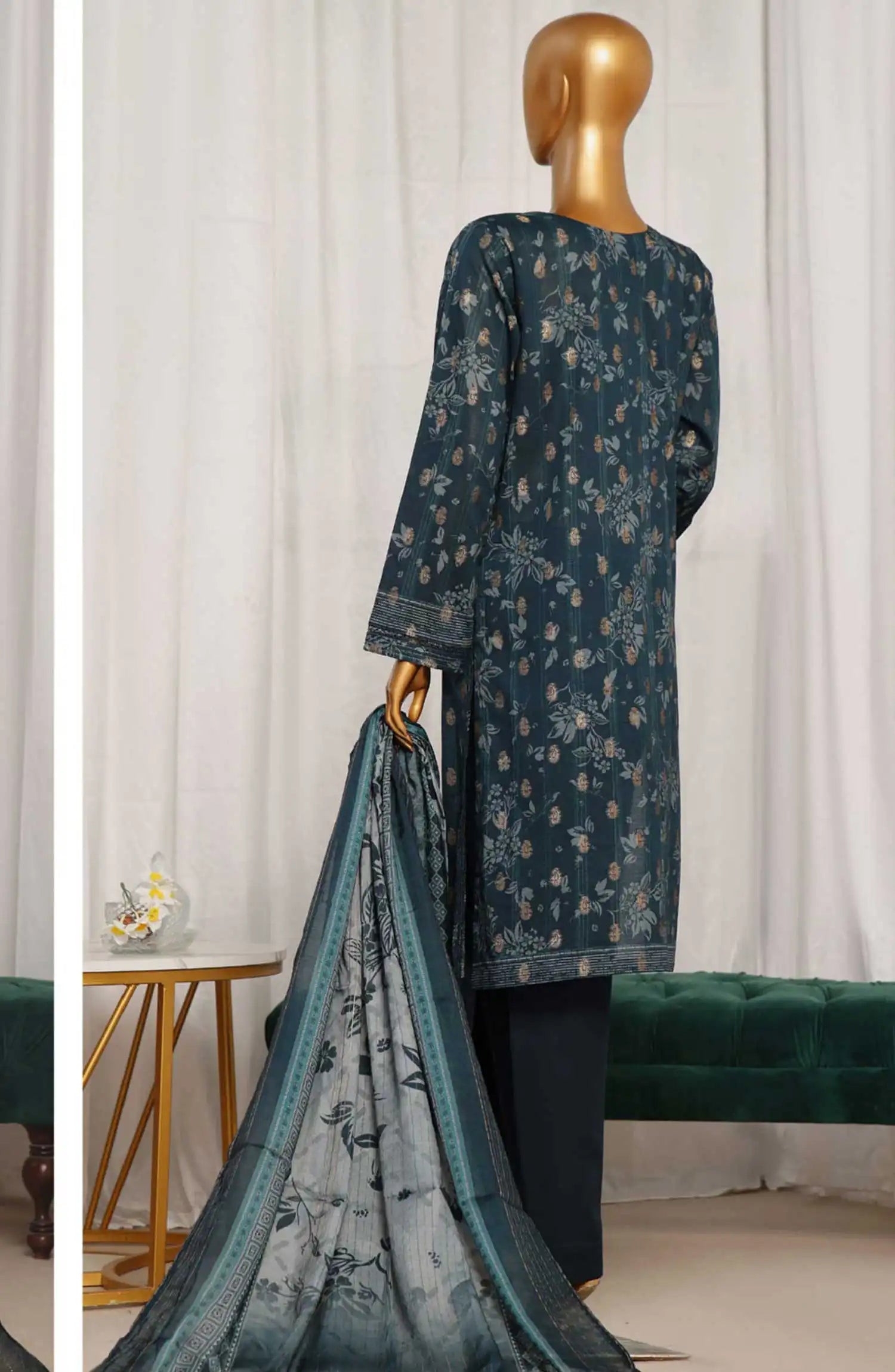 HZ Textile Digital Printed Linen Slub Unstitched 3 Piece Suit - LSD-308 - HZ25LNSL - Blue - Winter Collection