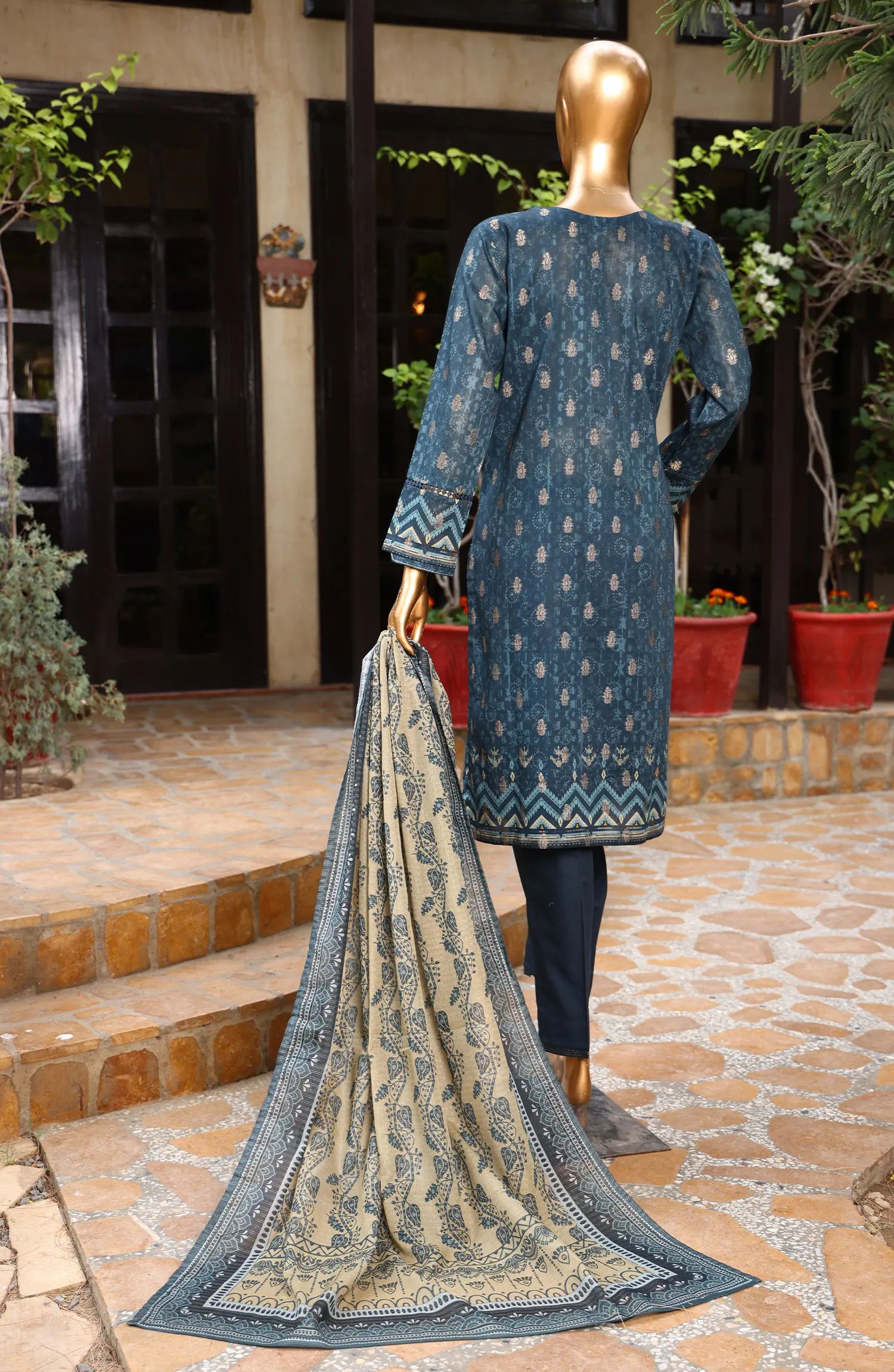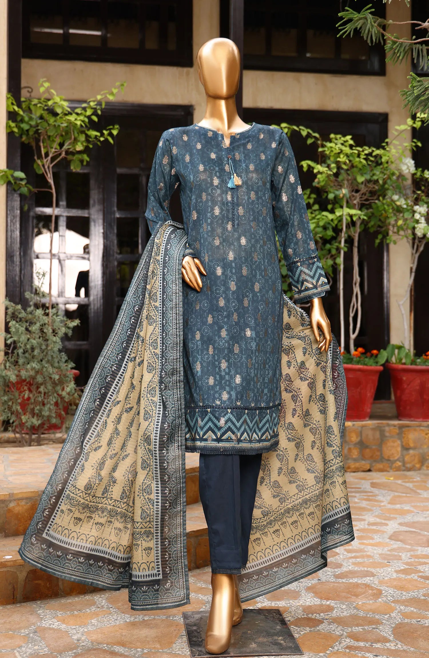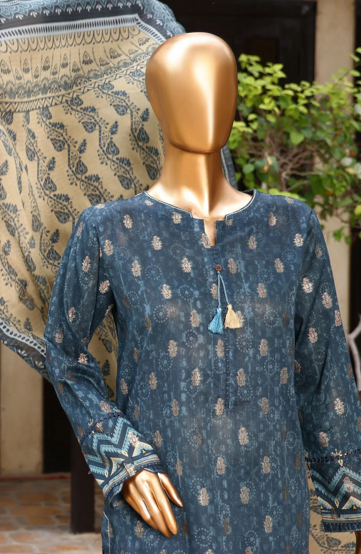 HZ Damask RTW Jacquard Printed Lawn Collection 2024 - PJL 403 TEAL