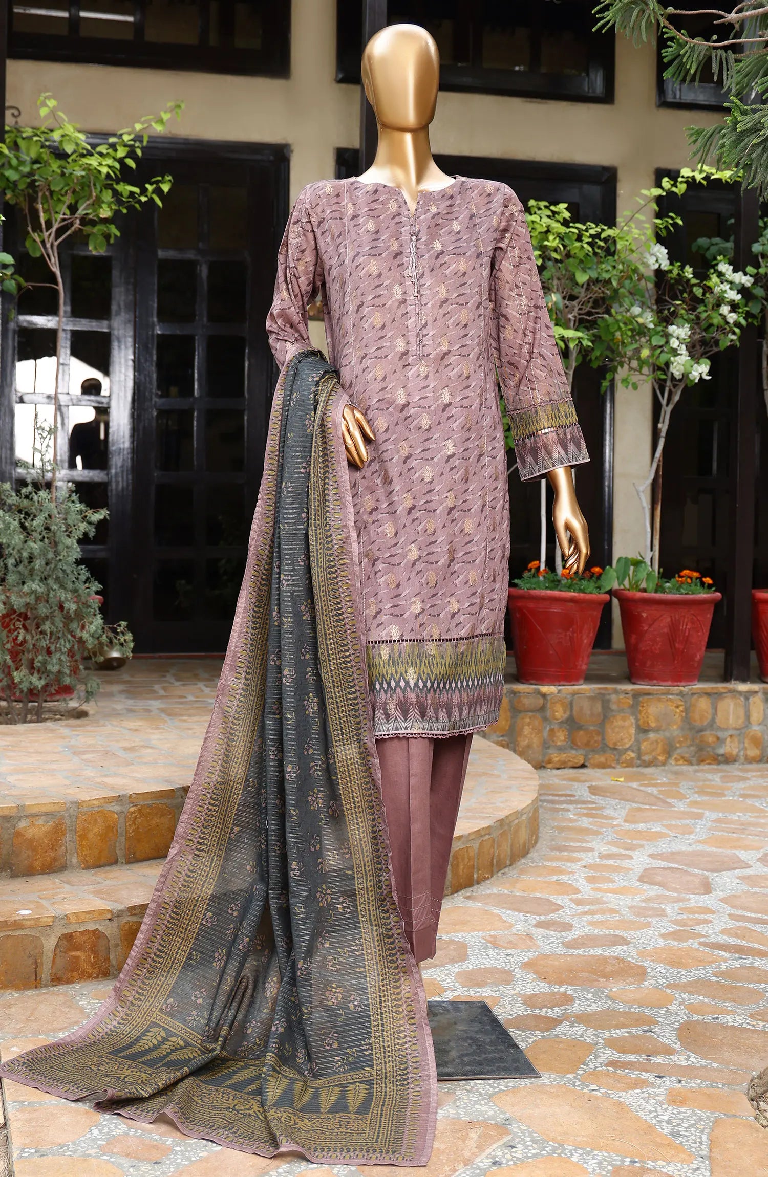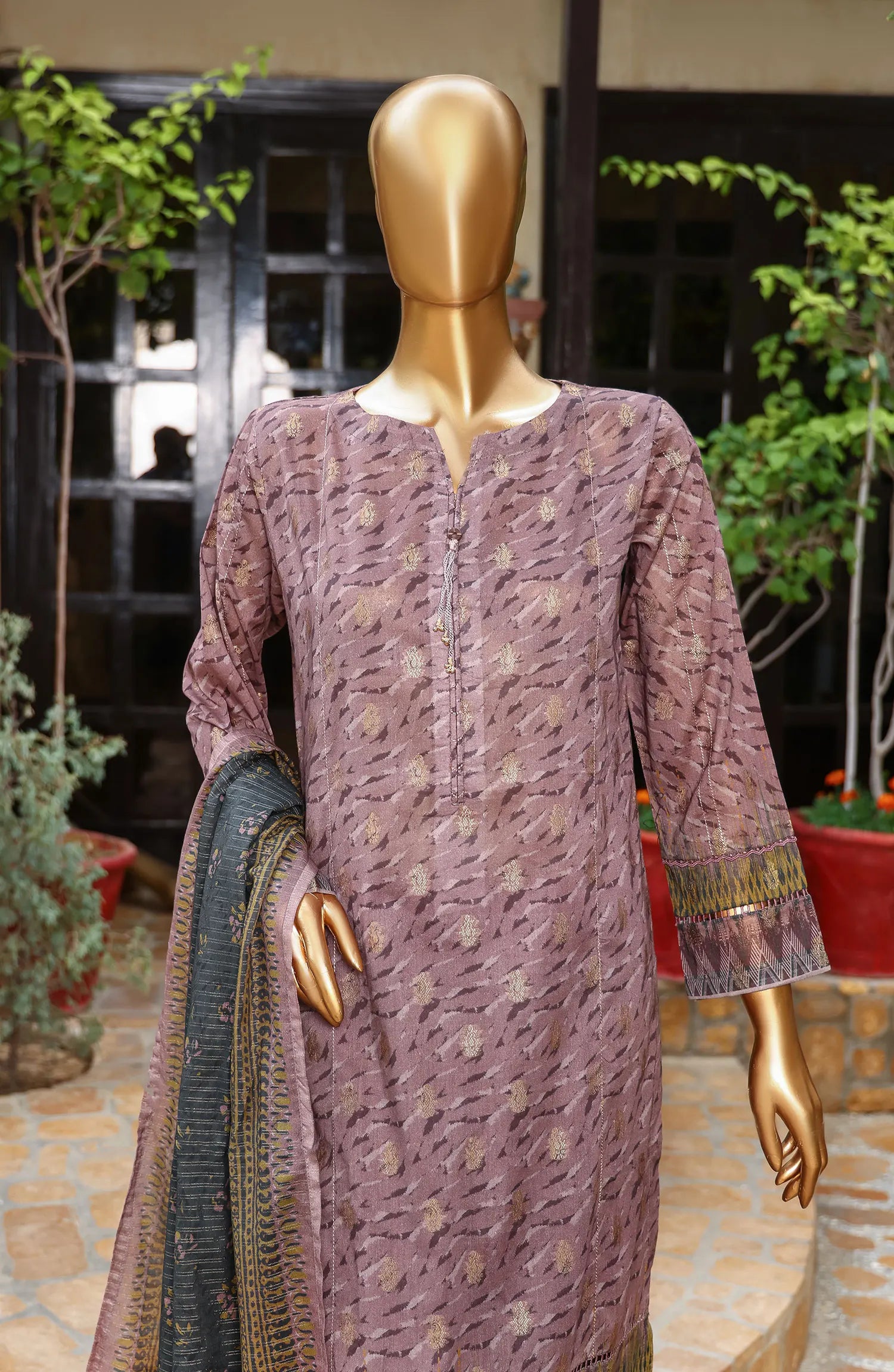 HZ Damask RTW Jacquard Printed Lawn Collection 2024 - PJL 404 COFFEE
