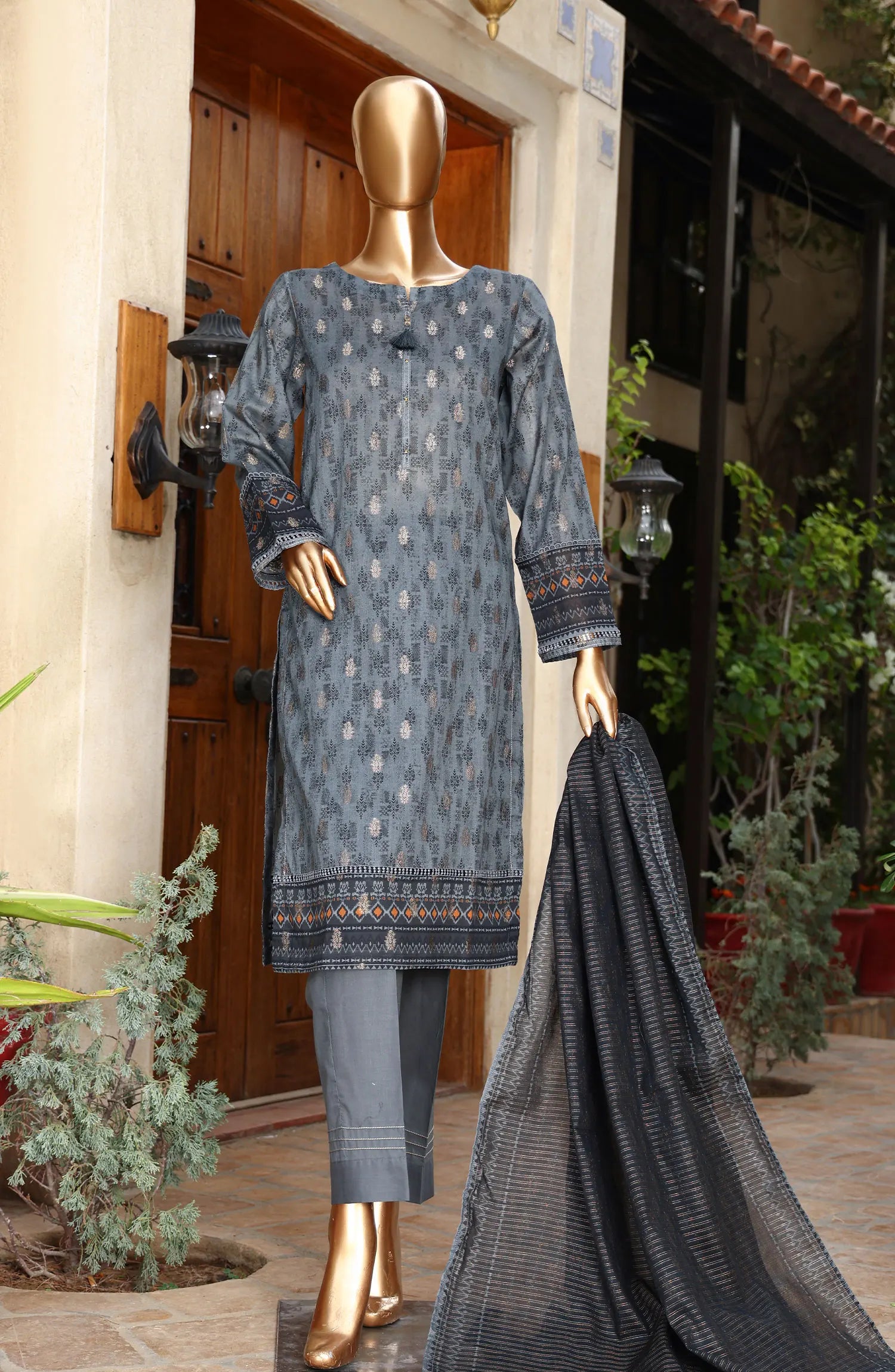 HZ Damask RTW Jacquard Printed Lawn Collection 2024 - PJL 406 GREY