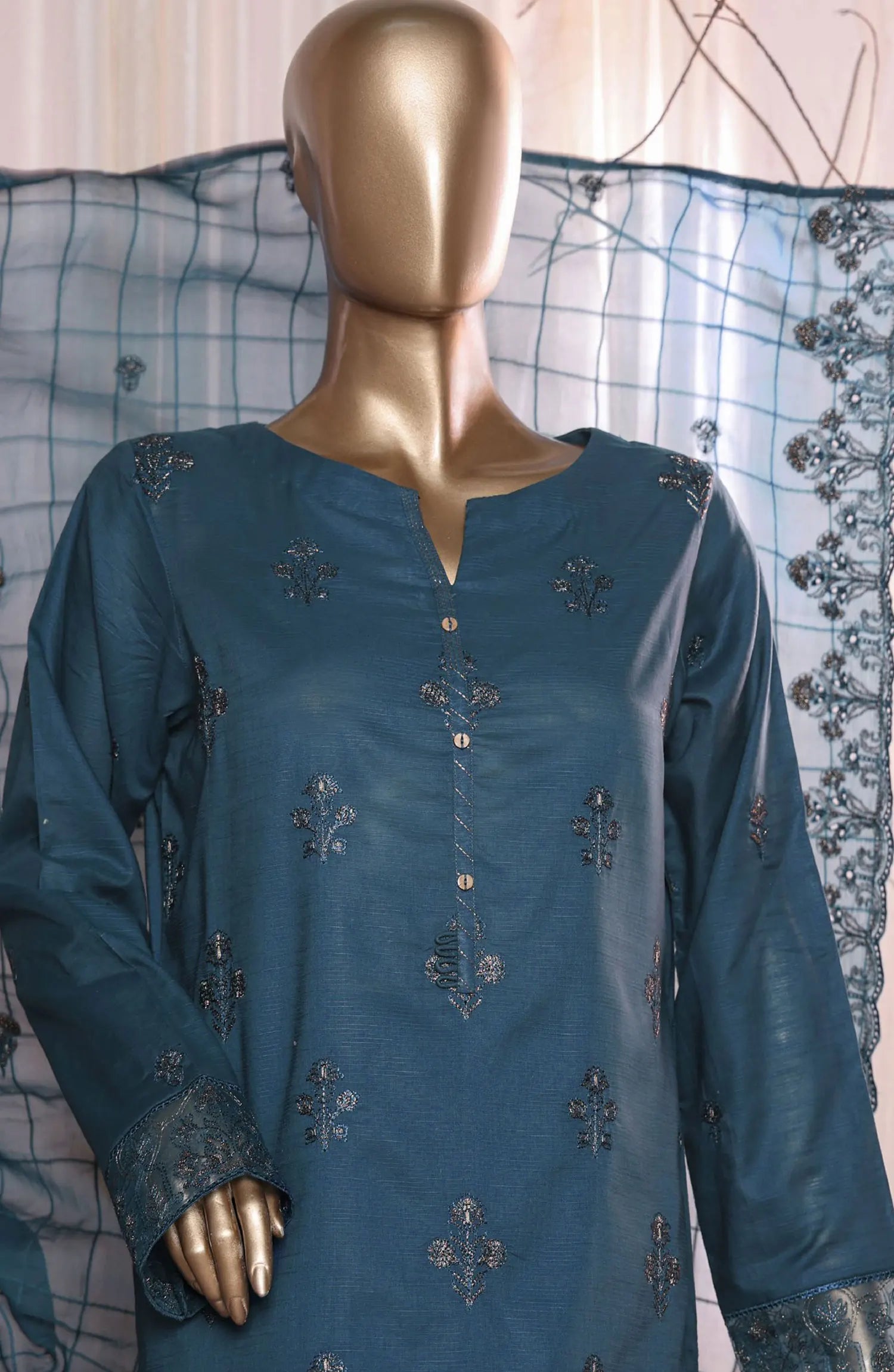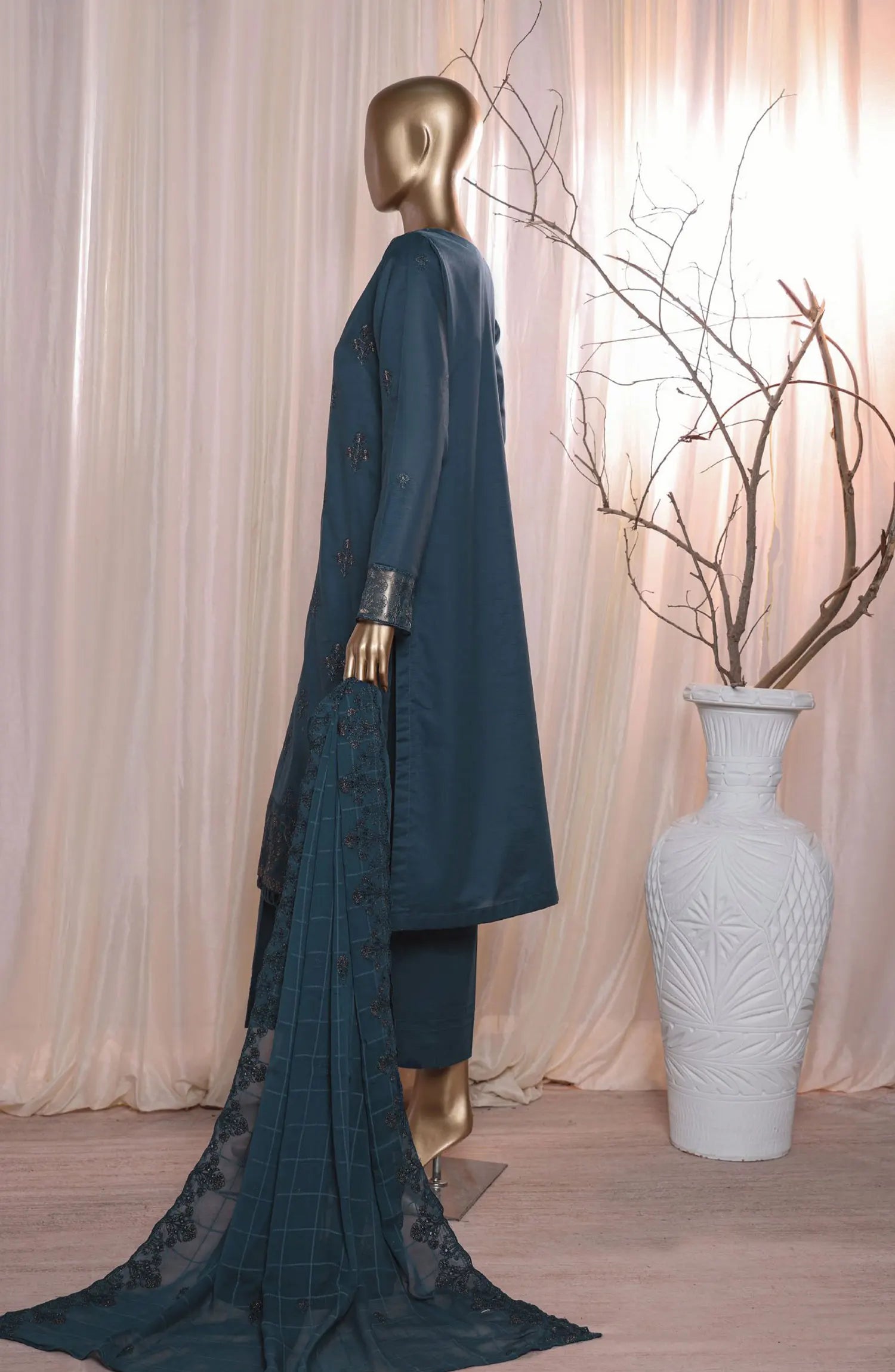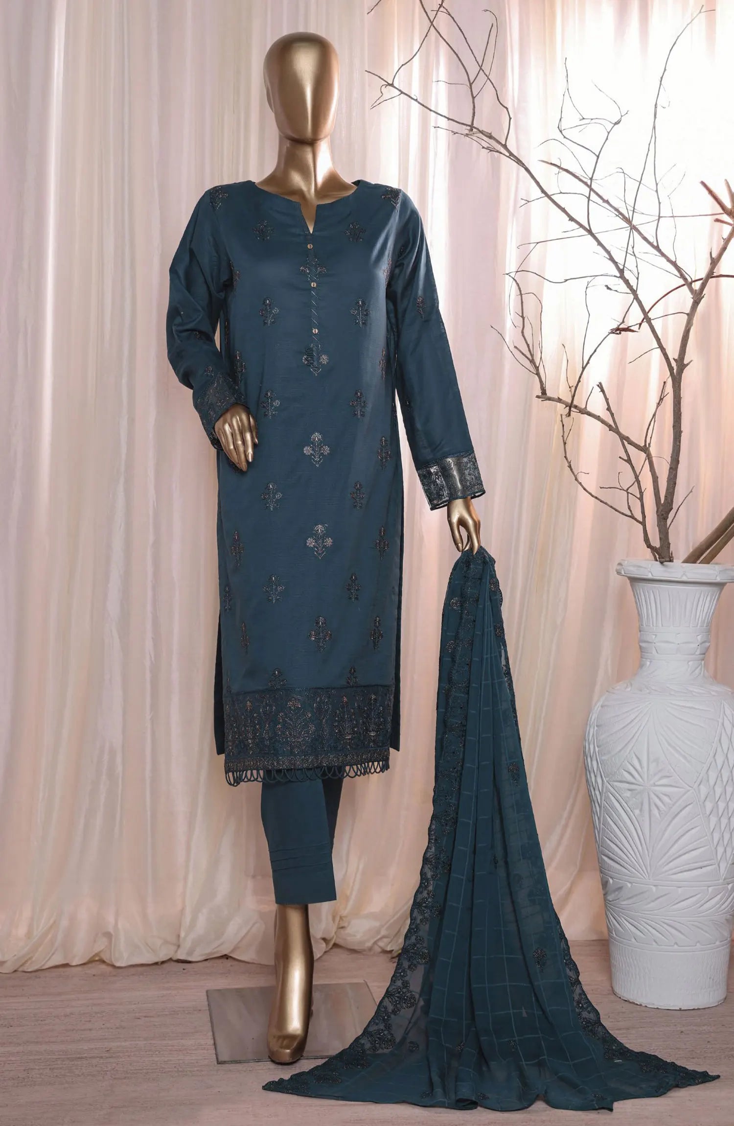 Rua by Casual Lite Embroidered Premium Linen Stitched 3 Piece Suit - D-07 Teal Mirage - CL25RU - Teal - Winter Collection