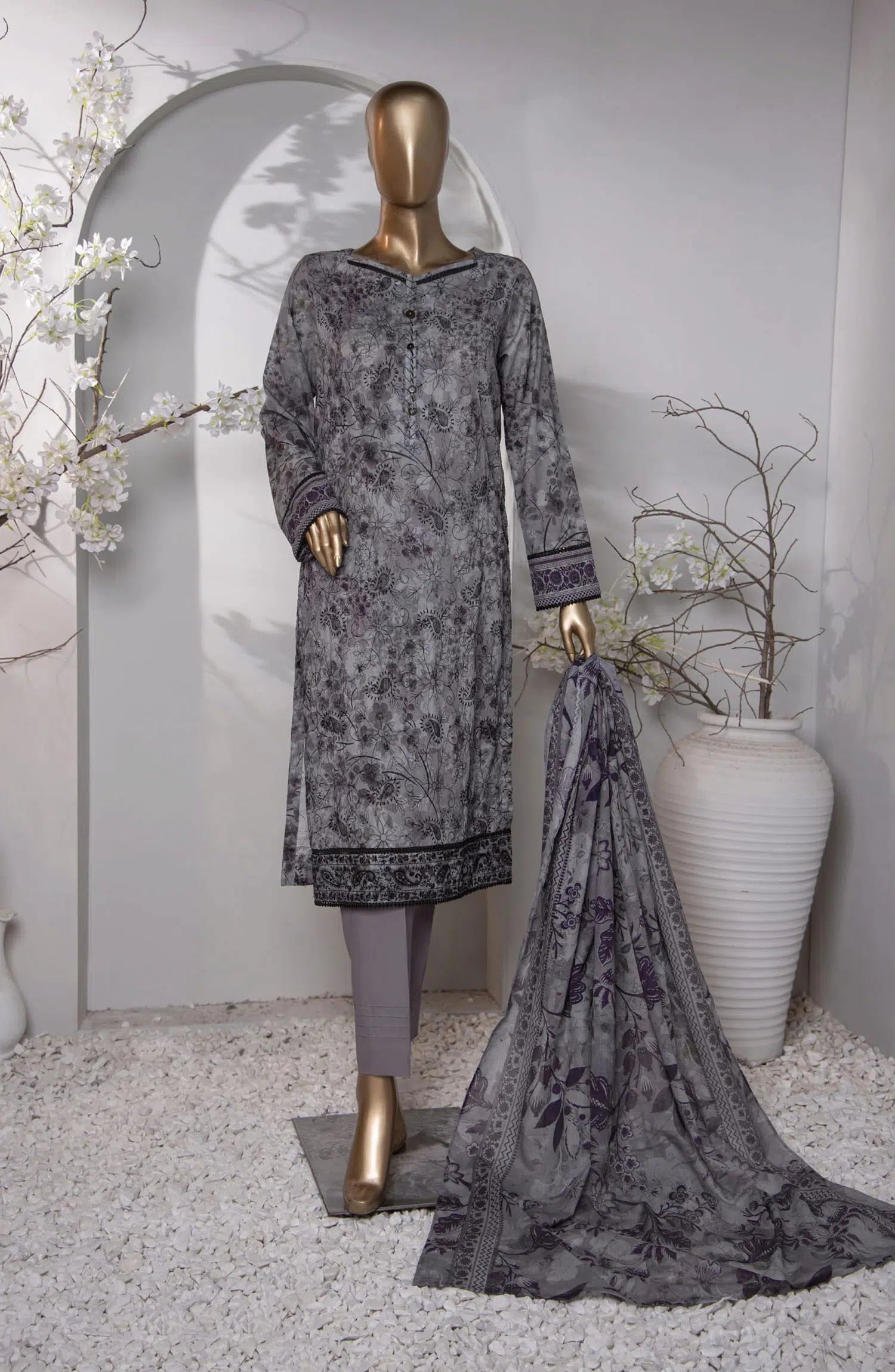 HZ Textile Digital Printed Linen Slub Unstitched 3 Piece Suit - LSD-305 - HZ25LNSL - Pink - Winter Collection