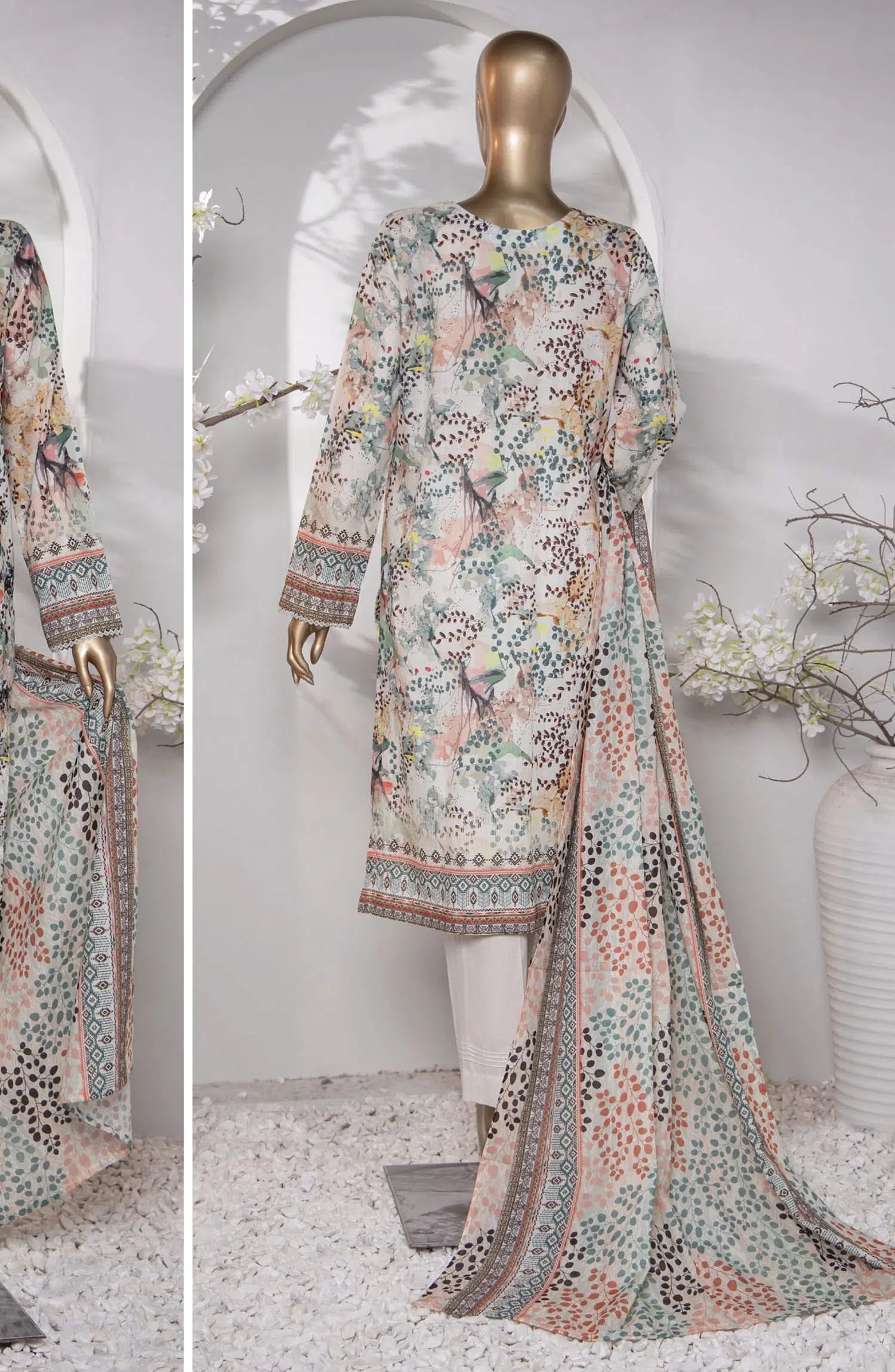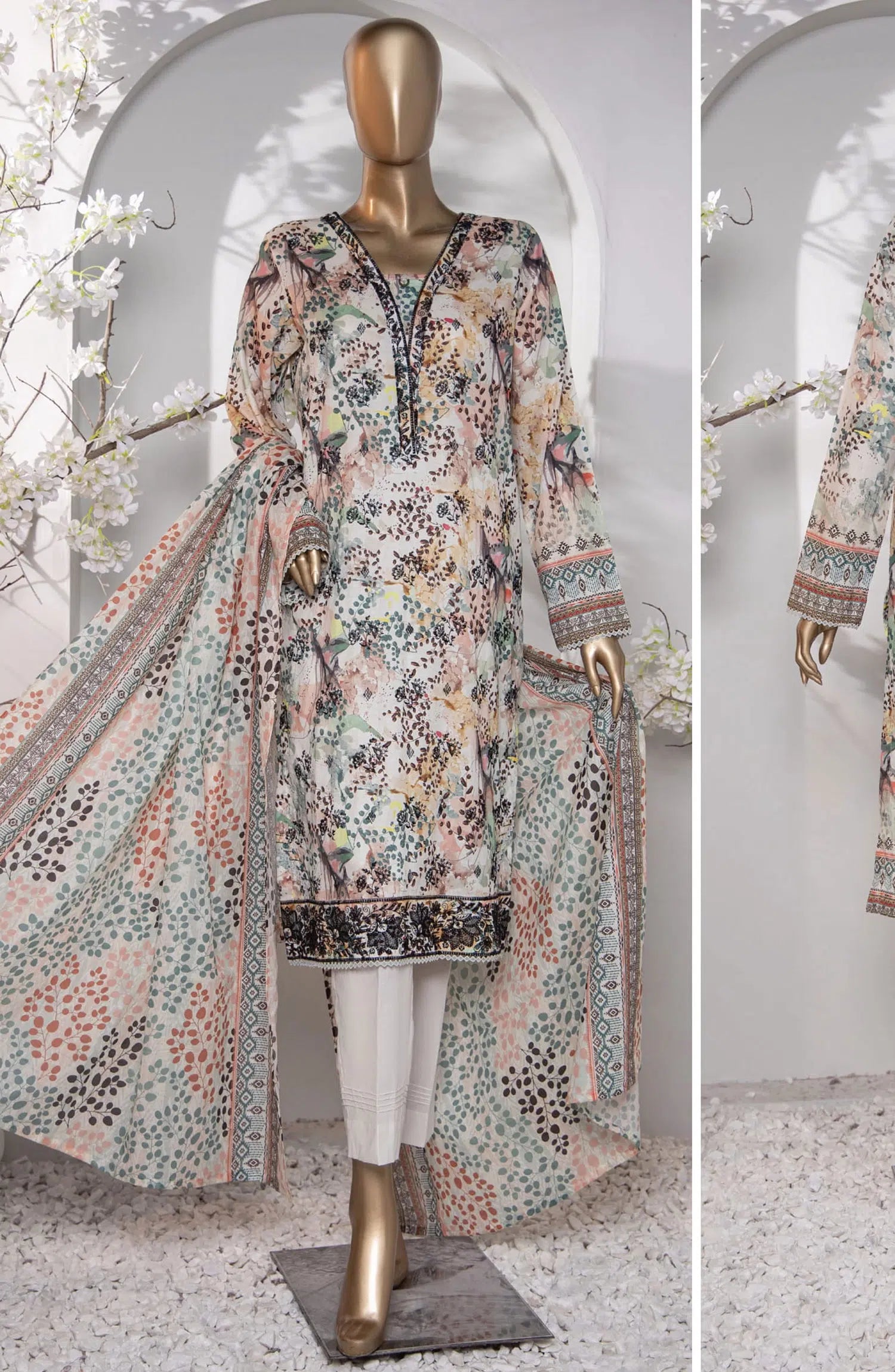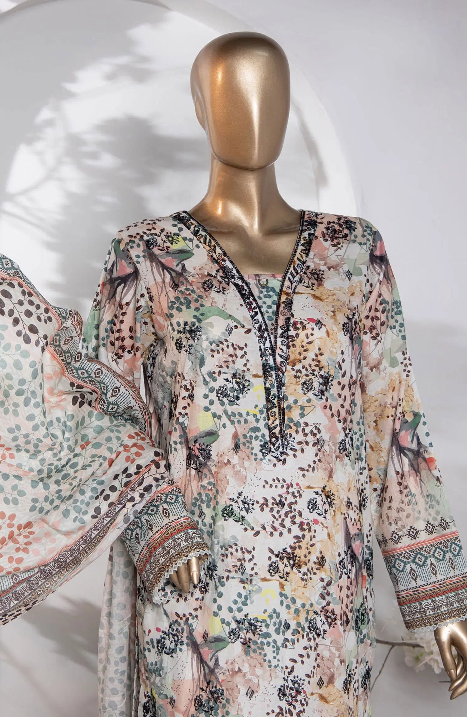 HZ Textile Digital Printed Linen Slub Unstitched 3 Piece Suit - LSD-304 - HZ25LNSL - White - Winter Collection