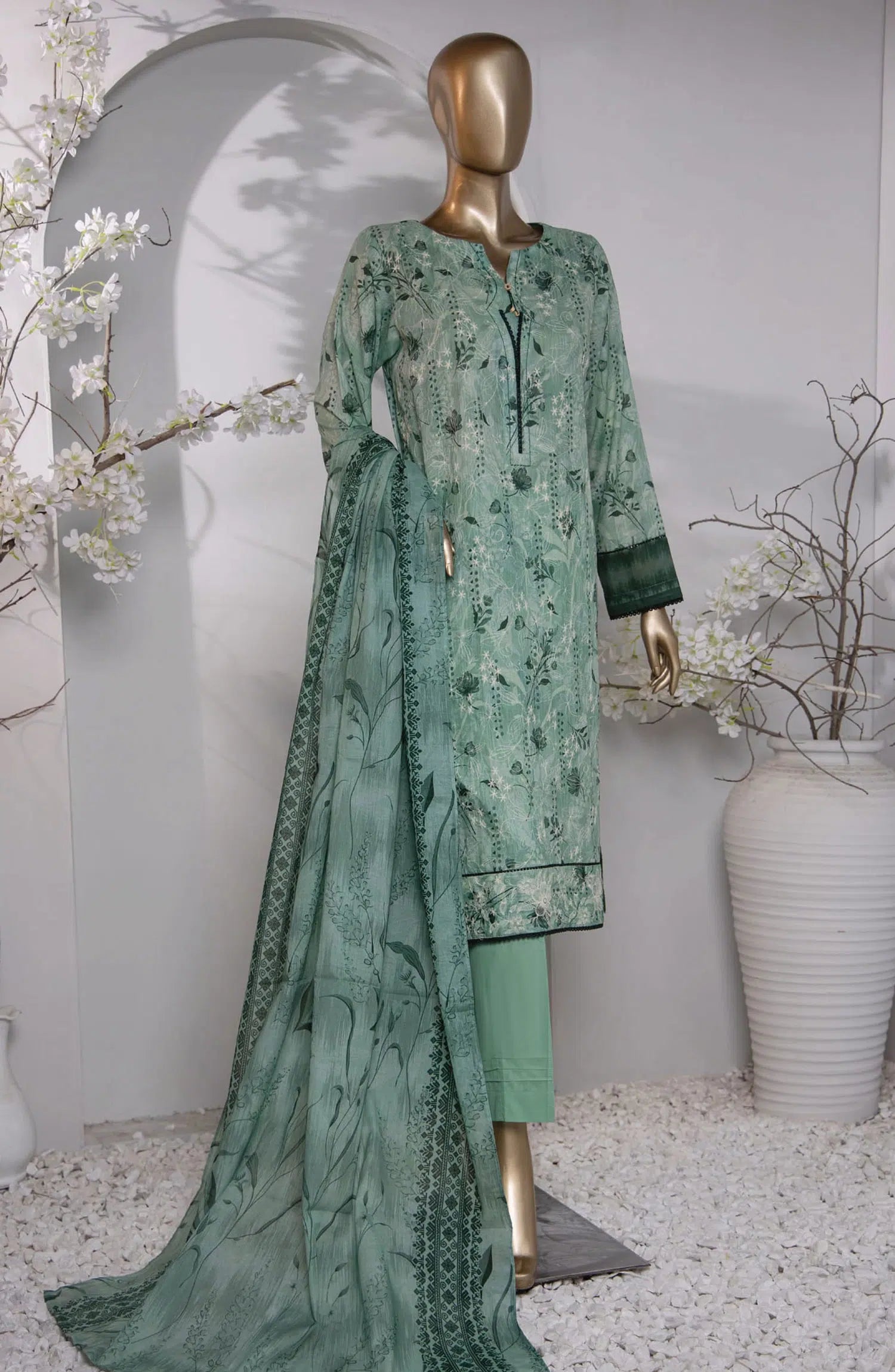 HZ Textile Digital Printed Linen Slub Unstitched 3 Piece Suit - LSD-306 - HZ25LNSL - Green - Winter Collection