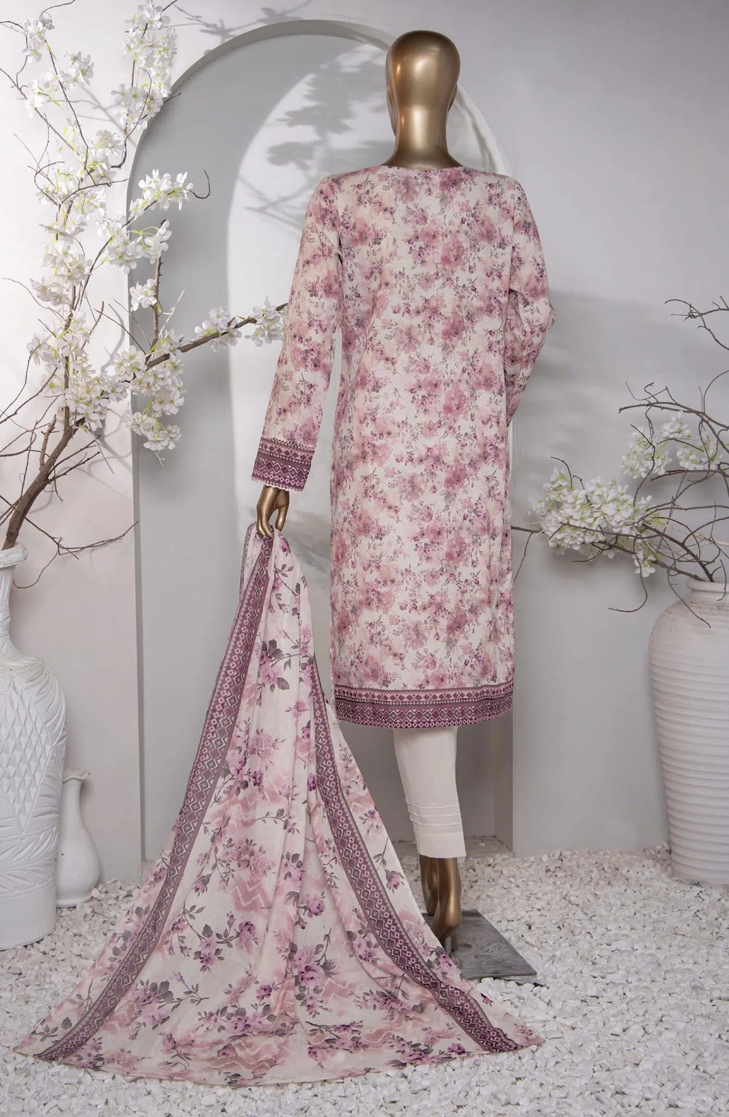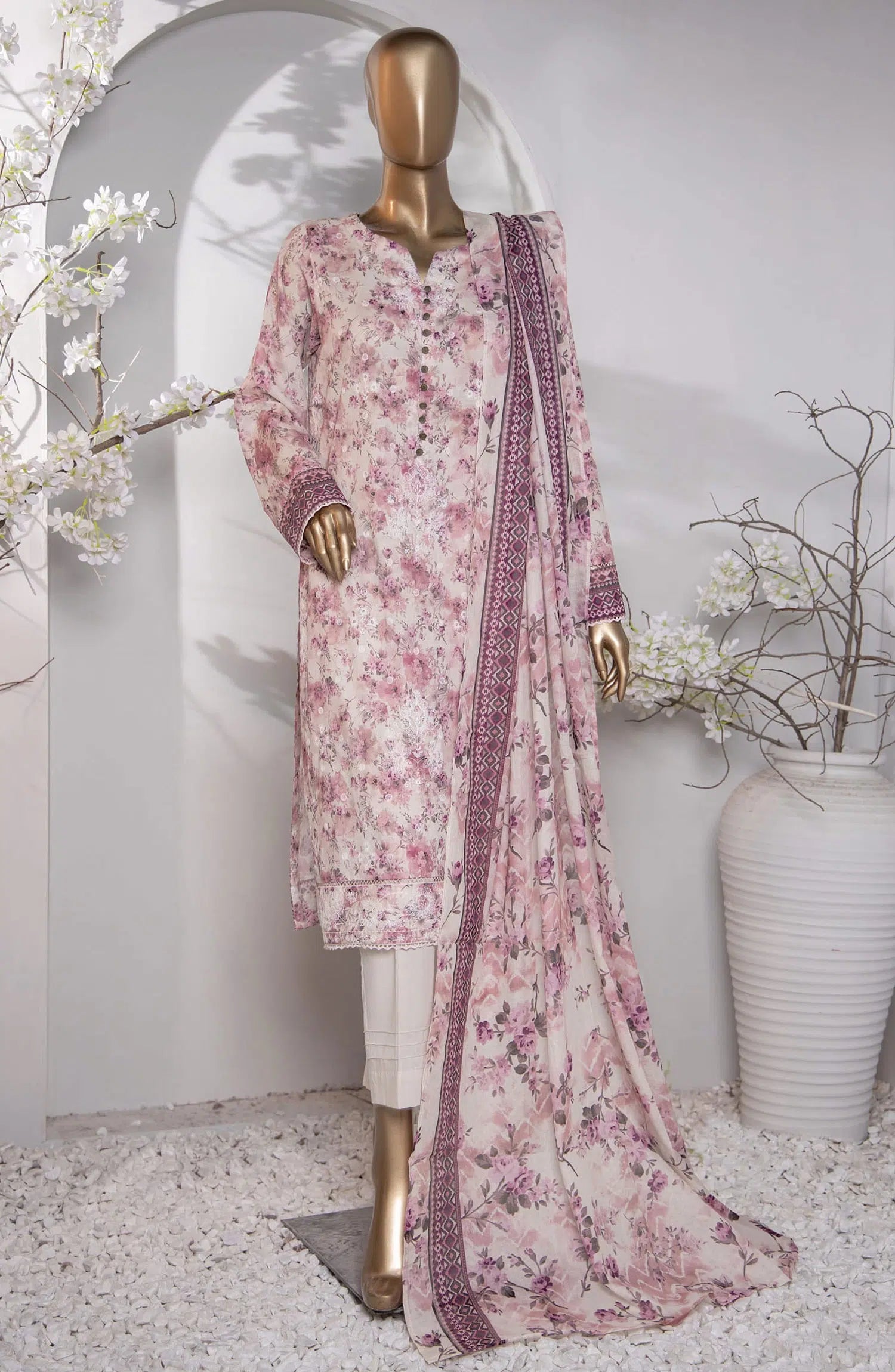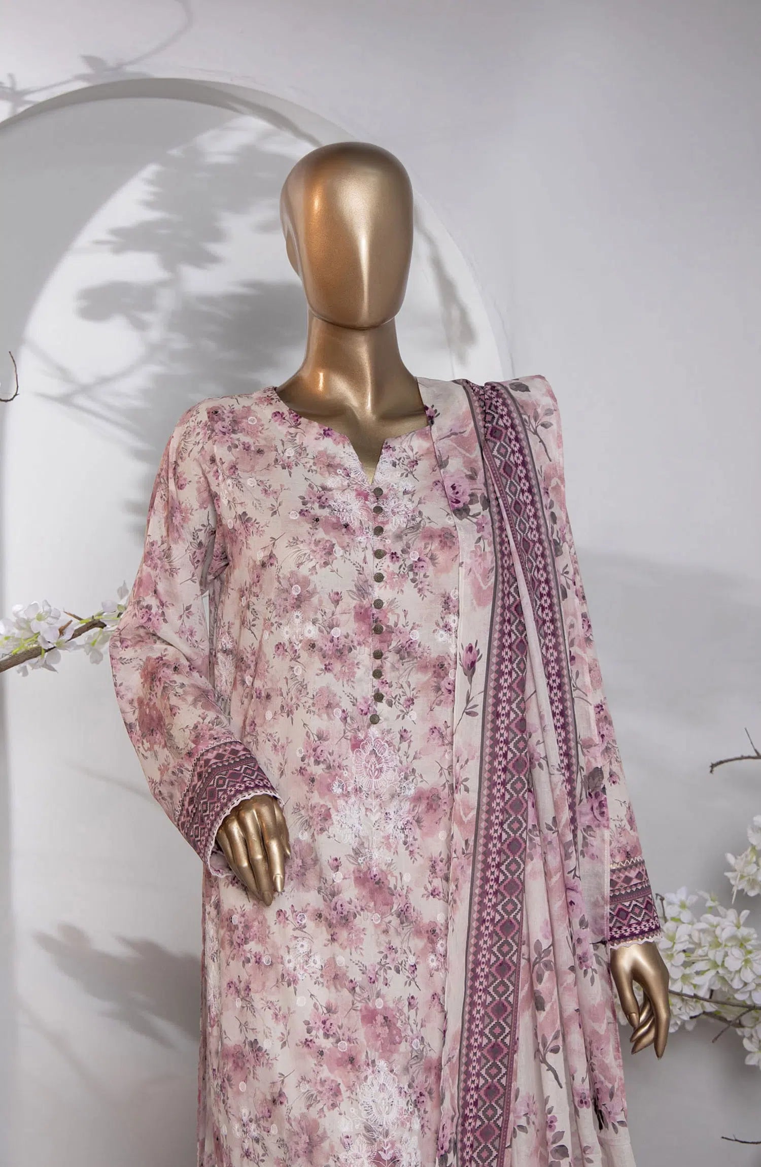 HZ Textile Digital Printed Linen Slub Unstitched 3 Piece Suit - LSD-303 - HZ25LNSL - Pink - Winter Collection