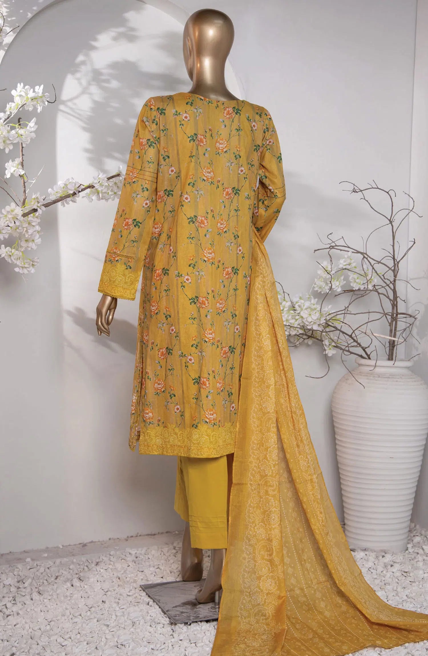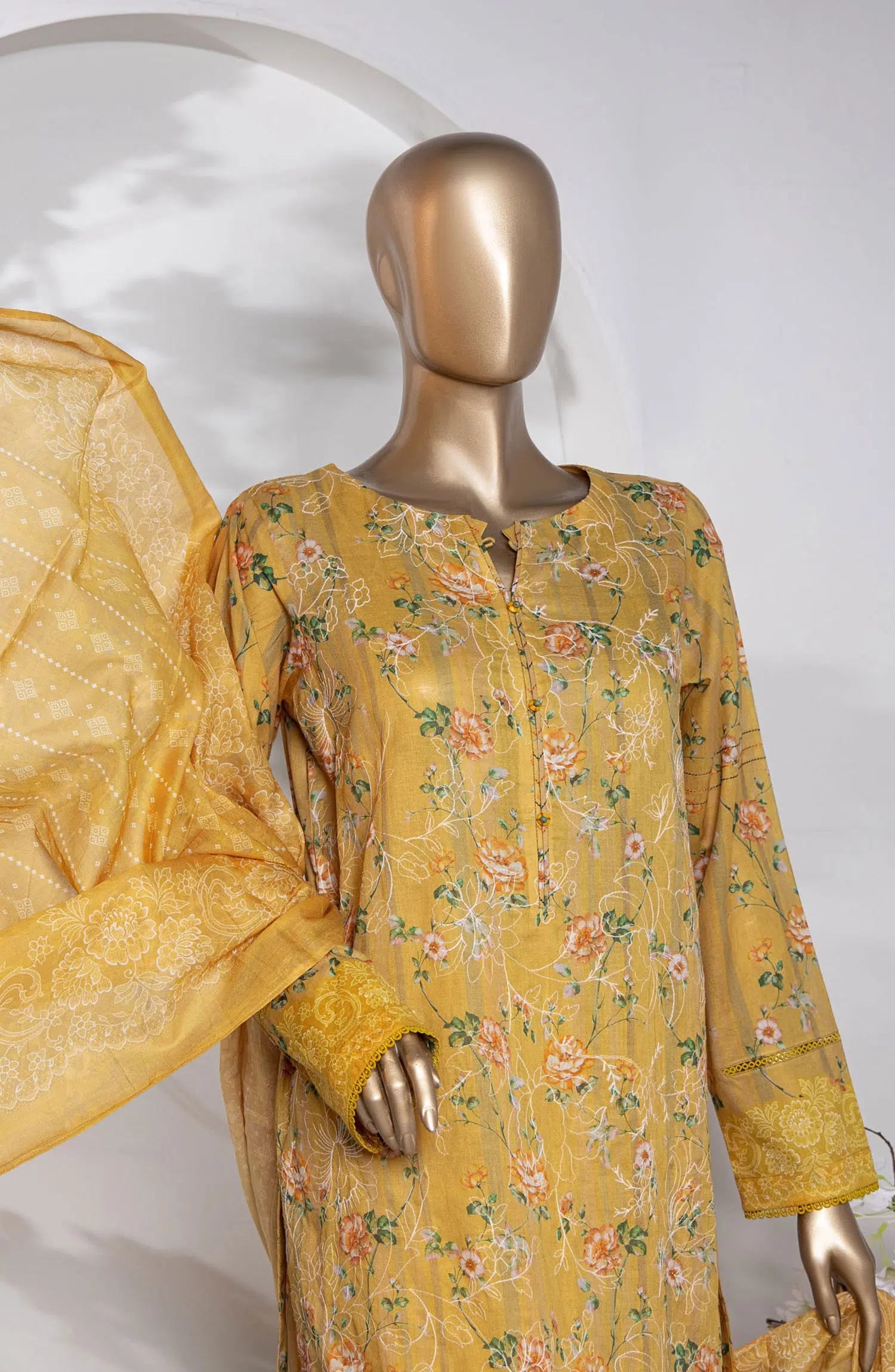 HZ Textile Digital Printed Linen Slub Unstitched 3 Piece Suit - LSD-309 - HZ25LNSL - Mustard - Winter Collection
