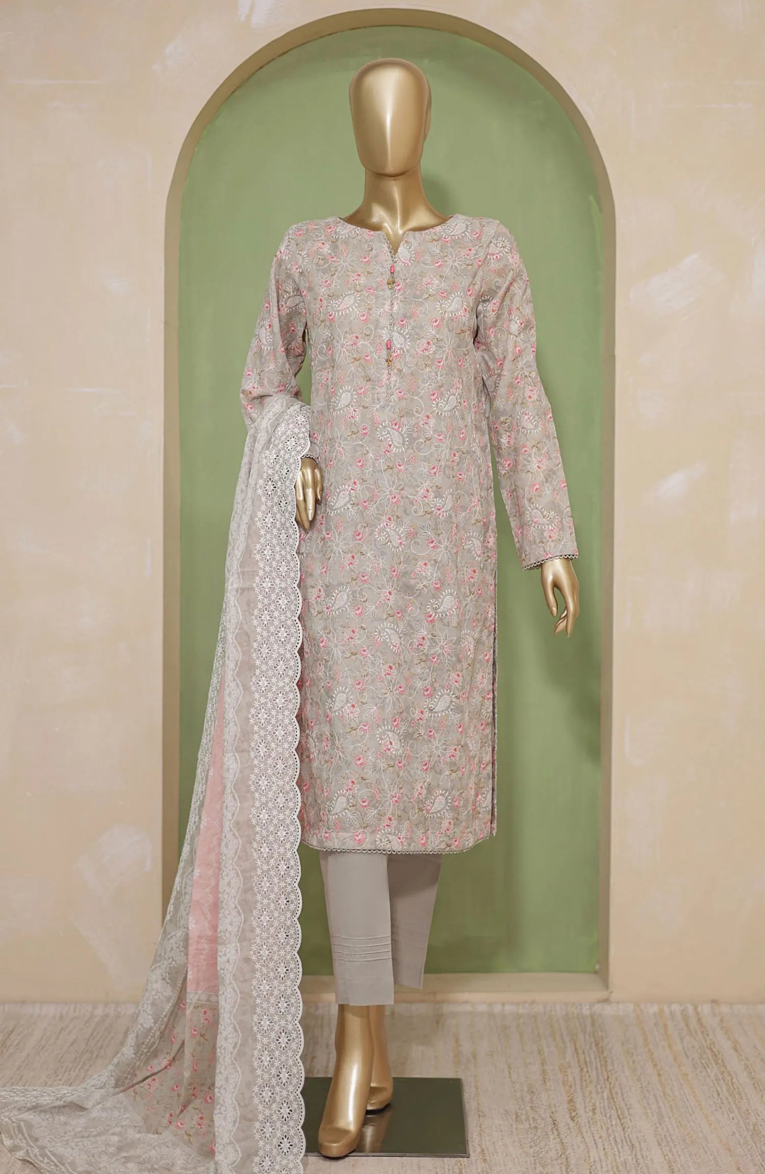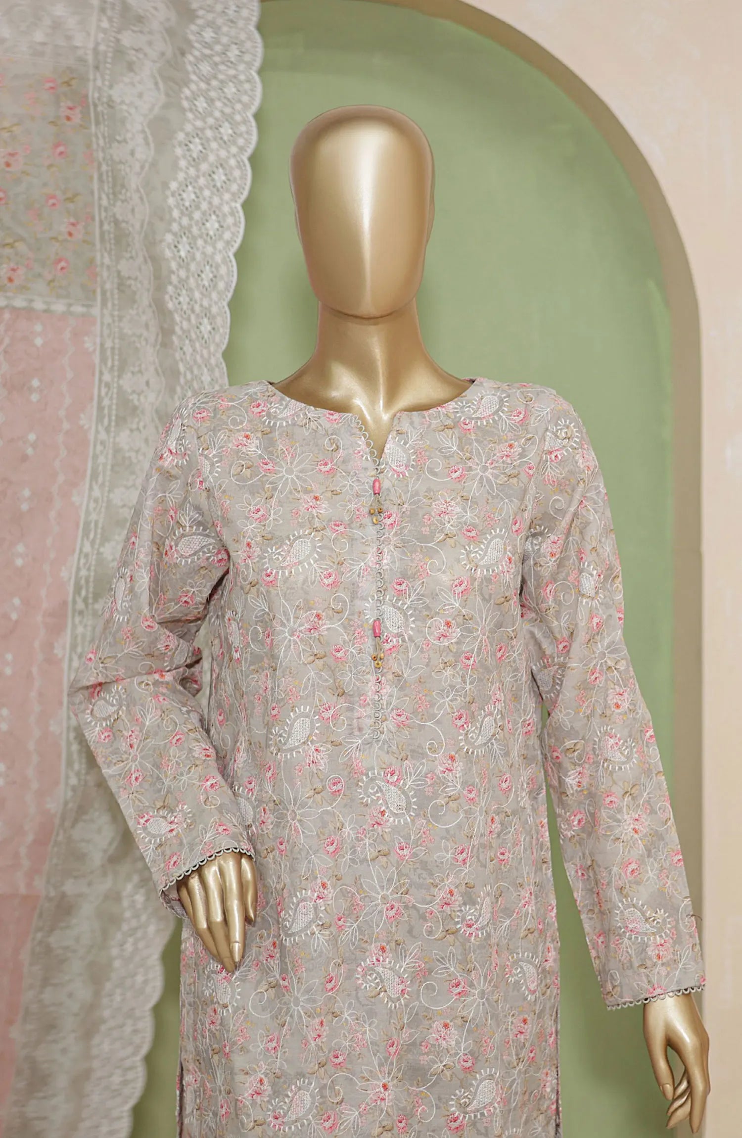 HZ Dhagakari Printed Embroidered Lawn Collection has been styled in the image for photography and illustrative purposes.