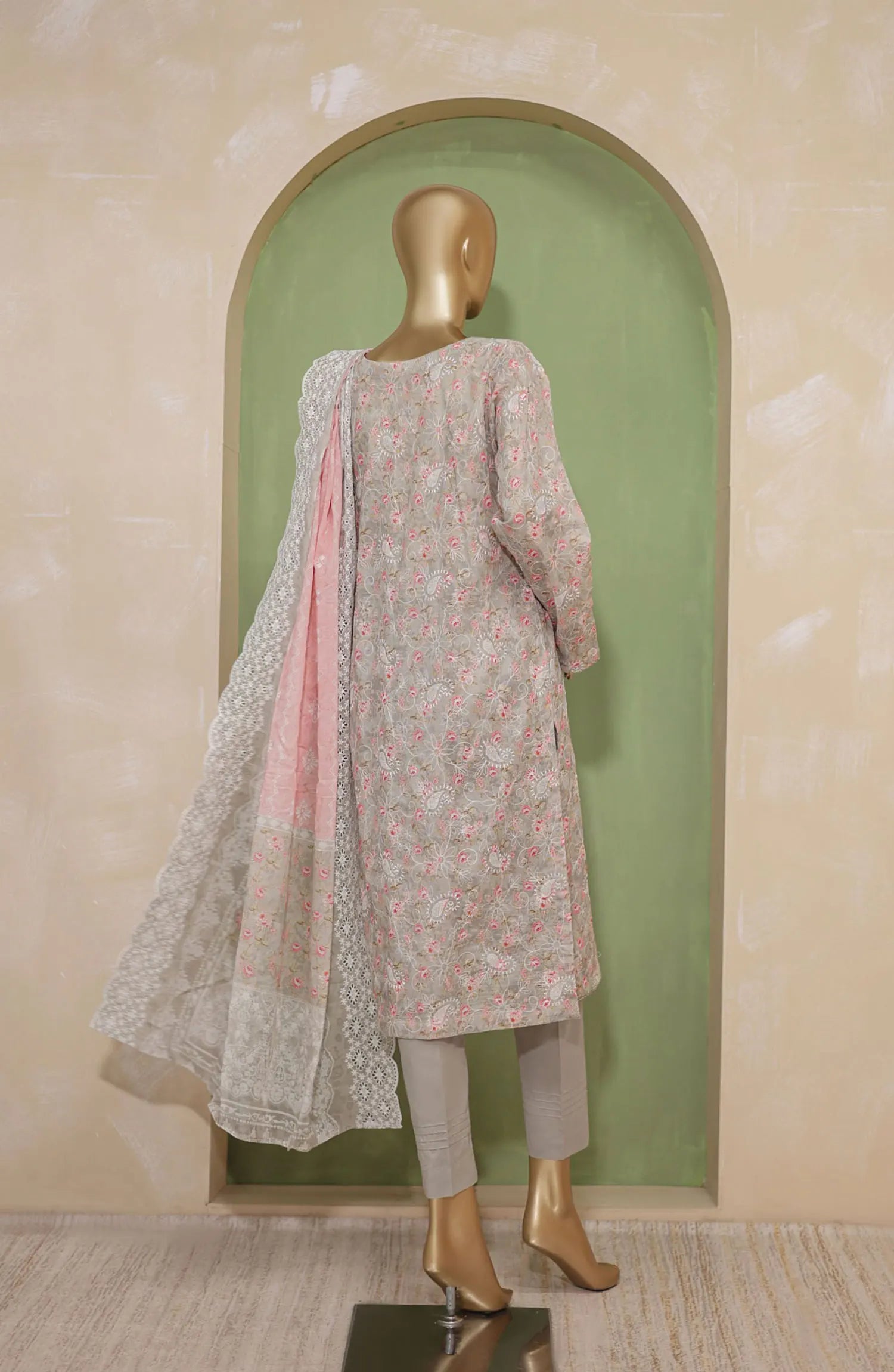The standard style comes as a long-sleeved kameez with dupatta and trouser/shawlar.