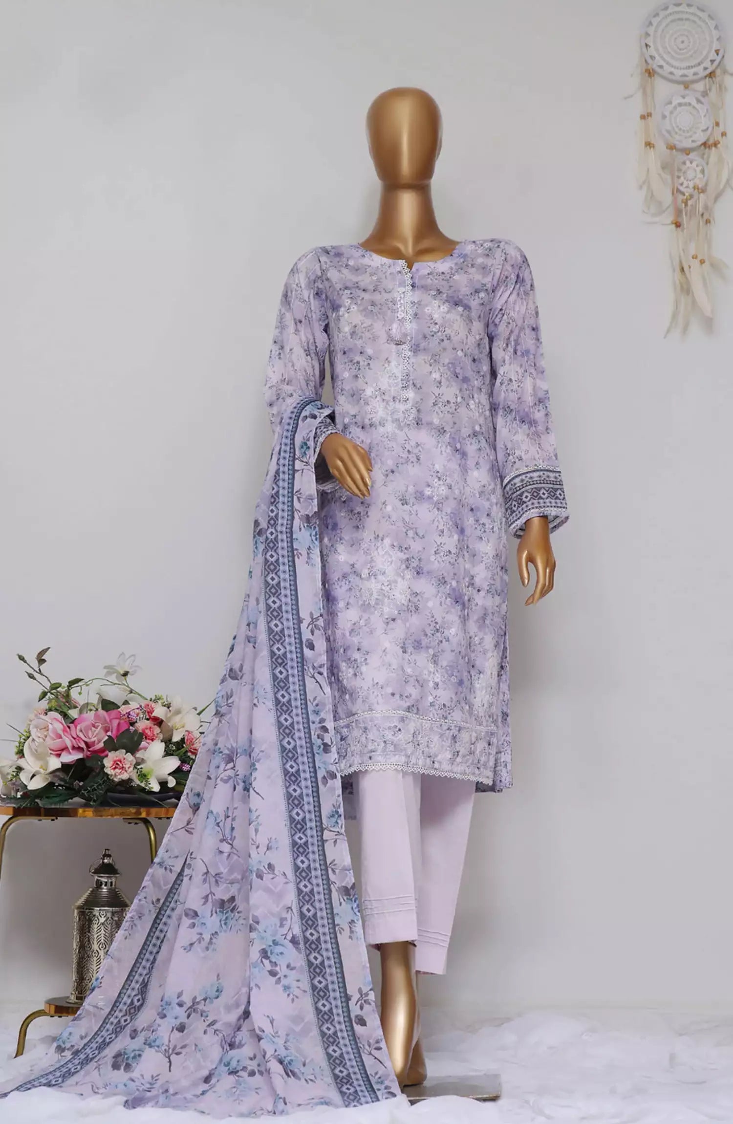 HZ Dhagakari RTW Printed Embroidered 3Pc Collection - PEL-702-LAVENDER