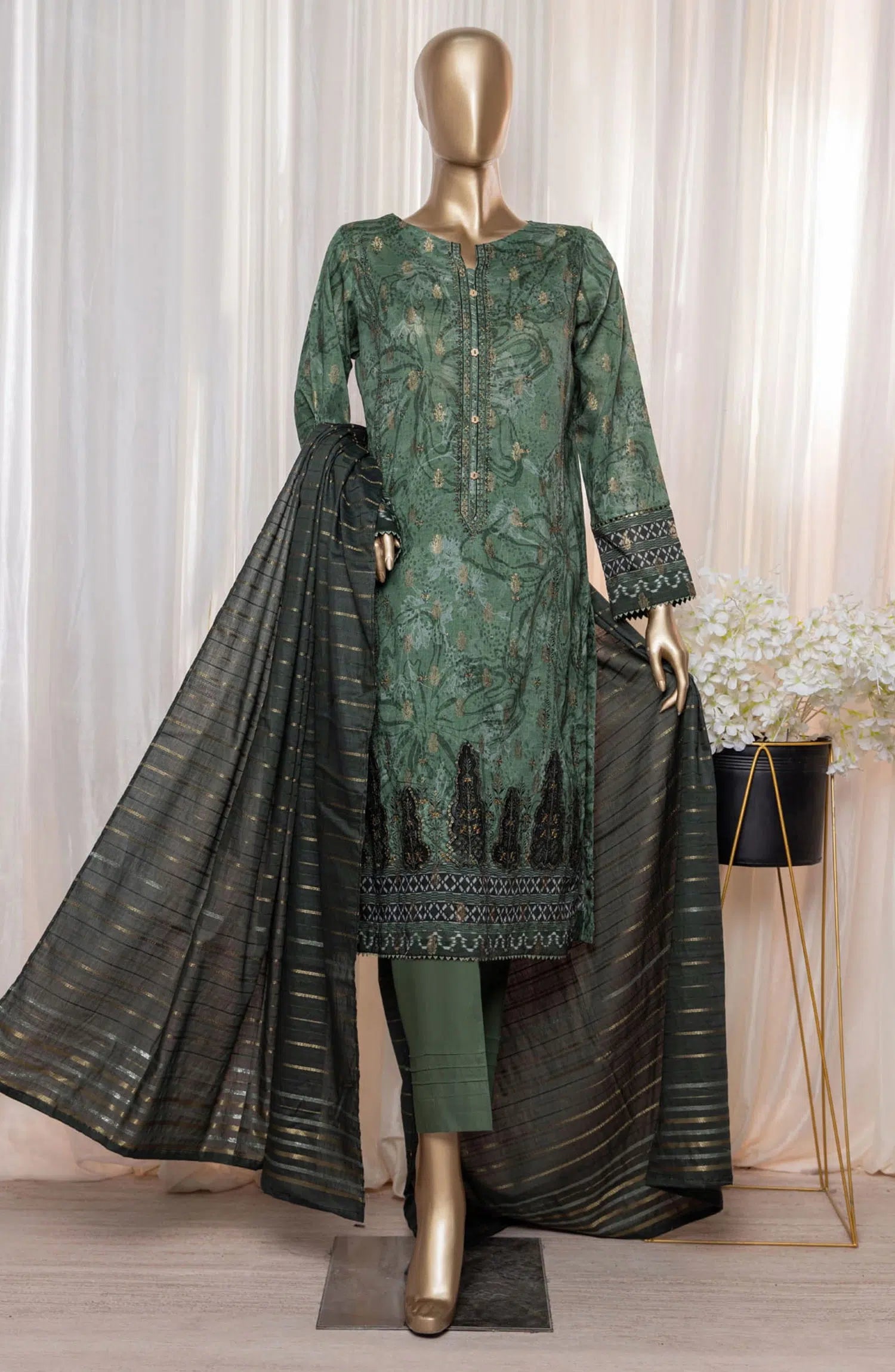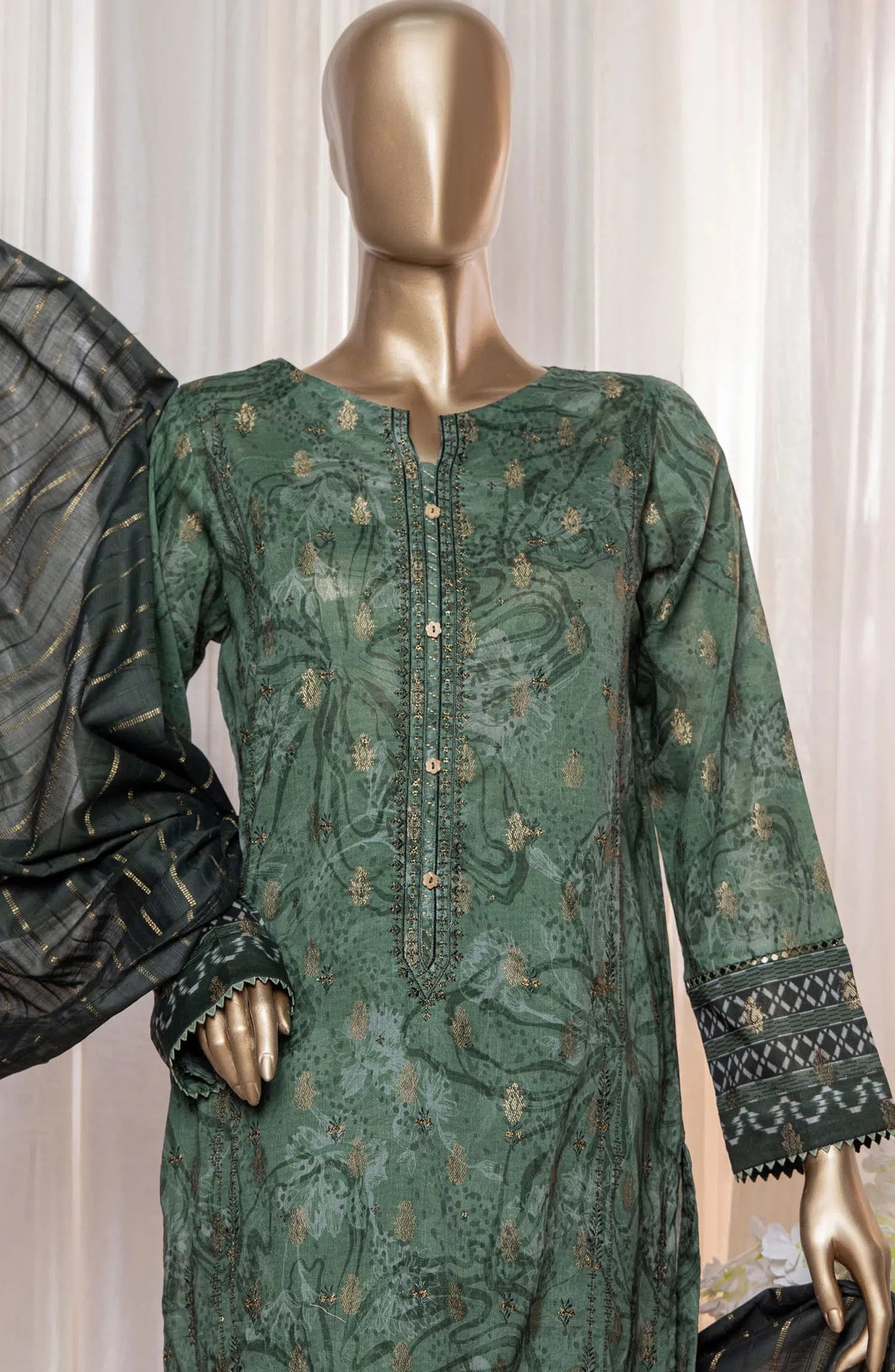 HZ Textile Digital Printed Linen Slub Unstitched 3 Piece Suit - LSD-306 - HZ25LNSL - Green - Winter Collection