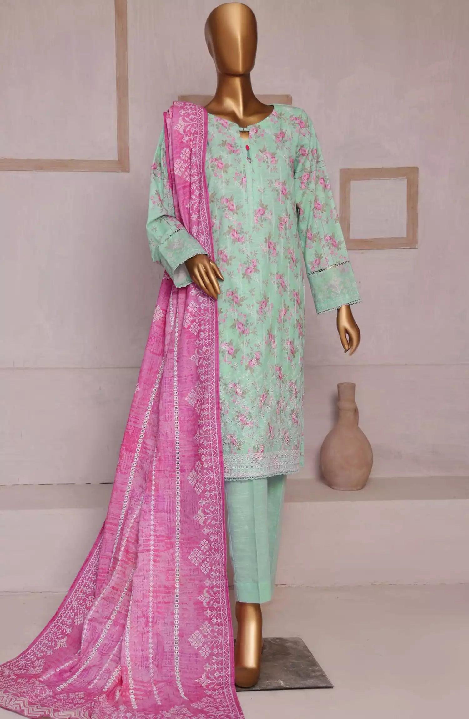 Afrozeh Day Break Embroidered Lawn Unstitched 3 Piece Suit - FWU-0020-3PO-Dewlit - AF26DB - Green - Luxury Summer Collection