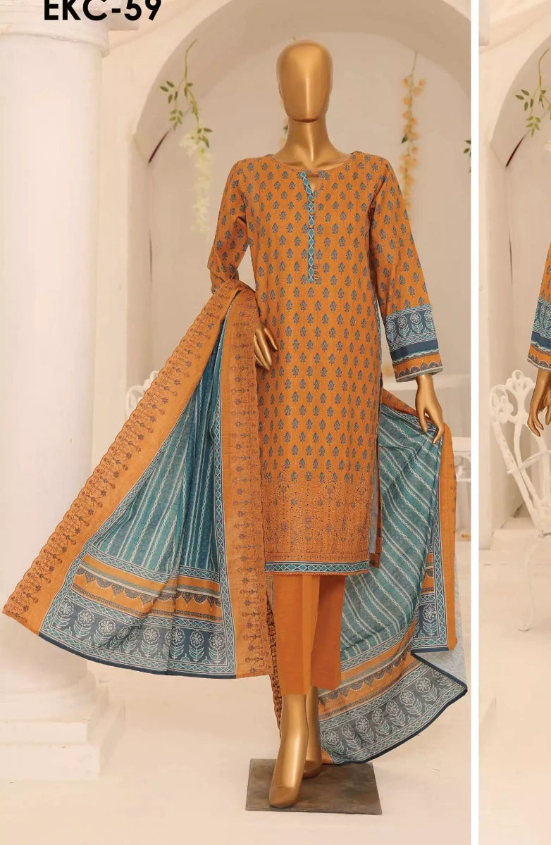Modest Printed Cotton Stitched 3 Piece Suit - 9705-Wht - MOD25PRF - White - Festive Girls Collection