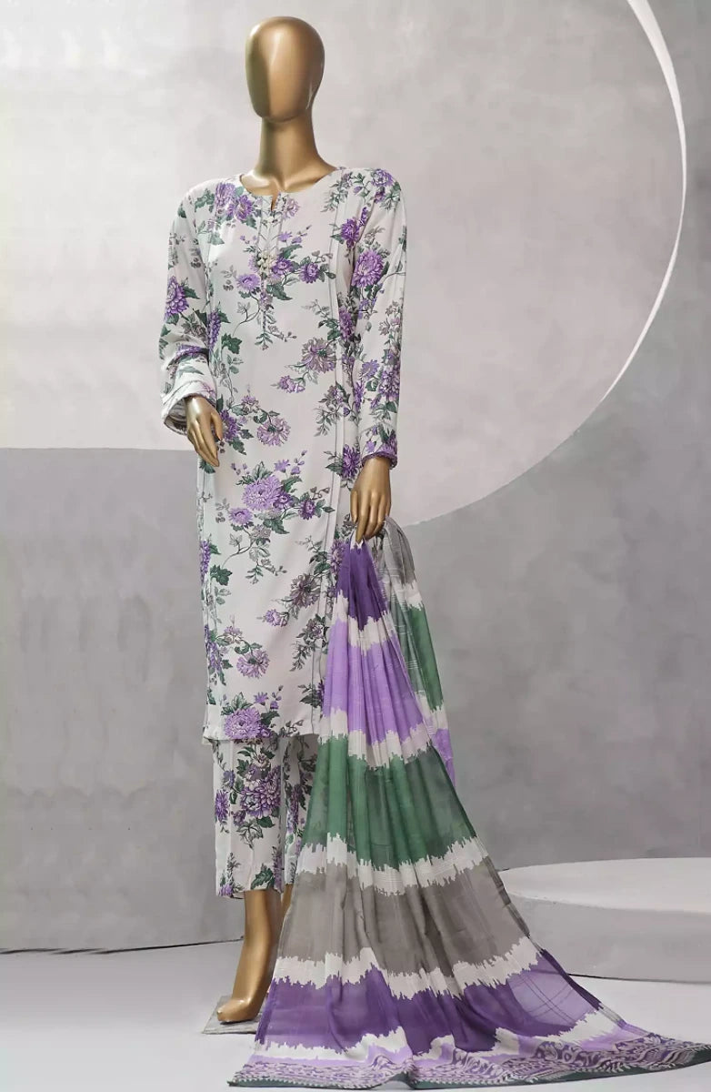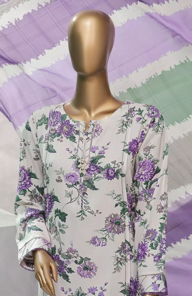 Home HZ Florence Winter RTW Printed Linen 3 Pc Collection - PLC-901 CREAM PURPLE