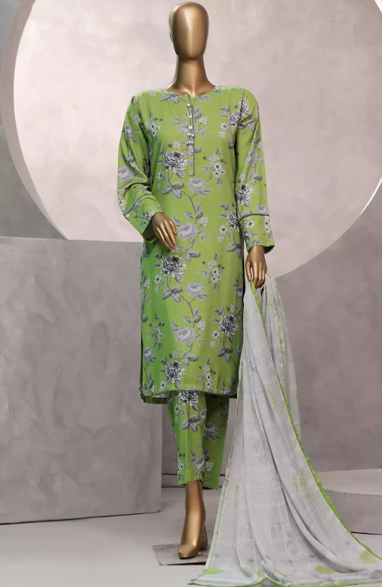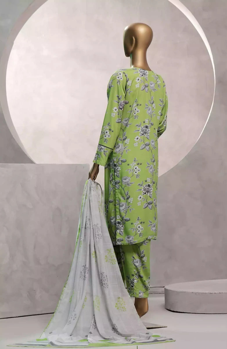 HZ Florence Winter RTW Printed Linen 3 Pc Collection -PLC-904 PARROT GREEN