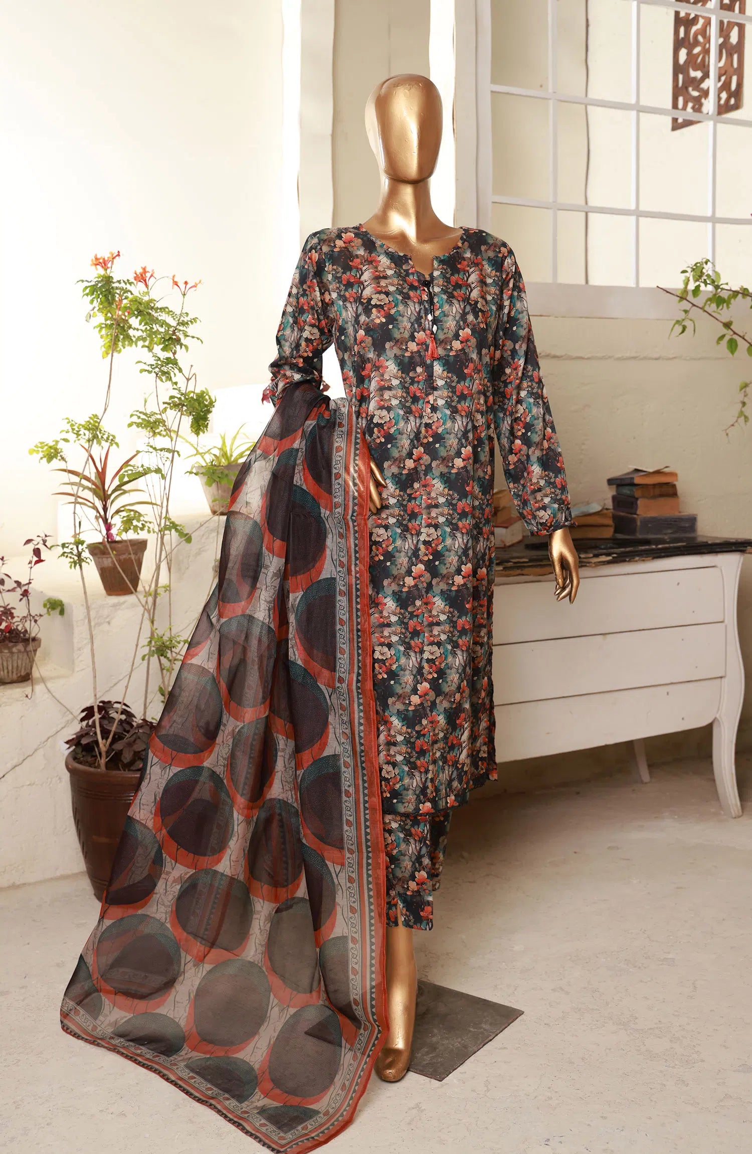 Modest Embroidered Khaddar Stitched 3 Piece Suit - 9990-Blk - MOD25WNT - Black - Winter Collection